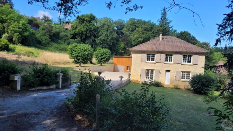 South of Sarlat, within walking distance of the village shops and the school, pleasant house of 199 m² on wooded land of 2680 m², large veranda, 4 bedrooms and 1 office, large wooden outbuilding of 85 m² and an adjoining garage.