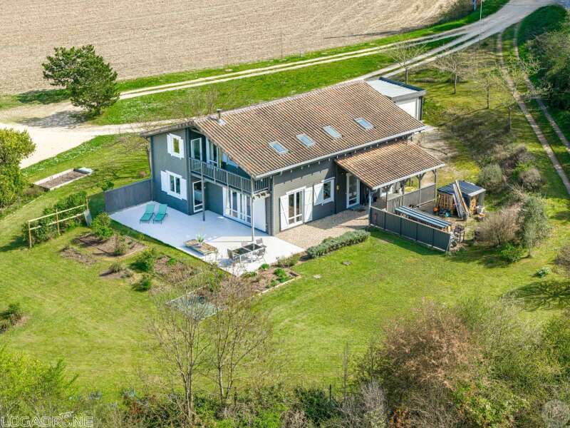 10 minutes from Villeréal, a single-storey wooden house on a 3191 m2 plot, offering a beautiful unobstructed view of the surrounding countryside. Quiet and rural setting.