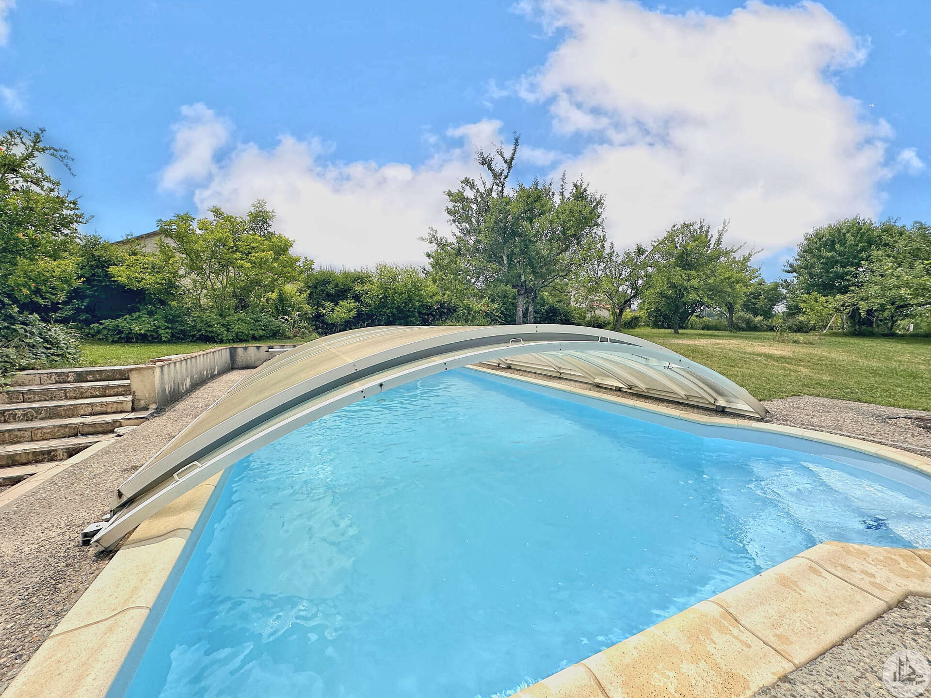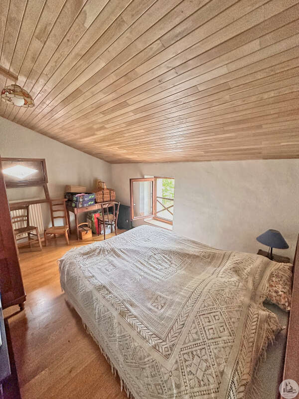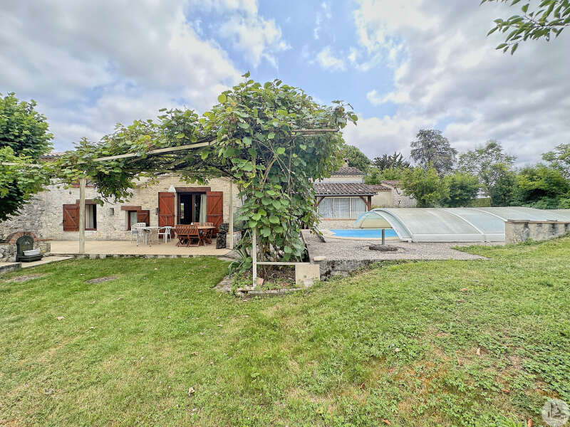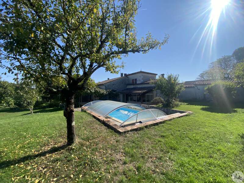 Lots of charm for this old renovated farmhouse close to a listed village with all shops and 25 minutes from BERGERAC, its airport and its train station. Country house of approx. 118m2 in a quiet but not isolated area while enjoying the swimming pool and the wooded and flowered grounds. The main house is composed as follows: veranda Living room / dining room, crossing with fireplace, a fitted kitchen, a bedroom on the ground floor with shower room and toilet. Upstairs: 3 beautiful bedrooms around a mezzanine serving as a TV corner and a toilet. The studio of approx. 60 m2 includes: a living room with wood stove, kitchen area, a bathroom with hip bath, a separate toilet, a floor with sleeping area Outside a park with its orchard, A swimming pool with dome, equipment for counter-current swimming (pump in the veranda of the cottage). 2 Terraces Gas heating, for the main house insert and wood stove Individual sanitation 2 garages, one with an additional bathroom. Property tax: €779
