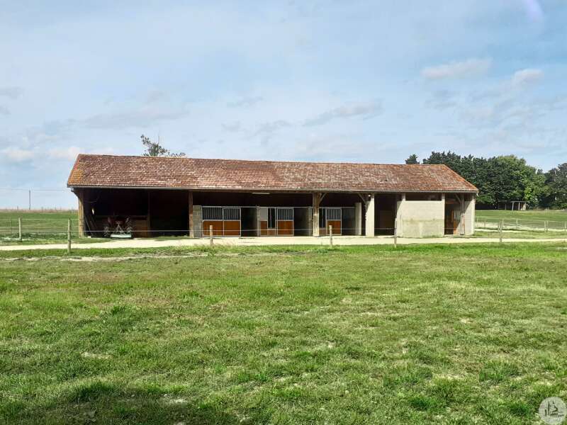 Charming equestrian property not overlooked located at the end of its path consisting of a completely renovated stone house. We enter a living room of 56 m2 with stone walls and terracotta tiles on the floor with a lovely view of the swimming pool, a corridor leads to a bedroom of 12m2, a bathroom with shower, bathtub, toilet and the kitchen of 32 m2 equipped with a central island; we access the hallway upstairs and two bedrooms of 16 m2 each From the large glass door of the kitchen on the south side we access the awning covering a terrace of 72 m2 with a view of the training track and meadows. This terrace gives access to the fourth bedroom of 18 m2 with en suite a shower room and toilet of 9m2 and to the garage of 30 m2. A pretty enclosed pleasure garden surrounds the awning and includes a 10X5 m salt water swimming pool with pool house liner and a 39 m2 tiled terrace adjoining the swimming pool A 280 m2 wooden frame and cladding building / stable equipped with 3 boxes with automatic waterers (20, 25 and 25 m5) a farriery, a tack room, hayloft, and various rooms The land bordered by a large hedge is flat and fully fenced to form 8 paddocks which include a 650m training track In the construction project by the ARKOLIA company on plots 683 and 684, a metal building which will receive 1600 m2 photovoltaic panels (60mX 26.5 m) planned to be used as a riding school or other project a 30-year emphyteutic lease years the earthworks and the cladding will be 6000 euros more at the buyer's expense