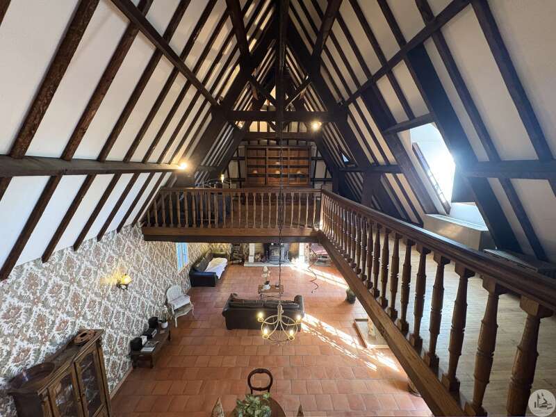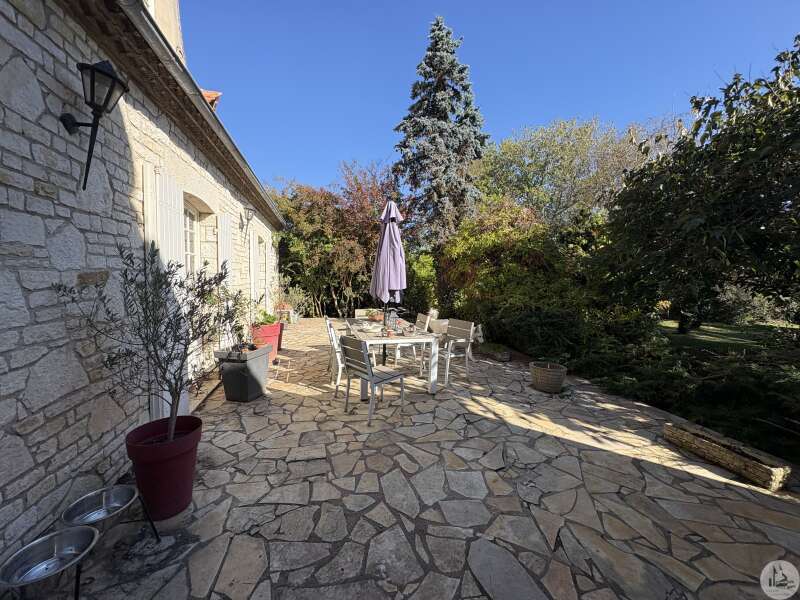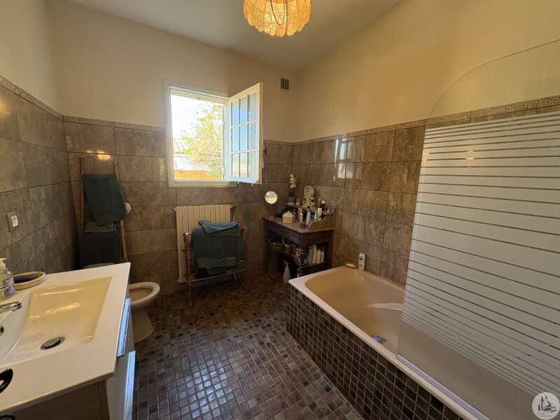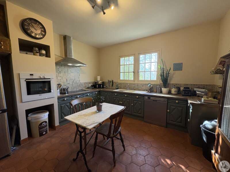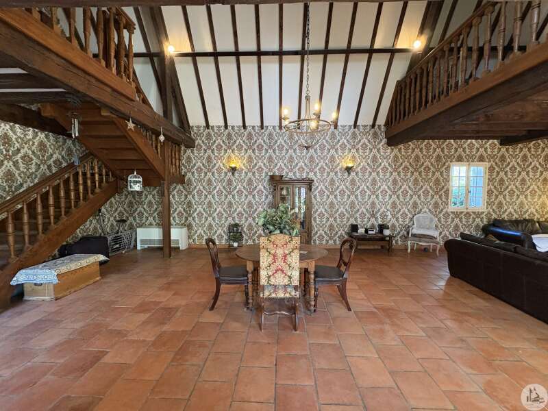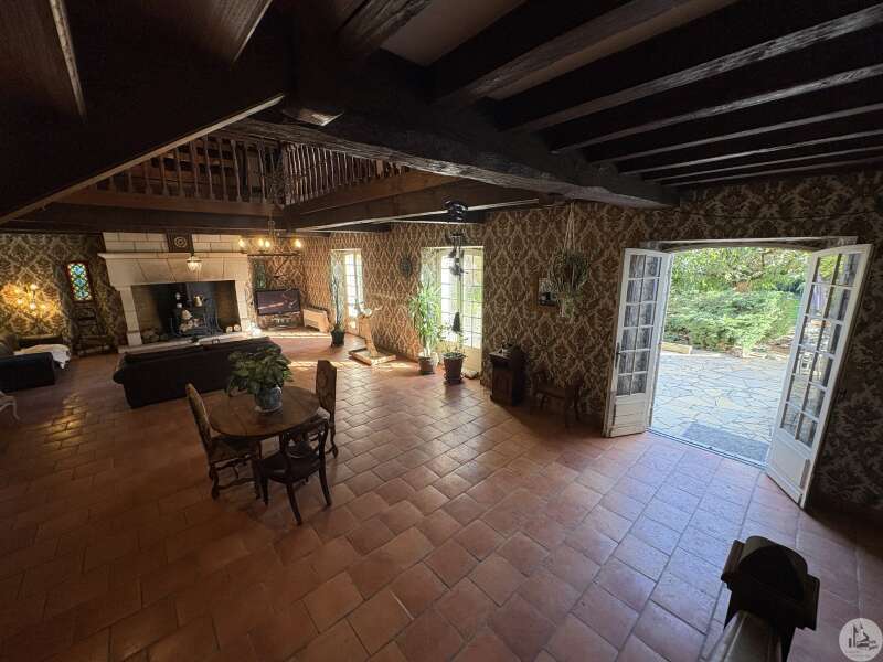 Stone Périgourdine house of approximately 265 m² with outbuildings on a plot of 3553 m². The house comprises: On the ground floor, an entrance hall, a main living/dining room with cathedral ceilings and a wood-burning stove, a fitted kitchen, two bedrooms, one with a fireplace, a bathroom, and a toilet. Upstairs, a landing leads to an open library, three bedrooms, a shower room, and a separate toilet with a sink. The outbuildings consist of two outbuildings; The first has a garage and boiler room. The second has a garage, workshop, and veranda. Outside, several terraces lead to a wooded and enclosed garden with a well. The windows are single-glazed. The heating is oil-fired. The sanitation system is individual, with a septic tank.