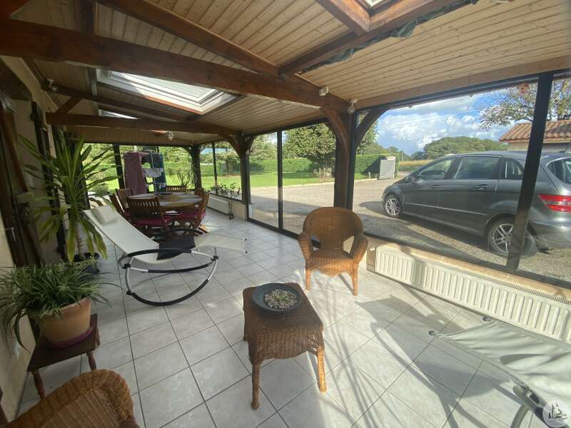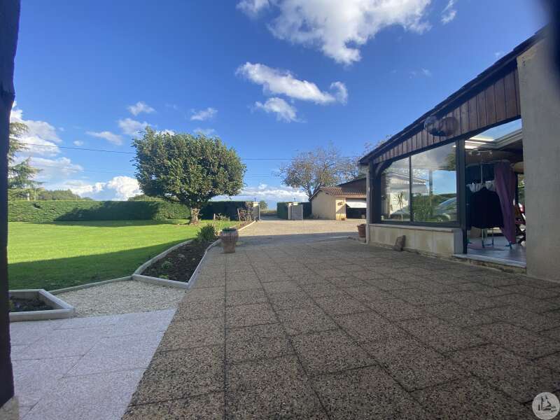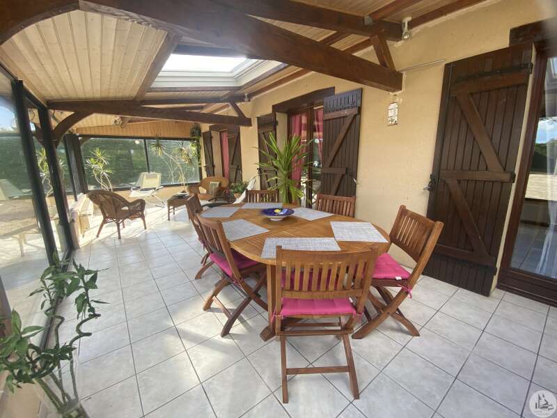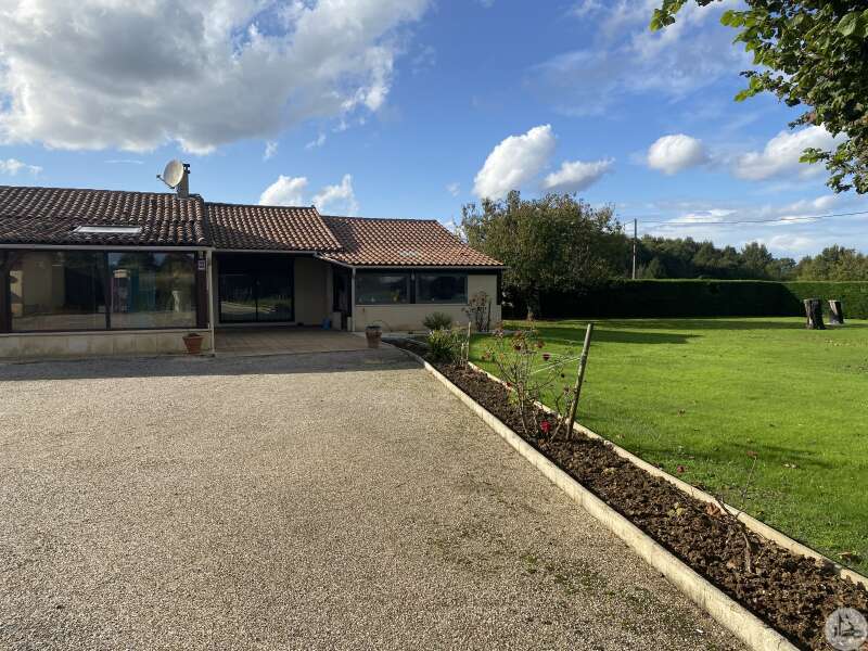 Single storey house of 165 m2 on flat landscaped land of 2500 m2 fully fenced. It consists of a fitted kitchen of 12 m2, a living room of 25 m2 with closed insert, a dining room of 13 m2 which can be used as a bedroom, two bedrooms of 15 and 23 m2, a bathroom and separate toilet. A large laundry room of 36 m2 with mezzanine. A large veranda at the front of the house of 35 m2. A glazed courtyard of 13 m2. Outside a garage of 25 m2 as well as a courtyard for two vehicles of 24 m2 (8m * 3m). Recent electric gate Double glazing