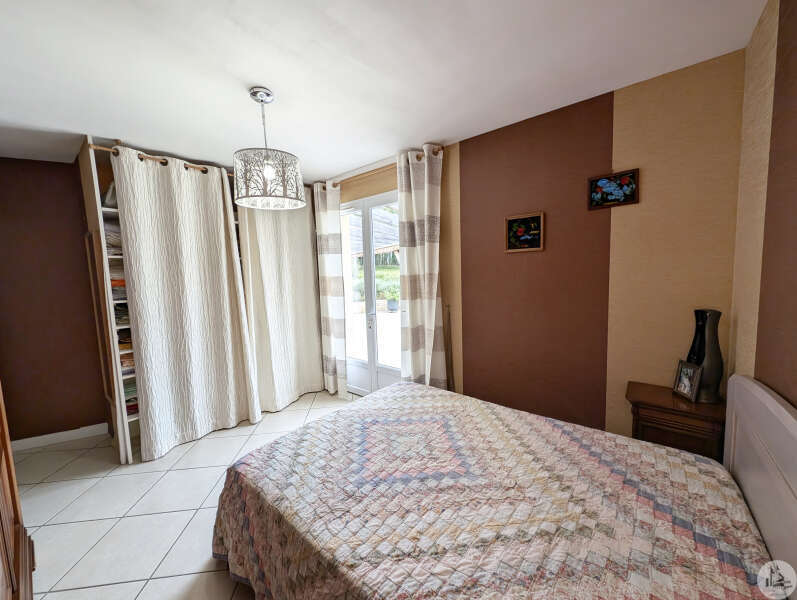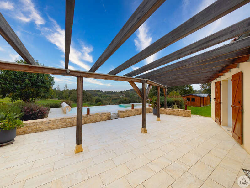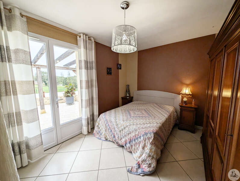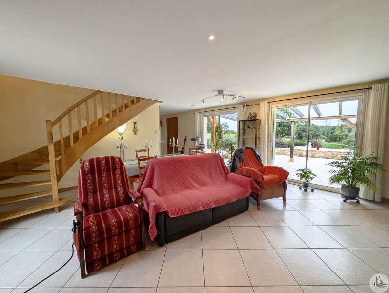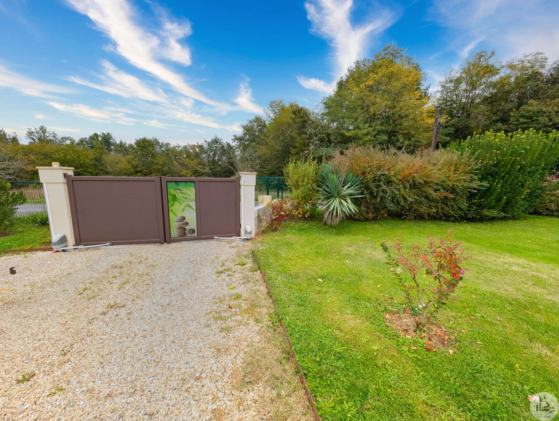 Garden level: Entrance (6.20 m²), living room (38.16 m²) with terrace access, fitted kitchen (9.60 m²), pantry/boiler room (12 m²), office (8 m²), bedroom 1 (13.64 m²) with terrace access, bedroom 2 (11.48 m²), bathroom (7.6 m²) with shower and bathtub, WC. Upstairs: landing (5 m²), bedroom 3 (14 m²) plus attic space converted into storage, bedroom 4 (12 m²) plus attic space converted into storage, shower room and WC (5 m²). - Heated salt-water infinity pool (2017), electric roller shutter. - Terrace of over 40 m² - 4198 m² of land enclosed with welded panels and an electric gate with videophone. - 2 Garden Sheds - Attached shelters on screed - Chicken coop - Vegetable garden - Oil-fired underfloor heating (wood stove or fireplace available) - Individual sanitation system compliant - 5 m3 rainwater collection tank with pump
