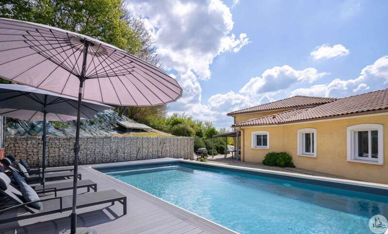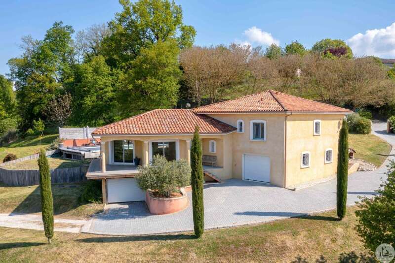 House recently built in 2007 of 163 m2 on landscaped, enclosed land of 3056 m2. The interior consists of; a main room of 77 m2 with living room, dining room and open kitchen. A master suite with shower room, two bedrooms of 13 and 11 m2, dressing room, separate shower room and separate toilet. A basement of 90 m2 composed of a laundry room of 20 m2 and a garage of 70 M2 with electric closing door. Double glazing and electric roller shutters. Outside; two terraces, a salt pool of 11m * 5m and electric closing gate. Individual sanitation system. Underfloor heating. Heat pump.