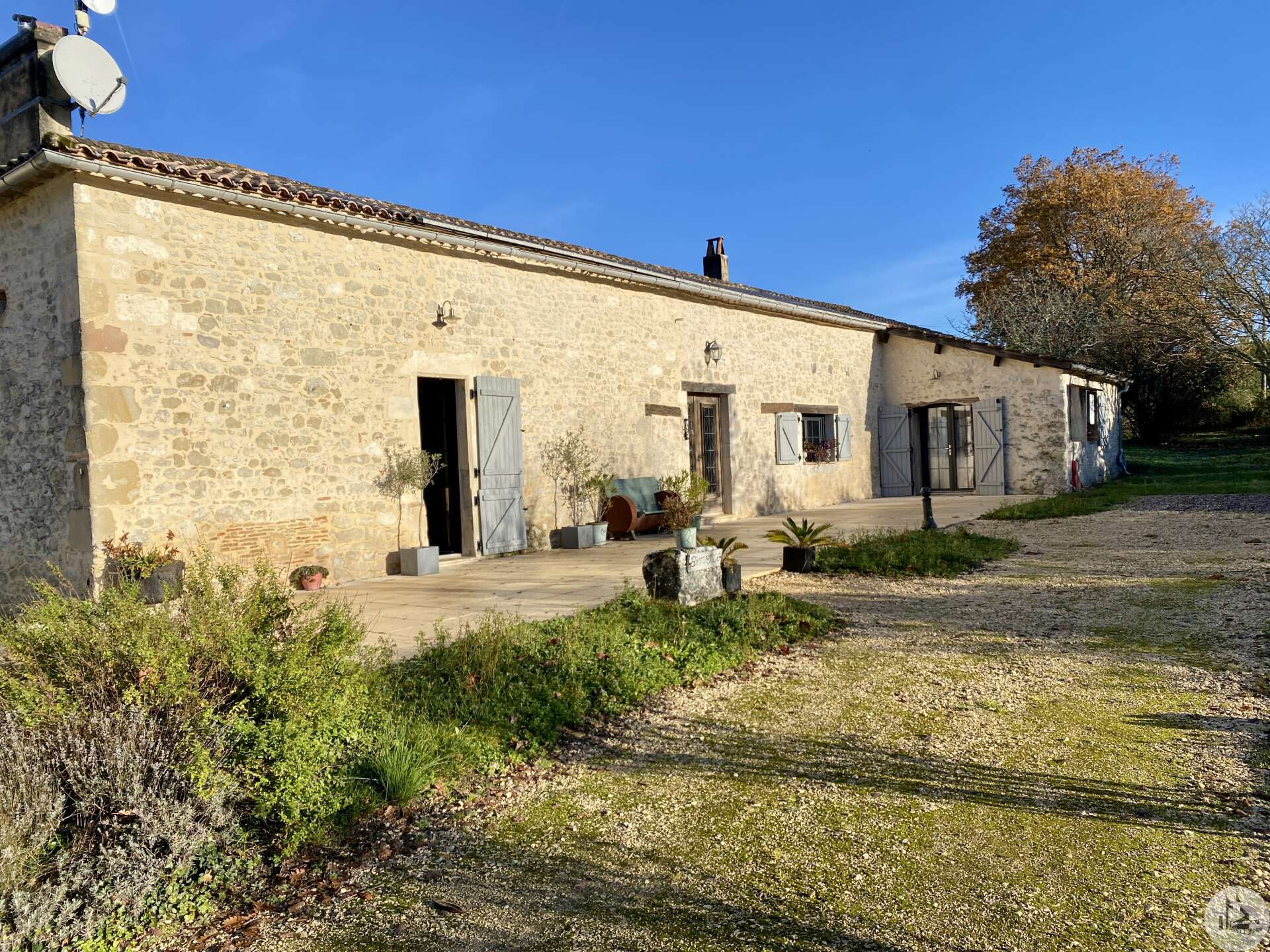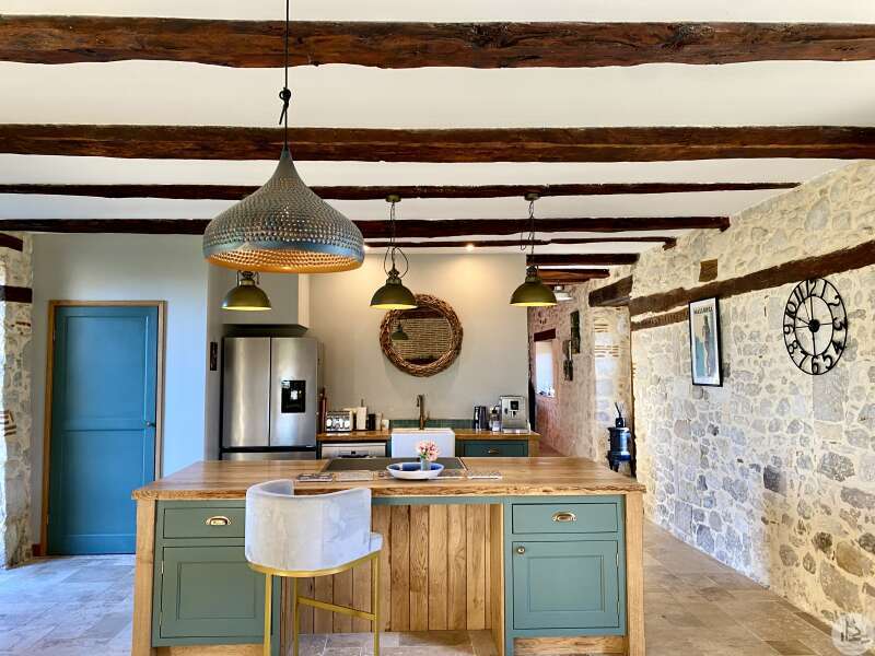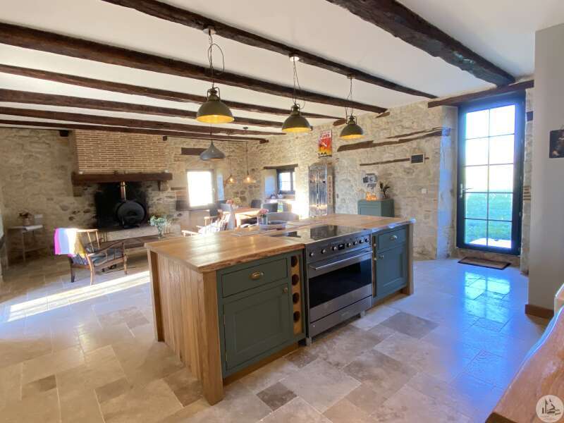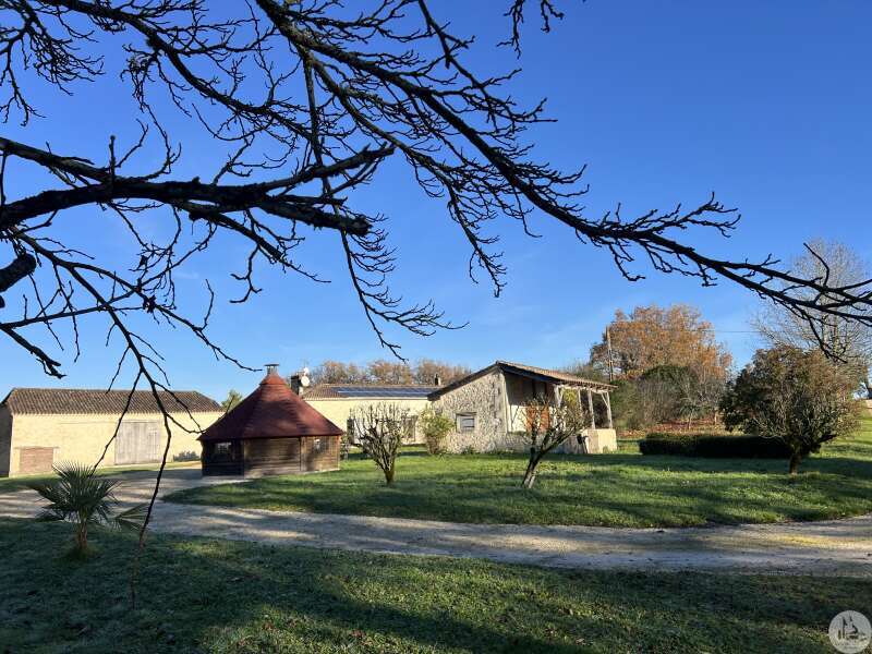 Fantastic appointed property situated near to three gorgeous medieval bastide villages, all having the prestigious label, 'One of the most beautiful villages of France' A unique opportunity to acquire a beautifully restored stone property set within 25 hectares of land.( Approx 61 acres) The estate includes multiple outbuildings also offers excellent potential for a business, if desired. A beautiful tranquil setting with stunning panoramic views, located just 10 minutes from the beautiful bastide village of Villeréal and near to the hilltop village Monflanquin and also to Monpazier , both superb dynamic medieval villages. The airport of Bergerac a riverside town , known for its good wines is under 40 minutes with flights to the Uk, Holland and Belguim Bordeaux Unesco heritage city at 2hours with its Fast Lgv train link to Paris, the ville 'Rose' of Toulouse at equal distance Main House ( 150m2 ) 1614 ft2 This light-filled stone residence comprises: Kitchen / Dining Area (46 m²): Fireplace with woodburner, bespoke fitted kitchen with island, travertine flooring, and double glazing. Exposed stone walls and beams ; Charming Sitting Room (35 m²): Stone fireplace, exposed stone feature wall, travertine floor tiles and direct access to the covered terrace. Family Bathroom (7 m²): Free-standing bath / shower, basin, Wc, underfloor heating, and travertine flooring. Bedroom 1 (15 m²): Wooden flooring and glazed door opening onto the terrace. Shower Room (5.5 m²): Walk-in shower, Wc, and hand basin. Bedroom 2 (14 m²): Wooden flooring and doors opening to the front patio. hallway 6m2 with stair case leading to : -1st Floor Bedroom 3 (10 m²): Velux window, wooden flooring, with access to storage under the eaves. Additional features include a large covered terrace and solar panels. Underfloor heating in the bathrooms and wood burner in the Kitchen dining area. Open fire place in the sitting room There is scope for further accommodation to be created in the attic area. Exterior & Outbuildings Mature garden, orchard, woods and pastures. Wooden chalet ideal for barbecues and outdoor entertaining Large stone barn (approx. 150 m²) Ideal for classic cars Additional stone building Original shower/toilet block to renovate Swimming pool (12 × 6 m, chlorine) with an adjoining tobacco-drying barn, perfect for creating a generous entertaining area The estate offers excellent potential for a seasonal or commercial activity, for example a glamping site. Electric charging points are already installed on the property, or it can serve equally as a peaceful family home. A tranquil setting, ideal for nature lovers.