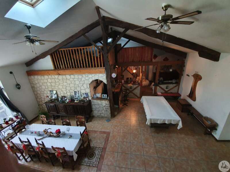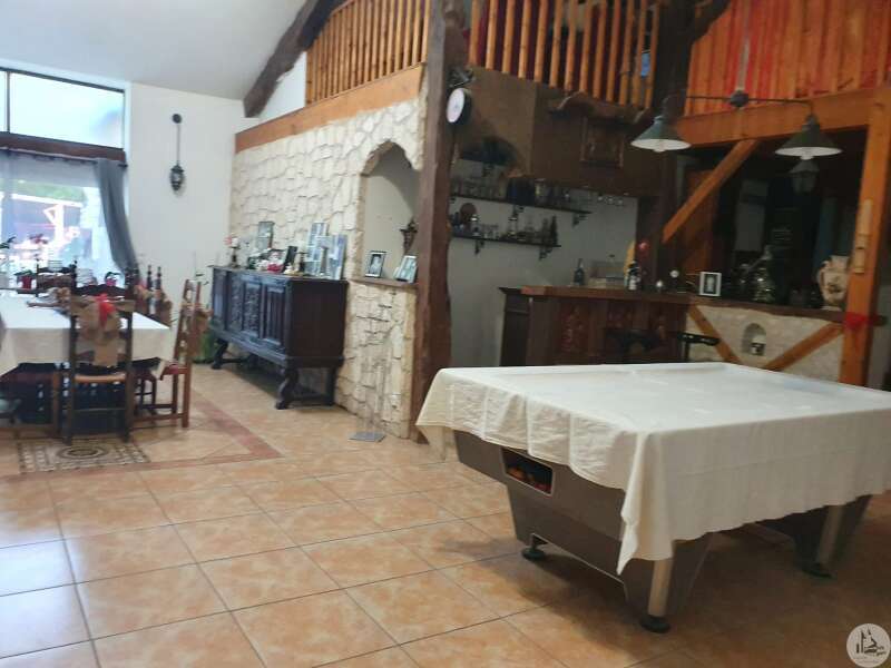 Stone property with outbuildings on a 5145 m² plot. The house, approximately 241 m², comprises: On the ground floor, a main room used as a living room with a cathedral ceiling (approximately 75 m²) and a wood-burning stove, a kitchen/dining room with a fireplace insert, four bedrooms, three bathrooms (one with a bathtub), three additional rooms, and three toilets. Upstairs, a mezzanine. The outbuildings include: A garage, a workshop, a shed, and several cellars. Outside, several terraces lead to a wooded park with a well and an orchard. The windows and doors are double-glazed wood and PVC. The heating system is electric radiators and reversible air conditioning. Fiber optic internet is available.