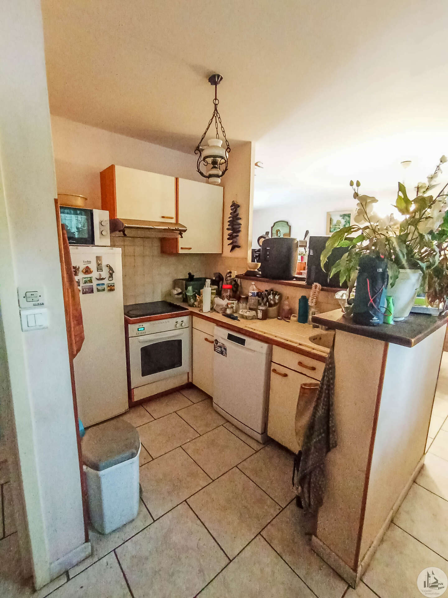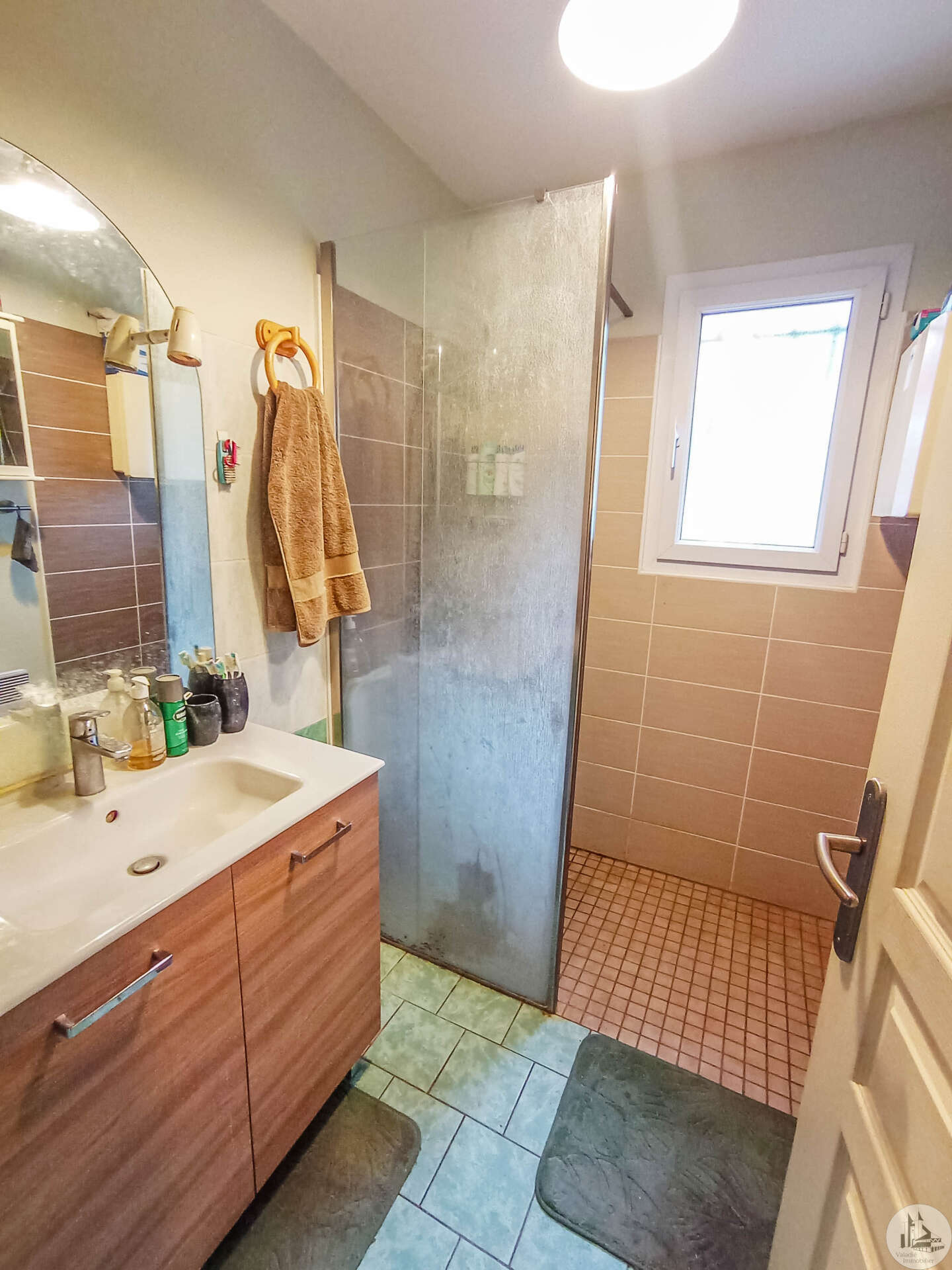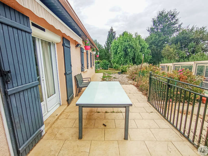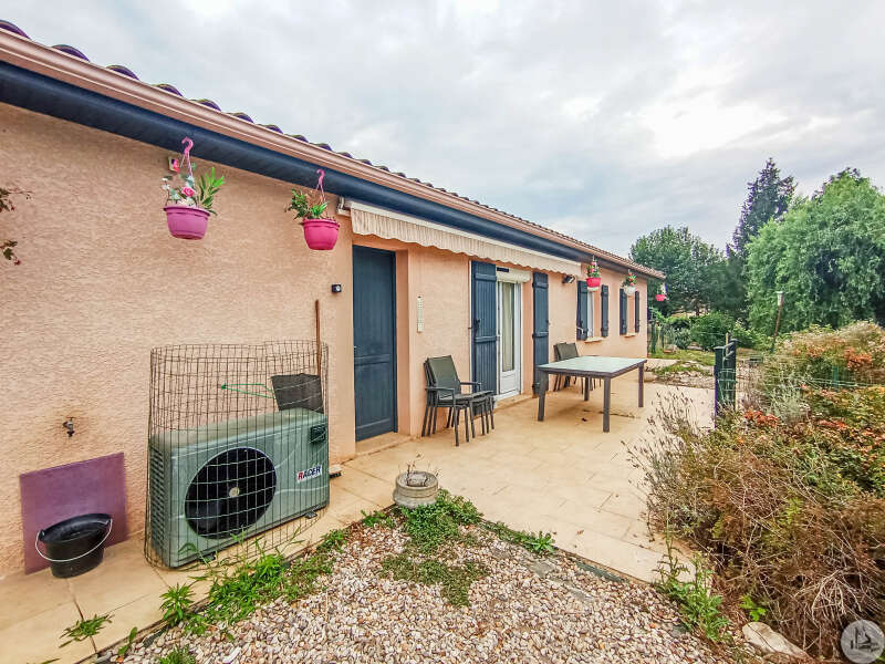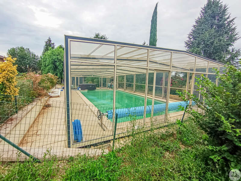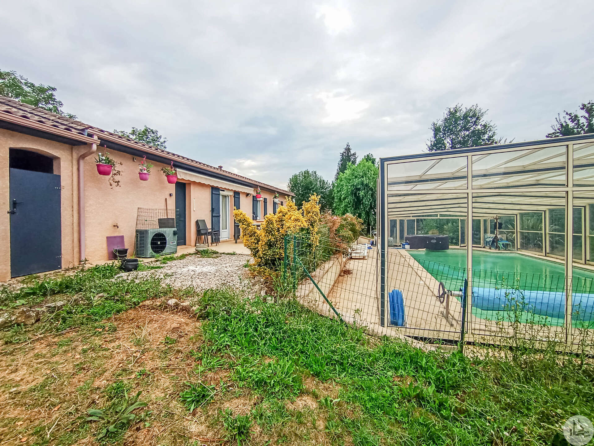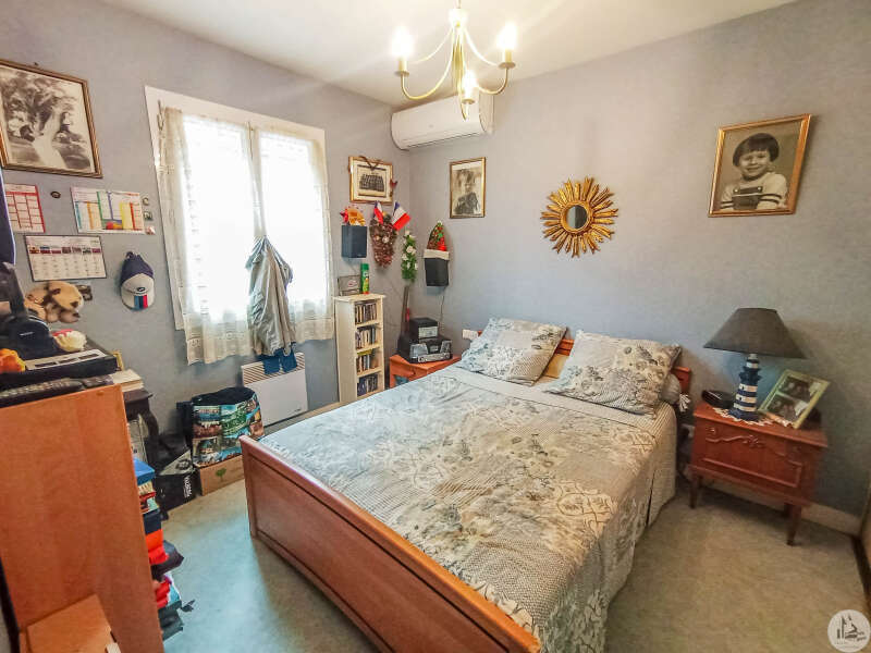 A single-storey house built in 1989 and renovated until the 2000s, with a living area of approximately 93 m2 including: - An entrance into a room with kitchen/living room/dining room of approximately 45 m2, tiled floor, a French window opening onto the garden. A fitted kitchen with upper and lower cupboards, extractor hood, sink. - A living room of approximately 18.9 m2, tiled floor, a bay window. - A storeroom of approximately 11.7 m2, also serving as a pool room. - A distribution corridor of approximately 3.4 m2, tiled floor - A shower room of approximately 3.4 m2, tiled floor, earthenware walls, a walk-in shower, a sink, a VMC, a window. - A bedroom of approximately 8.4 m2, linoleum floor, cupboards. - A separate toilet of approximately 1.5 m2, tiled floor, VMC. - A bedroom of approximately 10.5 m2, linoleum floor, a cupboard. Information elements: - PVC joinery with double glazing and roller shutters. - Heating by reversible air conditioning + electric radiators. - Sanitation by septic tank. - Insulation of the attic by glass wool. Outside: - A double garage of 40m2, concrete floor. - A chlorine swimming pool with a 10X5m dome (heated by heat pump) Liner and filtration changed in 2024. - Garden of approximately 2140m2