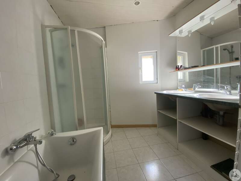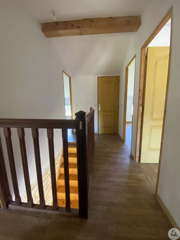 Recently built house (about 13 years old) including: - on the ground floor: fitted kitchen/living room (44.5 m2), laundry/boiler room (6 m2), bedroom or office (12.2 m2), shower room of around 4.5 m2 ( 2 basins, shower and bath), a separate toilet. - Upstairs: landing, 4 bedrooms (11.7; 10.7; 11.1 and 10.2 m2), a toilet, a room that can be converted into a shower room or dressing room (2.6 m2) - the evacuations and arrivals are present under the floor. PVC double glazed windows. Gas heating (buried tank) Garden of more than 1000 m2.
