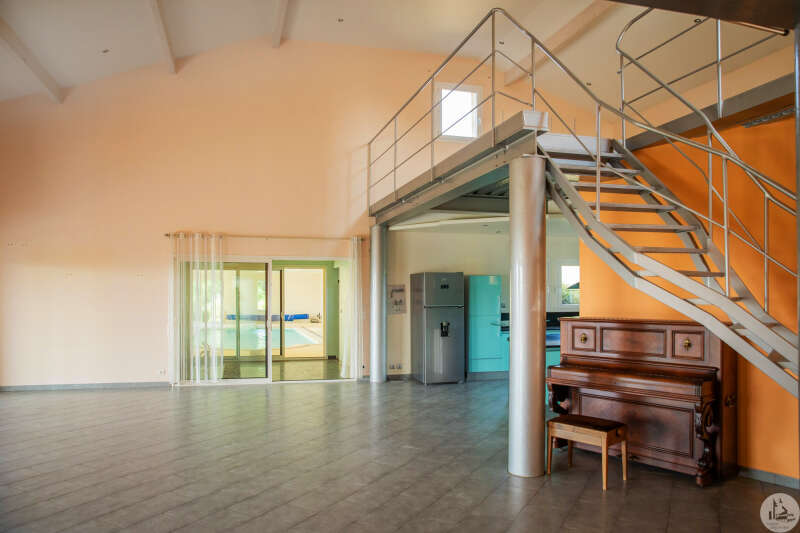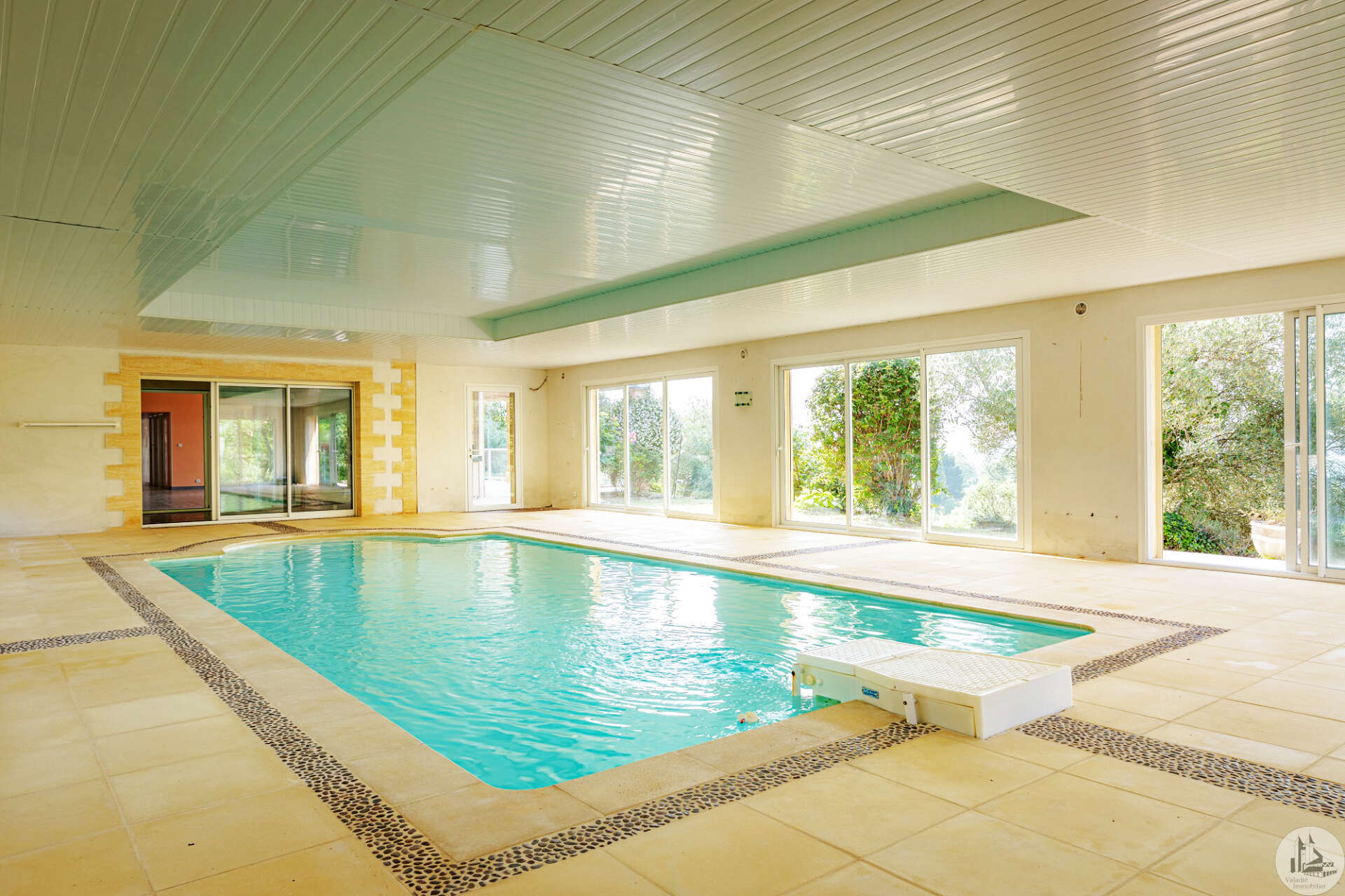 Description Contemporary home with indoor pool and enclosed grounds House - Carsac - Aillac, Périgord Noir Features: This property offers comfortable single-level living: – Built in 2008 – Living area with mezzanine: approx. 90 sq m – Cathedral ceiling opening onto a covered terrace of approx. 40 sq m With a view – Modern, bright, fully equipped kitchen with a pantry – 4 bedrooms, including 2 en suite with shower room/WC and one en suite with shower room, bath/WC, and terrace with a view – Ample storage – Separate laundry rooms – Pool area with spacious decking, shower, and WC – Utility room – Cellar – Garages – Automatic gates – Carport Features: Roller shutters, solar panel heating, two entrances to the property allowing easy exit without maneuvering Outbuildings: Garages, cellar, workshop Fenced 6,508 m² plot, landscaped with numerous plantings and flowerbeds. Location: This property is situated in beautiful, verdant countryside in the commune of Carsac-Aillac, just 10 minutes from Sarlat with all amenities. Quiet, residential area. A89 motorway - Bordeaux 50 minutes, A20 motorway - Paris 20 minutes.