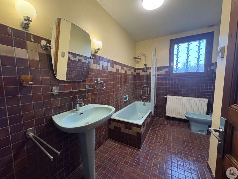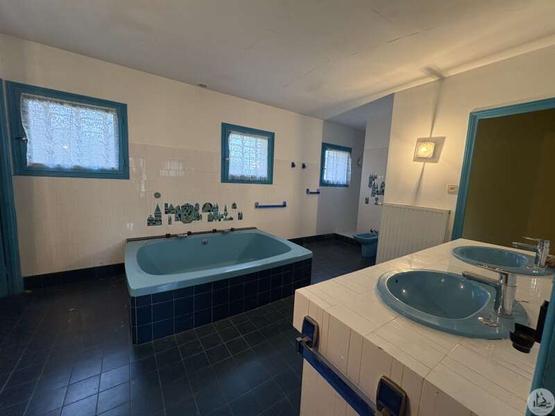 The main house, approximately 230 m², comprises: On the ground floor, an entrance hall, a kitchen with a central island, a living/dining room with a closed fireplace, a second living room, a suite with a bathroom (bathtub, shower, and double vanity), and a separate toilet with a washbasin. Upstairs, an open-plan office, three bedrooms, a bathroom, and a separate toilet with an outdoor terrace. The gîte, approximately 50 m², comprises an entrance hall, a main room with a kitchenette, a suite, a second shower room, and a separate toilet. This gîte is heated by electric convectors. The windows and doors in both properties are double-glazed wood or aluminum. Adjoining the house are a double garage with an electric door, a boiler room with a 2015 heat pump for the main house, a laundry room, and a cellar. Outside, several partially covered terraces lead to a courtyard with parking and then to a wooded park with a 15m x 7m chlorine swimming pool equipped with a heat pump. Some refurbishment work is needed.