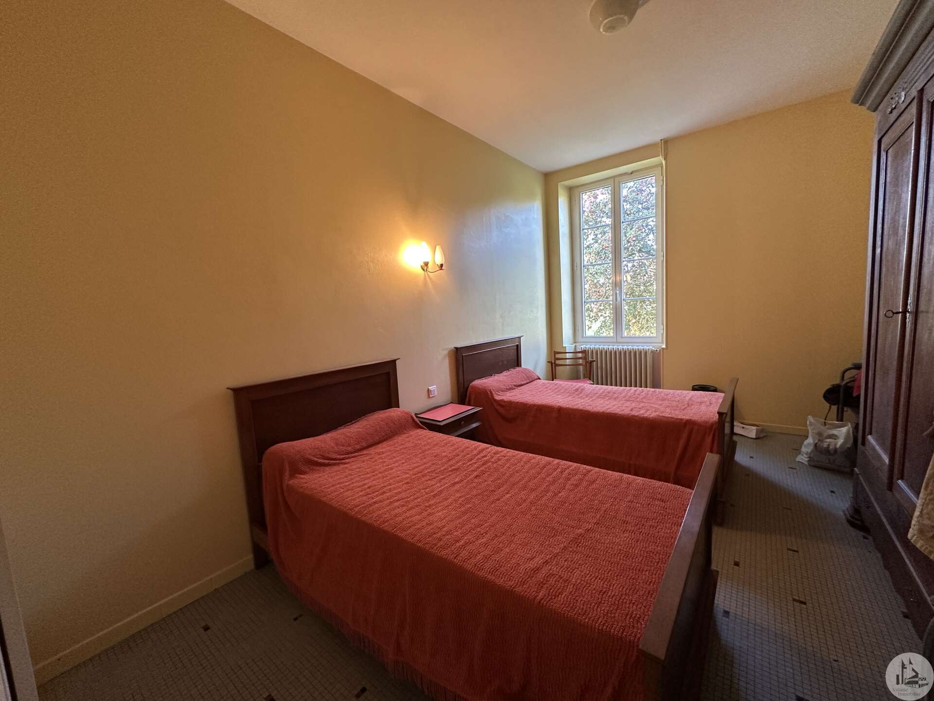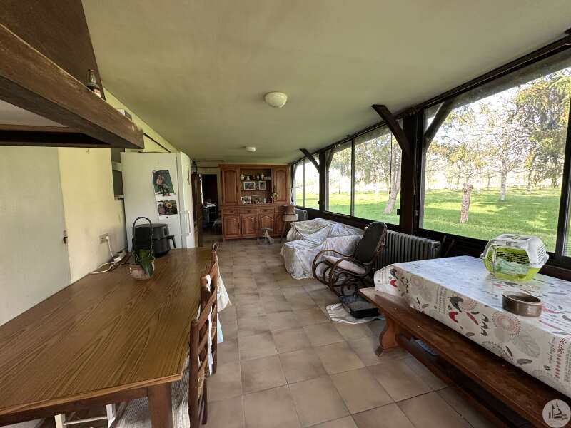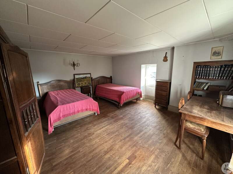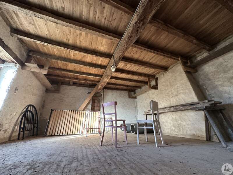Behind its stone walls, this authentic house invites you to discover a place steeped in charm. You'll find an entrance hall (4.9 sq m), a living/dining room with a working fireplace (22 sq m), a hallway (6 sq m) leading to three ground-floor bedrooms (14, 16.6, and 14.7 sq m), and a functional kitchen (22 sq m) opening onto a light-filled veranda with a sink (41.5 sq m). The house also includes a boiler room (14.5 sq m) with a Viessmann boiler, a shower room (5 sq m), and a separate WC. Upstairs, an additional bedroom (21 sq m) completes the sleeping area, while the attic (approximately 102 sq m) offers excellent potential for conversion to suit your needs. Outside, the charm is undeniable: several outbuildings—a chicken coop, a dovecote suitable for conversion, and a barn (approximately 400 sq m). The property sits on a flat, wooded plot. A well completes the ensemble. A property full of character, ideal for those seeking the charm of stone, space, and the tranquility of a preserved environment.