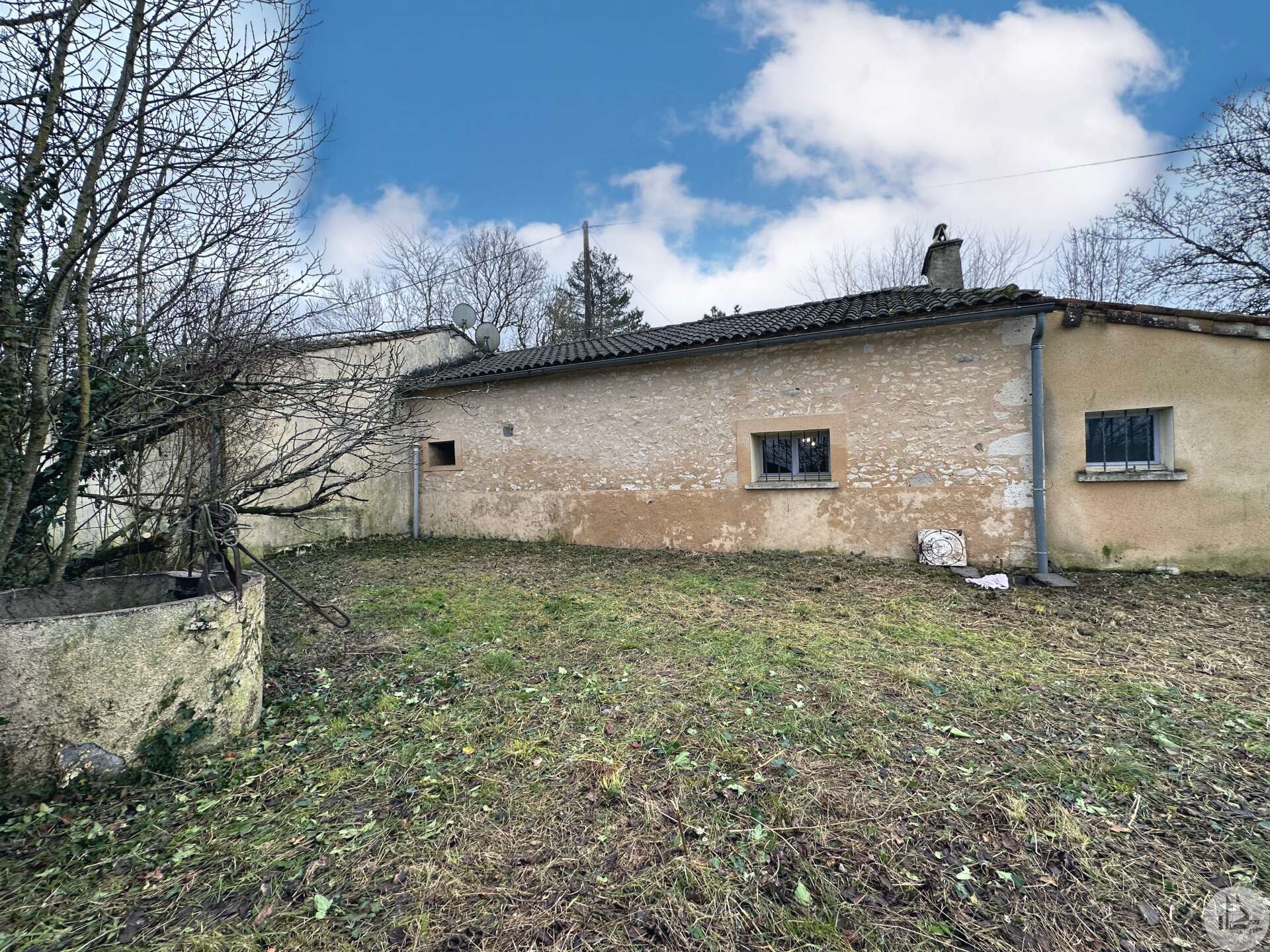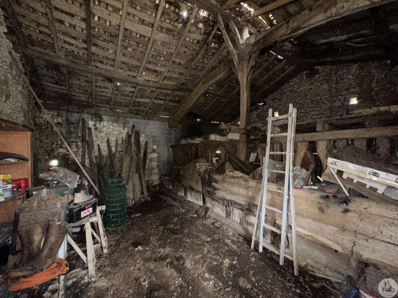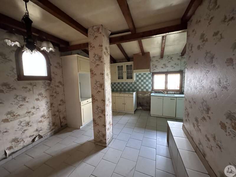 Dwelling house comprising: - living room with wood stove (28.3m2), - kitchen (20.5m2), - shower room (6.3m2), - hallway (3.6m2), - 2 bedrooms (10.5 and 10.7m2), - separate toilet. Attached barn, well, covered terrace, cinder block shed, unenclosed wooded land. Miscellaneous: - PVC double-glazed joinery - heating = wood stove in the living room - blown insulation in the attic (2011) - individual sanitation of the septic tank type (from 2010)