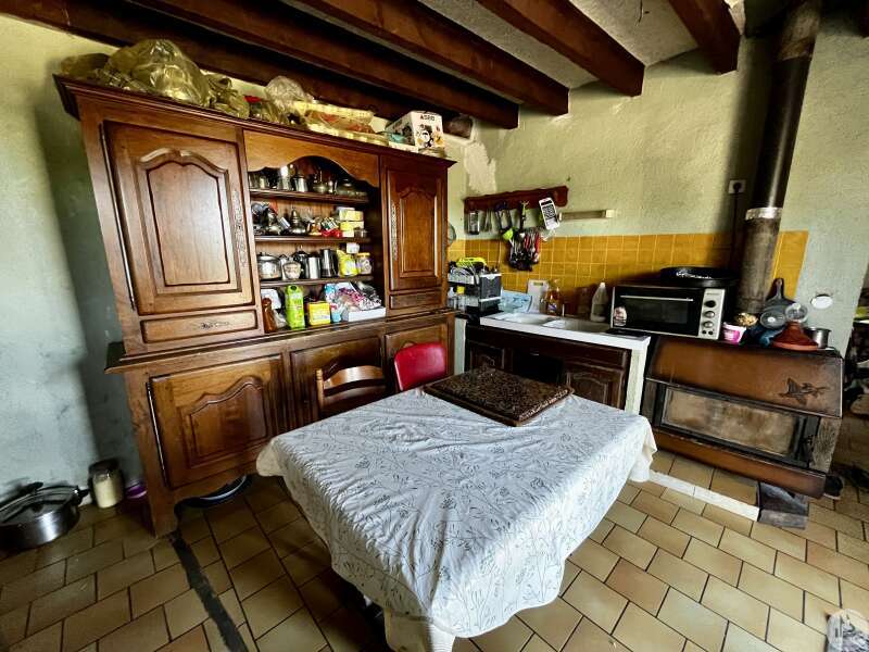 For sale, village house of 180 m², divided into two separate dwellings with independent entrances. The first accommodation consists, on the ground floor, of a kitchen and a dining room. Upstairs, there are two bedrooms, a toilet and a bathroom. The second accommodation includes, on the ground floor, a living room and a kitchen. Upstairs, two bedrooms and toilets. Both accommodations are equipped with double-glazed PVC windows, wood heating and an electric boiler for hot water. The property also includes a storeroom with a well and is connected to mains drainage.