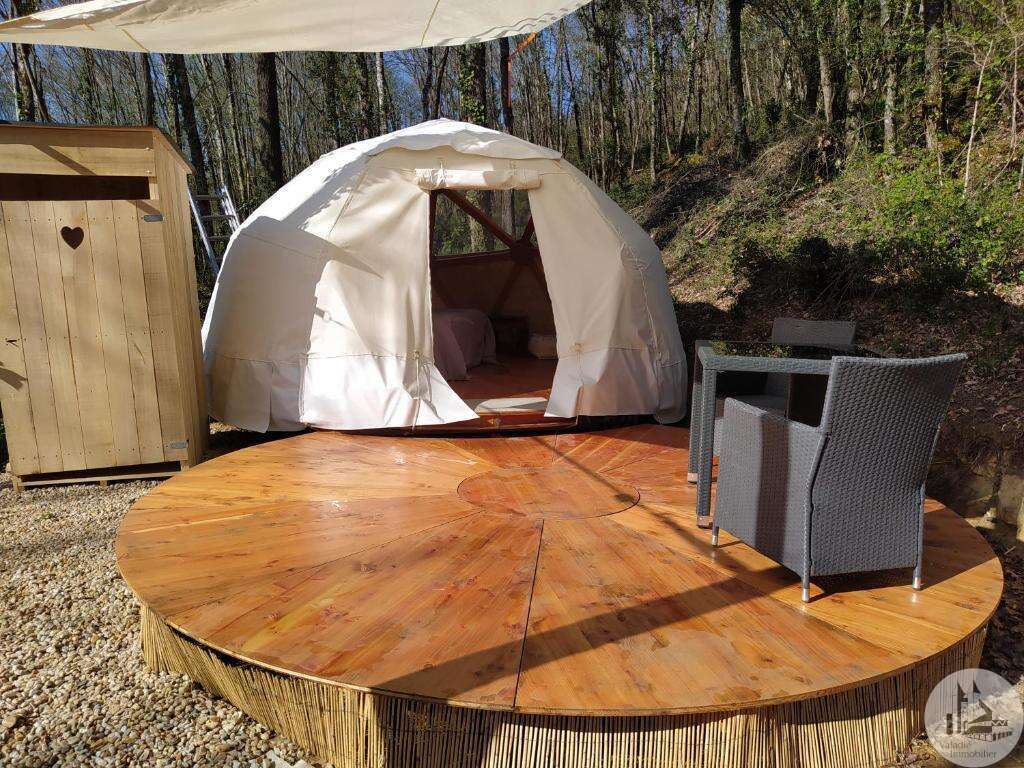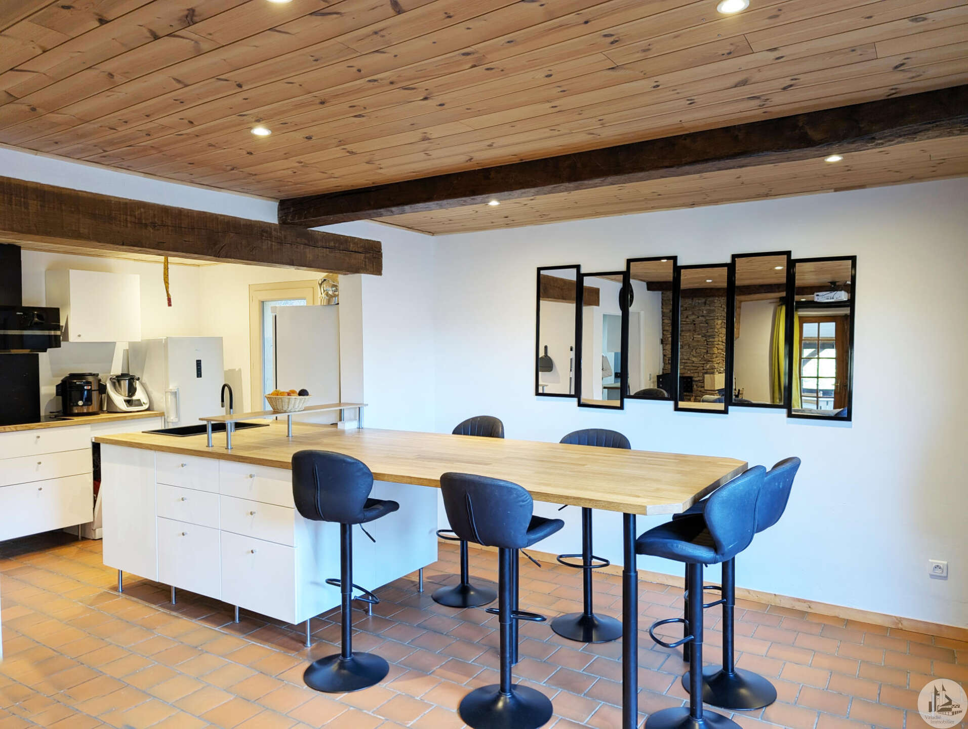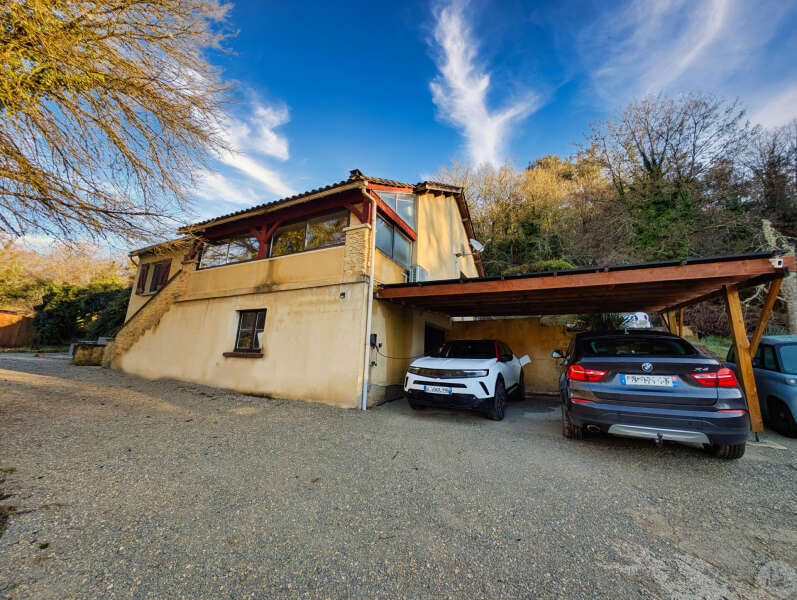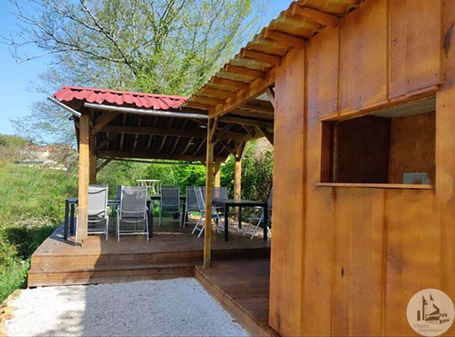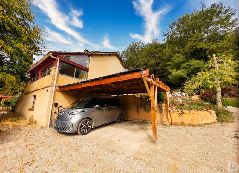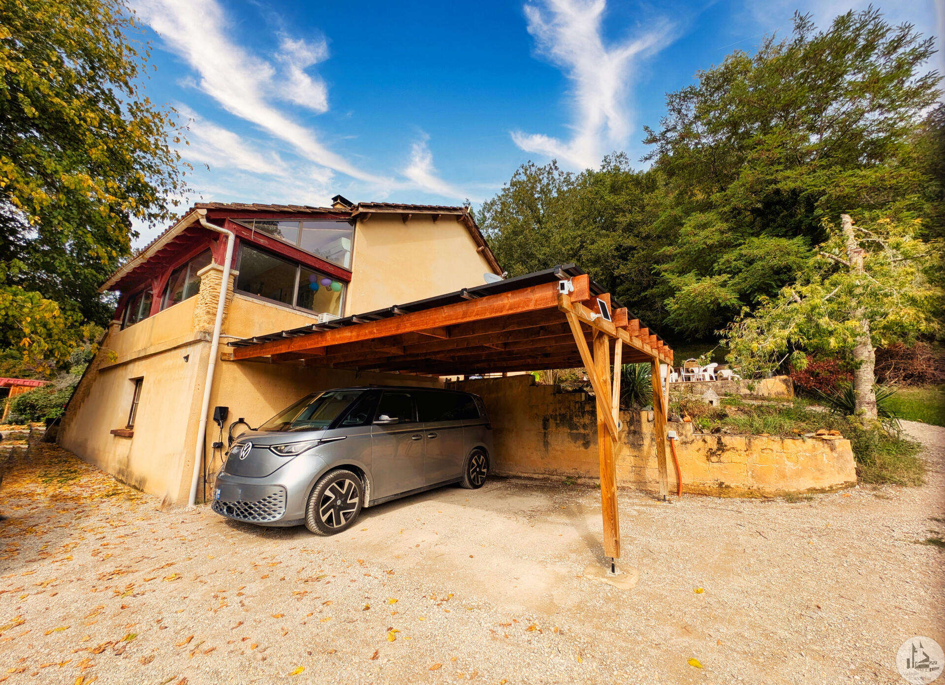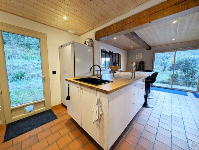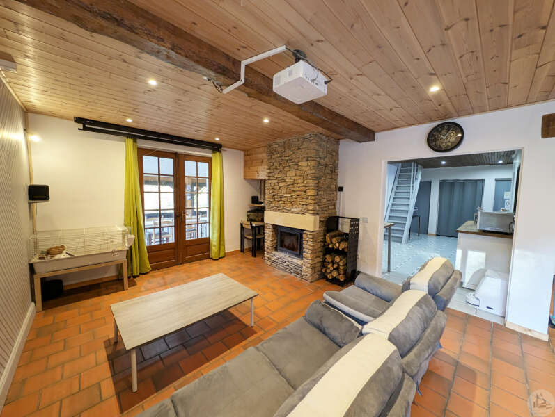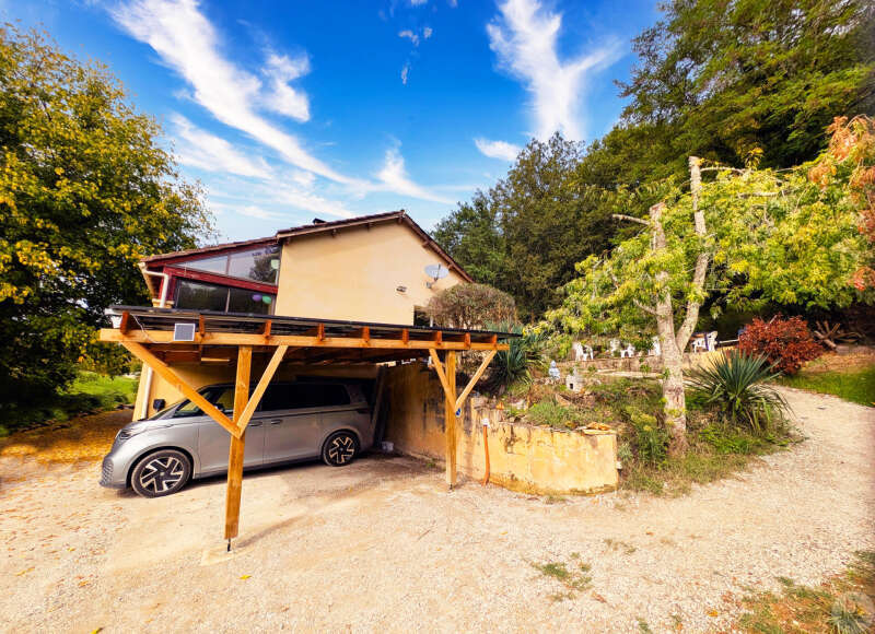 Main House: 16 m² veranda, 18 m² entrance hall, approximately 40 m² living room with a recently fitted kitchen and small pantry, dining room with French doors opening onto a terrace, living room with fireplace and French doors opening onto a terrace. Bedroom 1 (12.70 m²), Bedroom 2 (12.35 m²), recently renovated bathroom with shower and bathtub, an office or child's bedroom, and a toilet. Upstairs (Attic): A playroom of approximately 11 m² and two bedrooms of approximately 9 m² each. Ground Floor/Basement: A 22 m² guest room (sleeps 2) with a separate entrance. It faces west and is located on the ground floor of a two-story house, on the front facade. The sleeping area includes a double bed (160x200 cm), a shower room, and a toilet. A private terrace with a garden table is located in front of the room. A basement of approximately 100 m². * Double glazing * Electric heating + reversible air conditioning + fireplace insert with heat distribution system. * Solar panels * Carport for 2 cars * Fast charger for electric vehicles In an annex building, there are 4 guest rooms with independent entrances and a large suspended terrace: - Room 1, a family room of 20 m² (sleeps 5) with a separate entrance. It faces south and overlooks the swimming pool. The sleeping area includes a double bed (160x200 cm), a triple bed (3 bunk beds of 90x190 cm), a shower room, and a toilet. Reversible air conditioning. - Room 2, a double room of 20 m² (sleeps 4) with a separate entrance. It faces south. Facing west and opening onto the main terrace. The sleeping area includes a double bed (160x200 cm), shower room, and toilet. Reversible air conditioning. - Bedroom 3, a 20 m² double room (sleeps 3) with a separate entrance. It faces west and opens onto the main terrace. The sleeping area includes a double bed (160x200 cm), a single bed (90x200 cm), a table, a shower room, and a toilet. Reversible air conditioning. - Bedroom 4, a 20 m² family room (sleeps 5) with a separate entrance. It faces north and overlooks the forest. The sleeping area includes a double bed (160x200 cm), a triple bed (3 bunk beds, 90x190 cm), a shower room, and a toilet. Reversible air conditioning. 1 unusual accommodation: The Dome is a geodesic hemisphere 12m² (sleeps 2) with a wooden frame and canvas exterior, fully insulated. The sleeping area includes a double bed (140x1900). Dry toilet and outdoor solar shower. Private parking for guests. Heated, covered swimming pool with a retractable dome. Summer kitchen area for guests with a sheltered terrace.