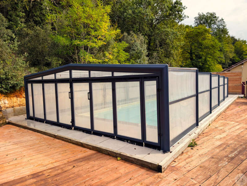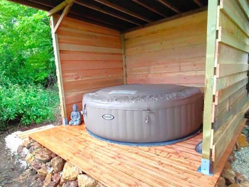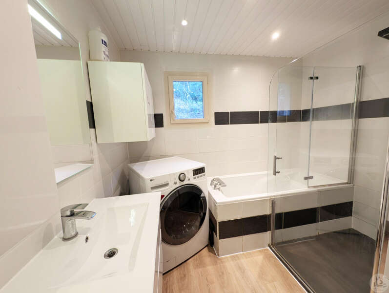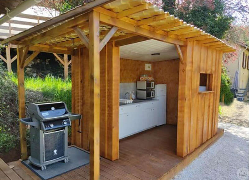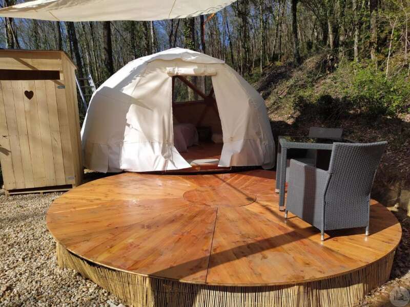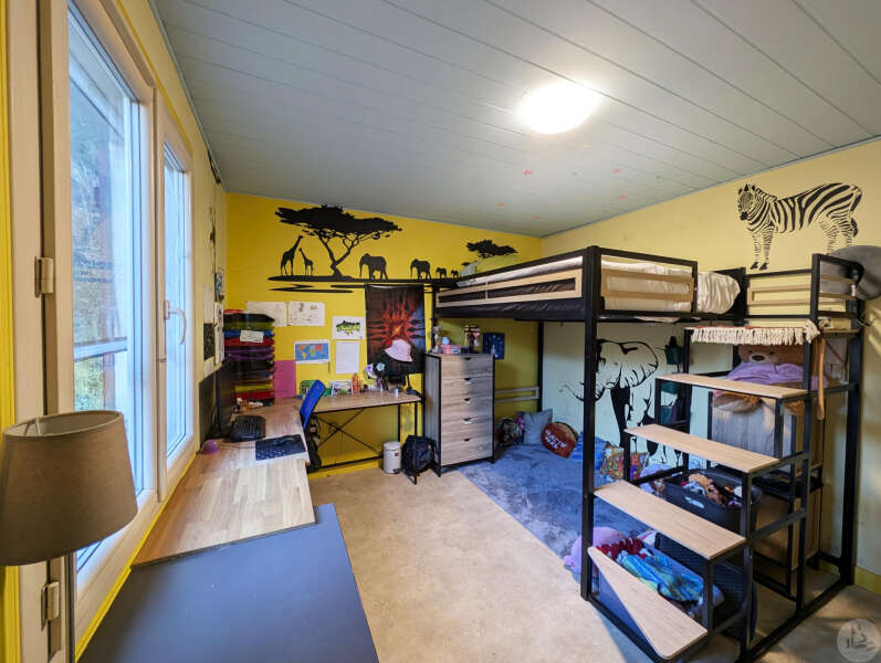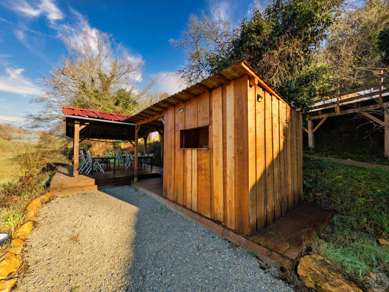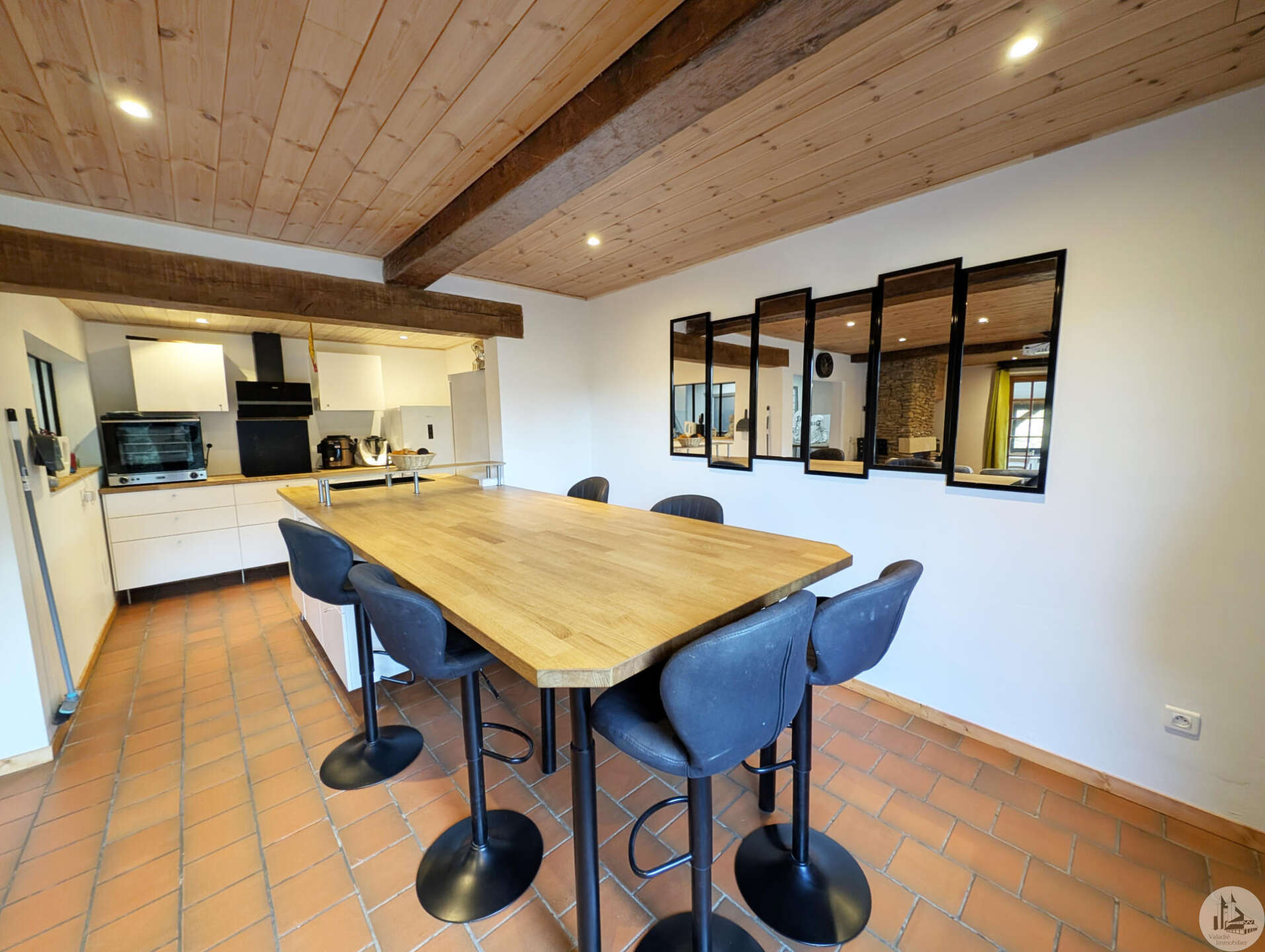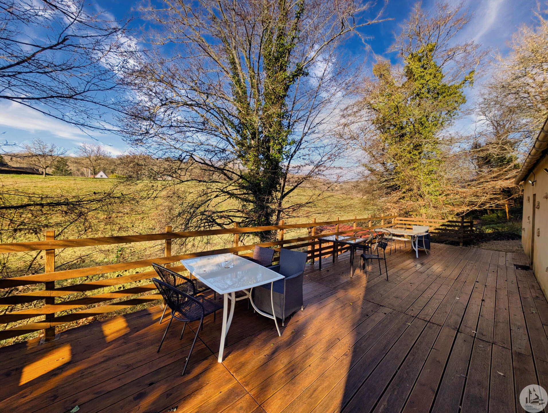 Main House: 16 m² veranda, 18 m² entrance hall, approximately 40 m² living room with a recently fitted kitchen and small pantry, dining room with French doors opening onto a terrace, living room with fireplace and French doors opening onto a terrace. Bedroom 1 (12.70 m²), Bedroom 2 (12.35 m²), recently renovated bathroom with shower and bathtub, an office or child's bedroom, and a toilet. Upstairs (Attic): A playroom of approximately 11 m² and two bedrooms of approximately 9 m² each. Ground Floor/Basement: A 22 m² guest room (sleeps 2) with a separate entrance. It faces west and is located on the ground floor of a two-story house, on the front facade. The sleeping area includes a double bed (160x200 cm), a shower room, and a toilet. A private terrace with a garden table is located in front of the room. A basement of approximately 100 m². * Double glazing * Electric heating + reversible air conditioning + fireplace insert with heat distribution system. * Solar panels * Carport for 2 cars * Fast charger for electric vehicles In an annex building, there are 4 guest rooms with independent entrances and a large suspended terrace: - Room 1, a family room of 20 m² (sleeps 5) with a separate entrance. It faces south and overlooks the swimming pool. The sleeping area includes a double bed (160x200 cm), a triple bed (3 bunk beds of 90x190 cm), a shower room, and a toilet. Reversible air conditioning. - Room 2, a double room of 20 m² (sleeps 4) with a separate entrance. It faces south. Facing west and opening onto the main terrace. The sleeping area includes a double bed (160x200 cm), shower room, and toilet. Reversible air conditioning. - Bedroom 3, a 20 m² double room (sleeps 3) with a separate entrance. It faces west and opens onto the main terrace. The sleeping area includes a double bed (160x200 cm), a single bed (90x200 cm), a table, a shower room, and a toilet. Reversible air conditioning. - Bedroom 4, a 20 m² family room (sleeps 5) with a separate entrance. It faces north and overlooks the forest. The sleeping area includes a double bed (160x200 cm), a triple bed (3 bunk beds, 90x190 cm), a shower room, and a toilet. Reversible air conditioning. 1 unusual accommodation: The Dome is a geodesic hemisphere 12m² (sleeps 2) with a wooden frame and canvas exterior, fully insulated. The sleeping area includes a double bed (140x1900). Dry toilet and outdoor solar shower. Private parking for guests. Heated, covered swimming pool with a retractable dome. Summer kitchen area for guests with a sheltered terrace.