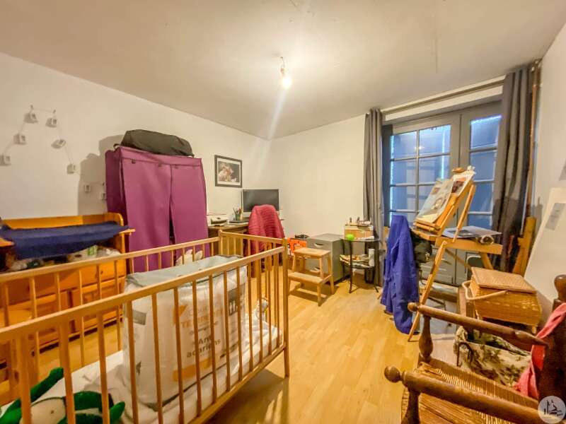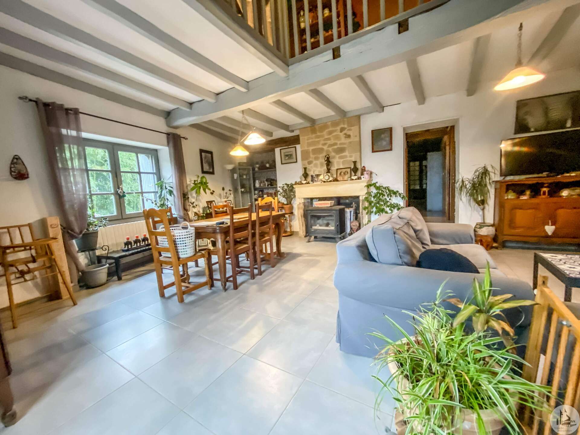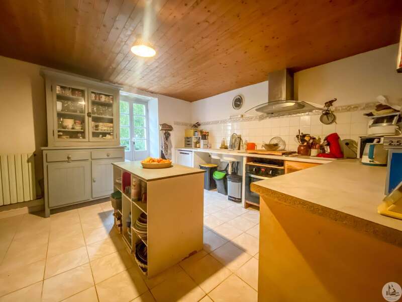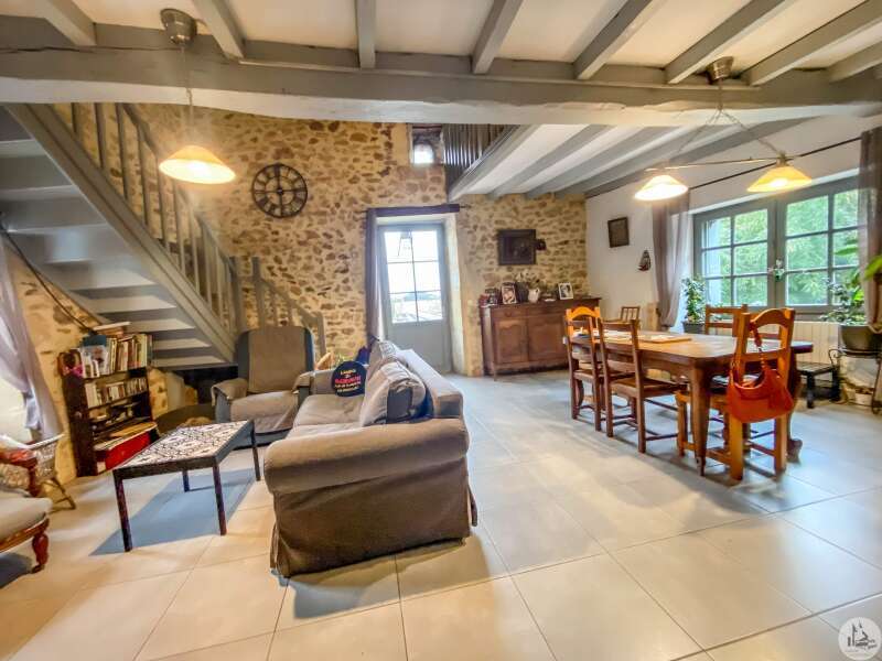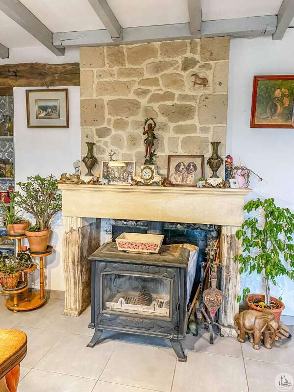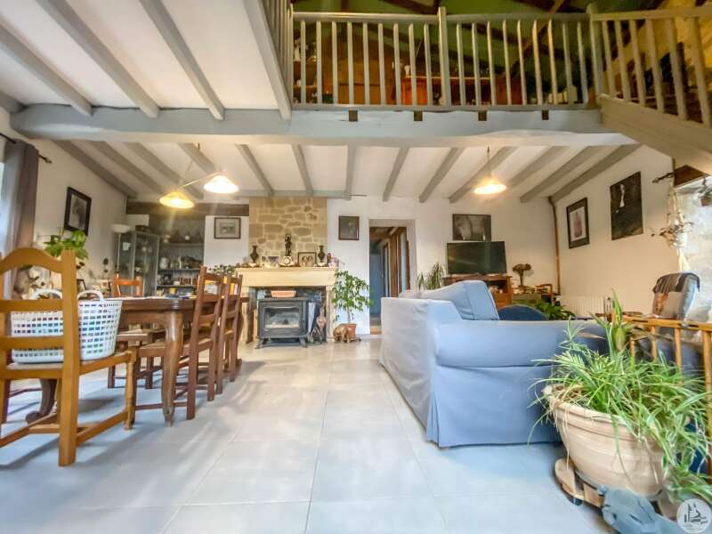 Stone house restored in 1999, comprising: living/dining room (32 m2) with fireplace (wood stove) and mezzanine (11.2 m2), a corridor (12.3 m2) leading to: the kitchen (15.9 m2) fitted out with stone fireplace, 3 bedrooms of 14.9; 11.3 and one of 17.7 m2 with dressing room, bathroom 3.8 m2 (sink and shower) and w.c. Heating by radiators powered by heat pump (from 2022) Single-glazed wooden windows. Everything in the sewer. On the 1st floor, accessible by a staircase and gallery (mezzanine): convertible attic (approximately 100m2) Glued laminated framework. 1 Velux type roof window. This house is already perfectly habitable and comfortable. But improvement work could only optimize it. Cellar under the entire house (part of which could be converted: old room with door opening onto a garden at the front of the house, non-functional stone fireplace and openings to the outside) Garden accessible from the back of the house (a few steps) and small outdoor space at the front of the house.