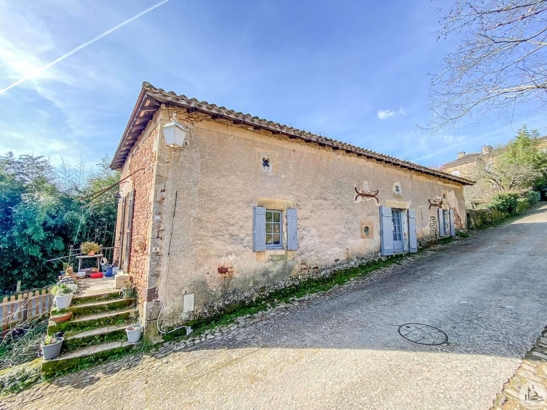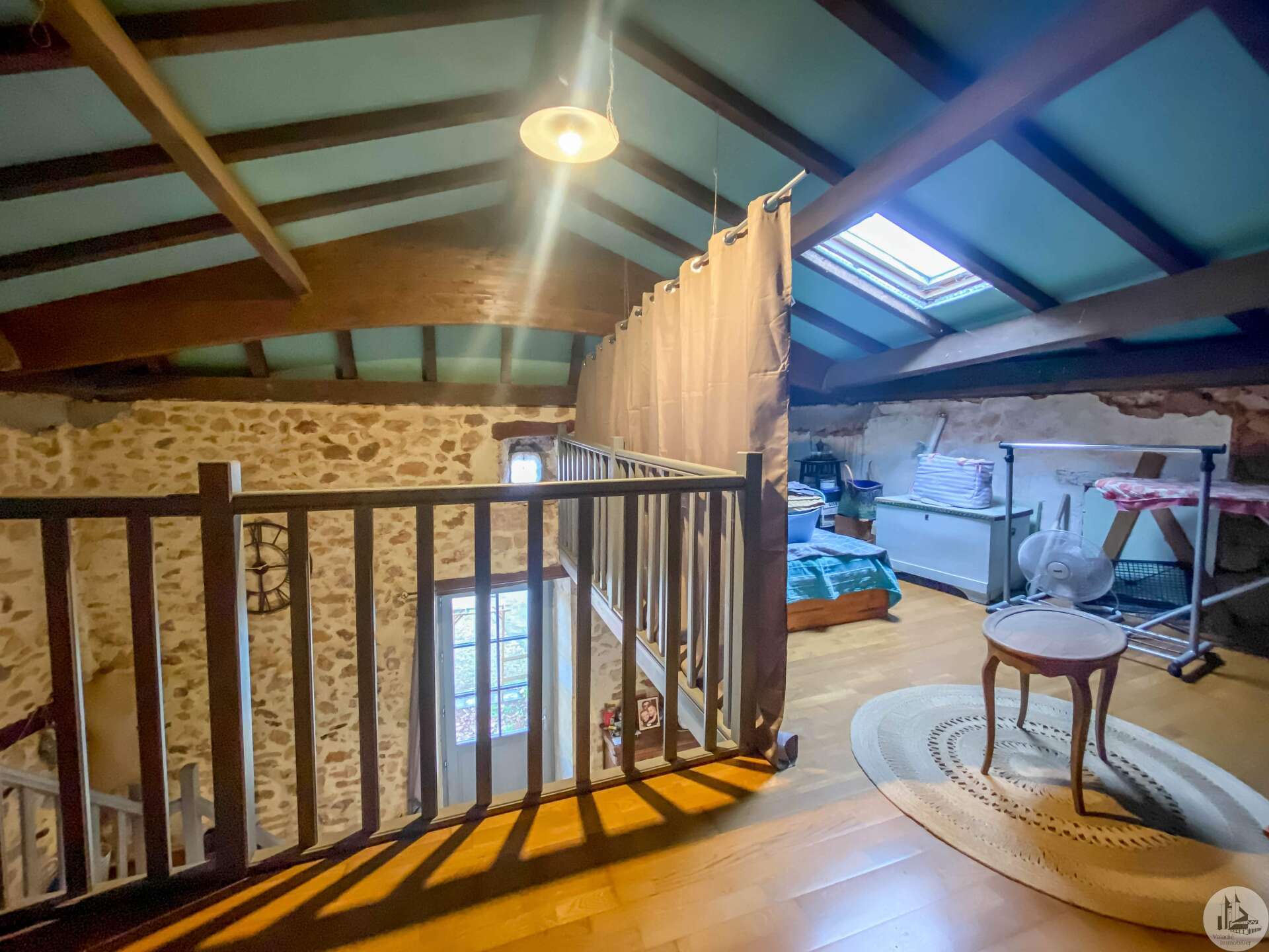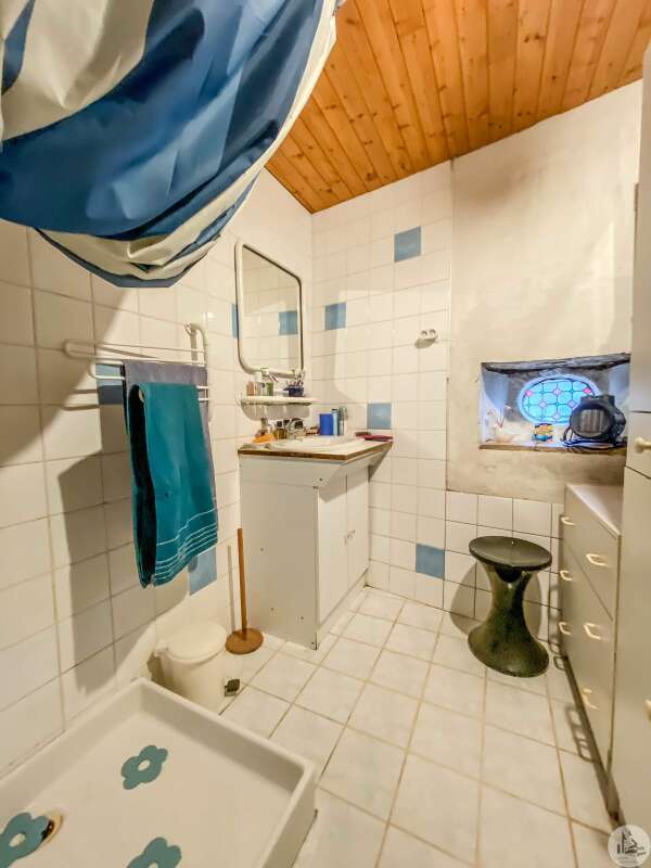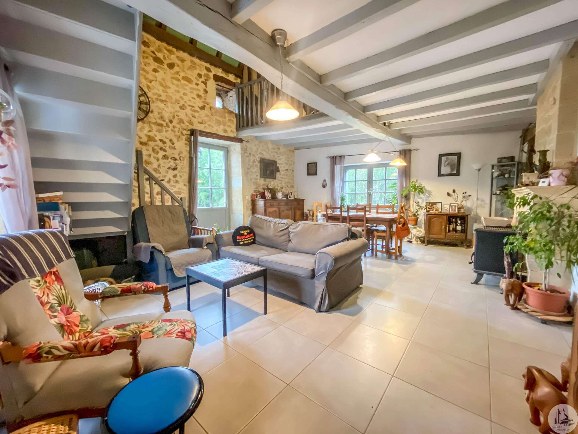 Stone house restored in 1999, comprising: living/dining room (32 m2) with fireplace (wood stove) and mezzanine (11.2 m2), a corridor (12.3 m2) leading to: the kitchen (15.9 m2) fitted out with stone fireplace, 3 bedrooms of 14.9; 11.3 and one of 17.7 m2 with dressing room, bathroom 3.8 m2 (sink and shower) and w.c. Heating by radiators powered by heat pump (from 2022) Single-glazed wooden windows. Everything in the sewer. On the 1st floor, accessible by a staircase and gallery (mezzanine): convertible attic (approximately 100m2) Glued laminated framework. 1 Velux type roof window. This house is already perfectly habitable and comfortable. But improvement work could only optimize it. Cellar under the entire house (part of which could be converted: old room with door opening onto a garden at the front of the house, non-functional stone fireplace and openings to the outside) Garden accessible from the back of the house (a few steps) and small outdoor space at the front of the house.