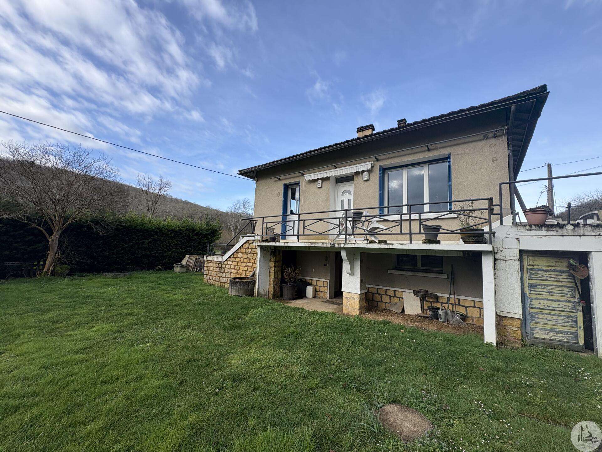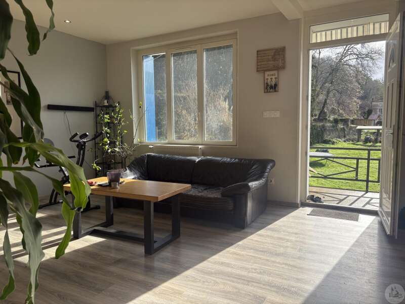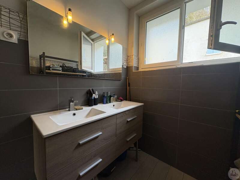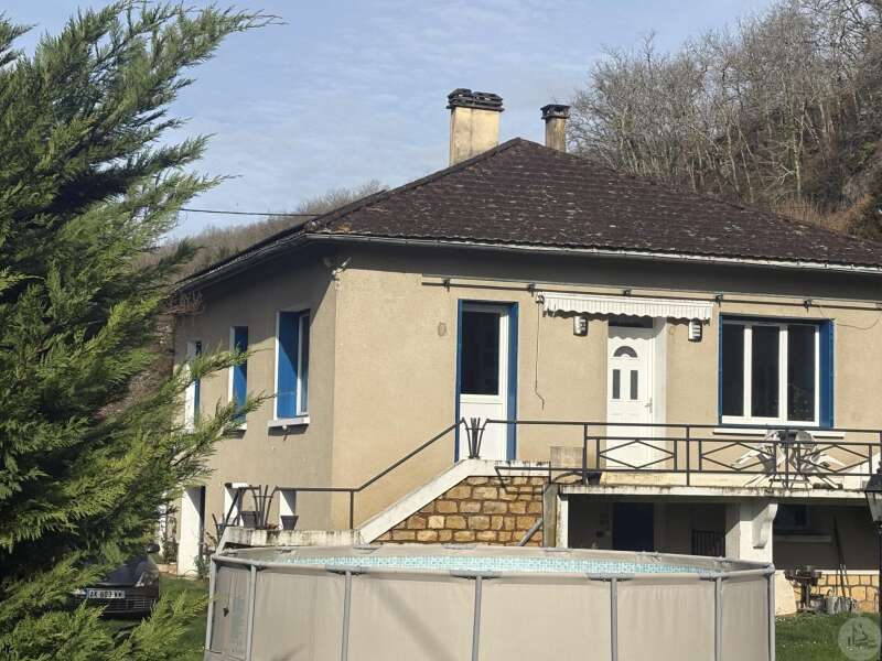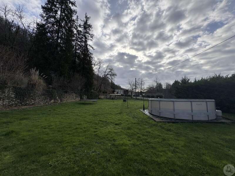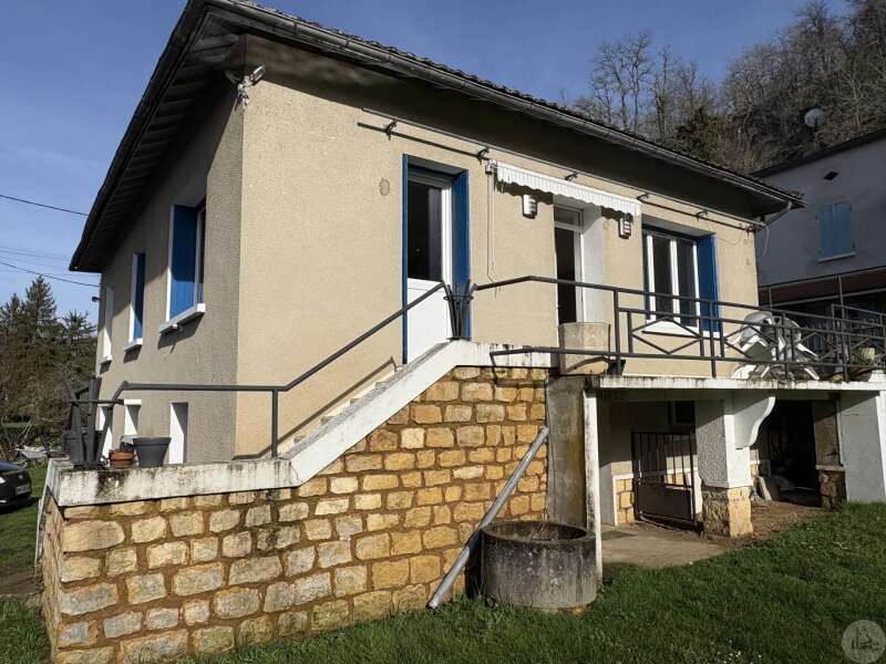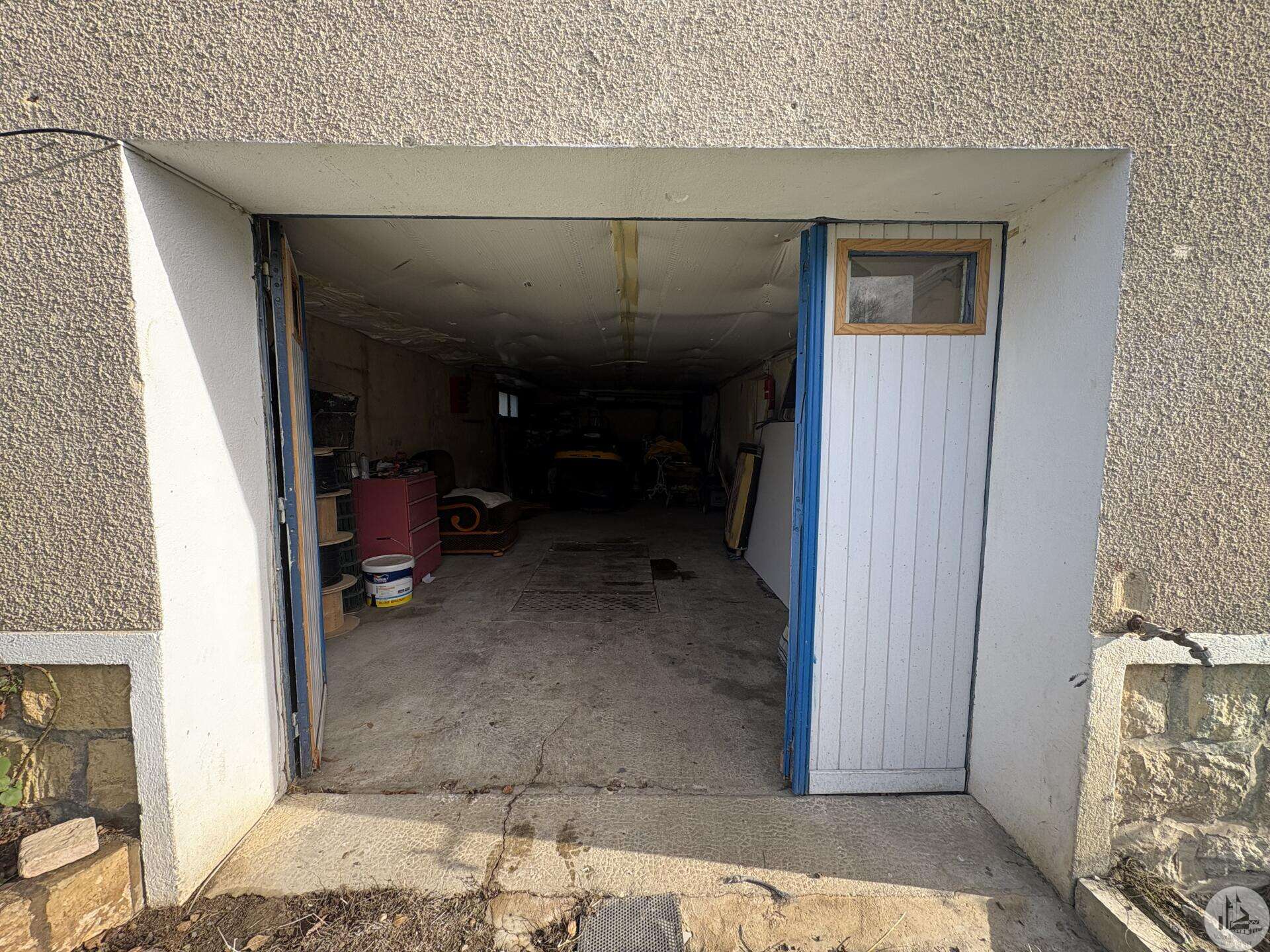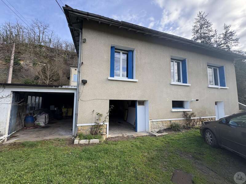House with a basement, built in 1959 on a 1375 m² plot. The living area on the first floor, approximately 83 m², comprises: A main living/dining room with an open-plan fitted kitchen, two bedrooms, a shower room with double vanity, and a separate toilet. The basement, of the same size with access from both inside and outside, comprises: A double garage, a laundry area, and a storage room. Two outbuildings: A detached garage and a workshop. Outside, there is a terrace on each level with a courtyard and enclosed garden. The windows and doors are double-glazed PVC. The heating system is mains gas with a recently installed boiler. The wastewater treatment system is an individual septic tank. Solar panels.