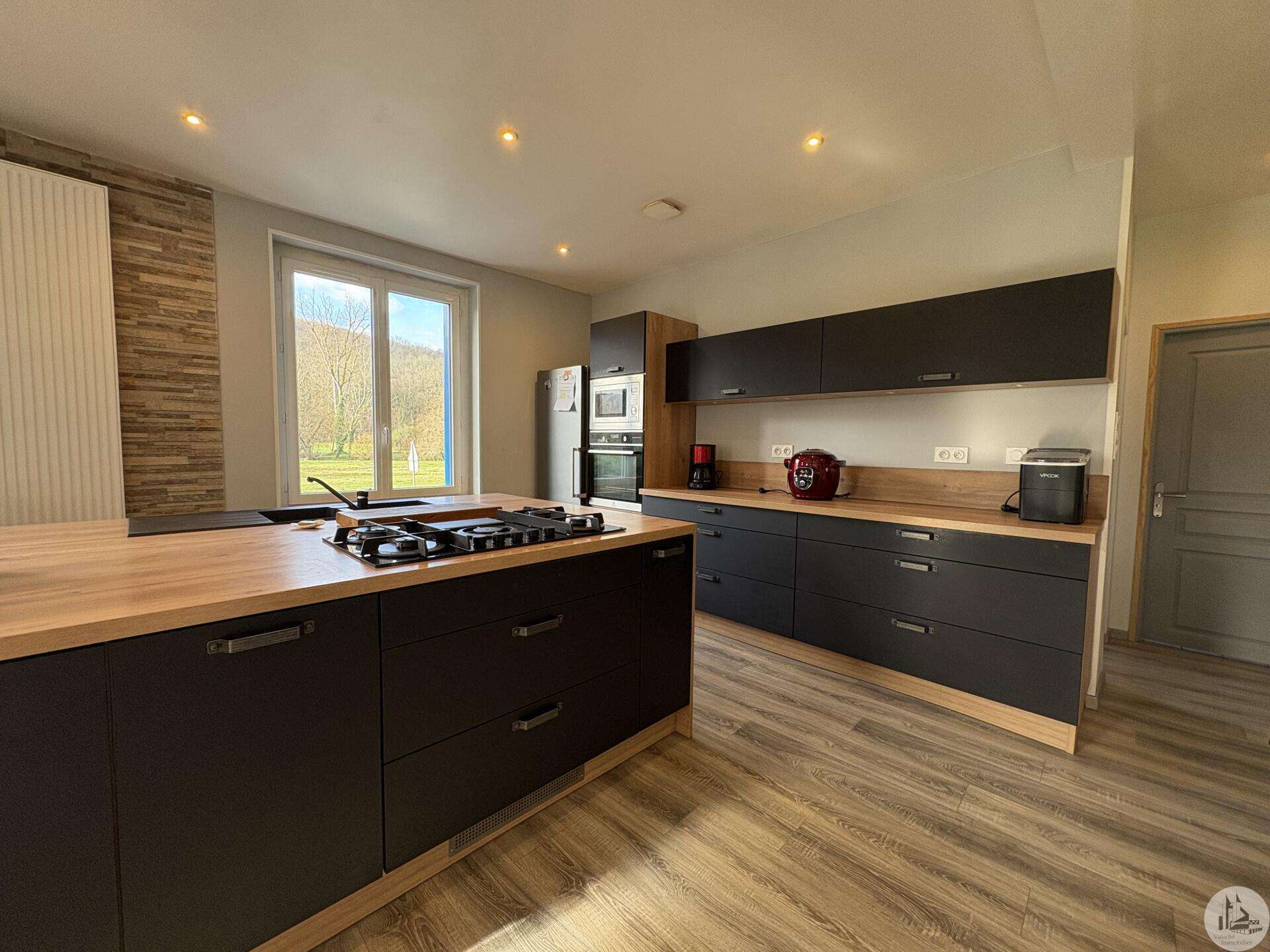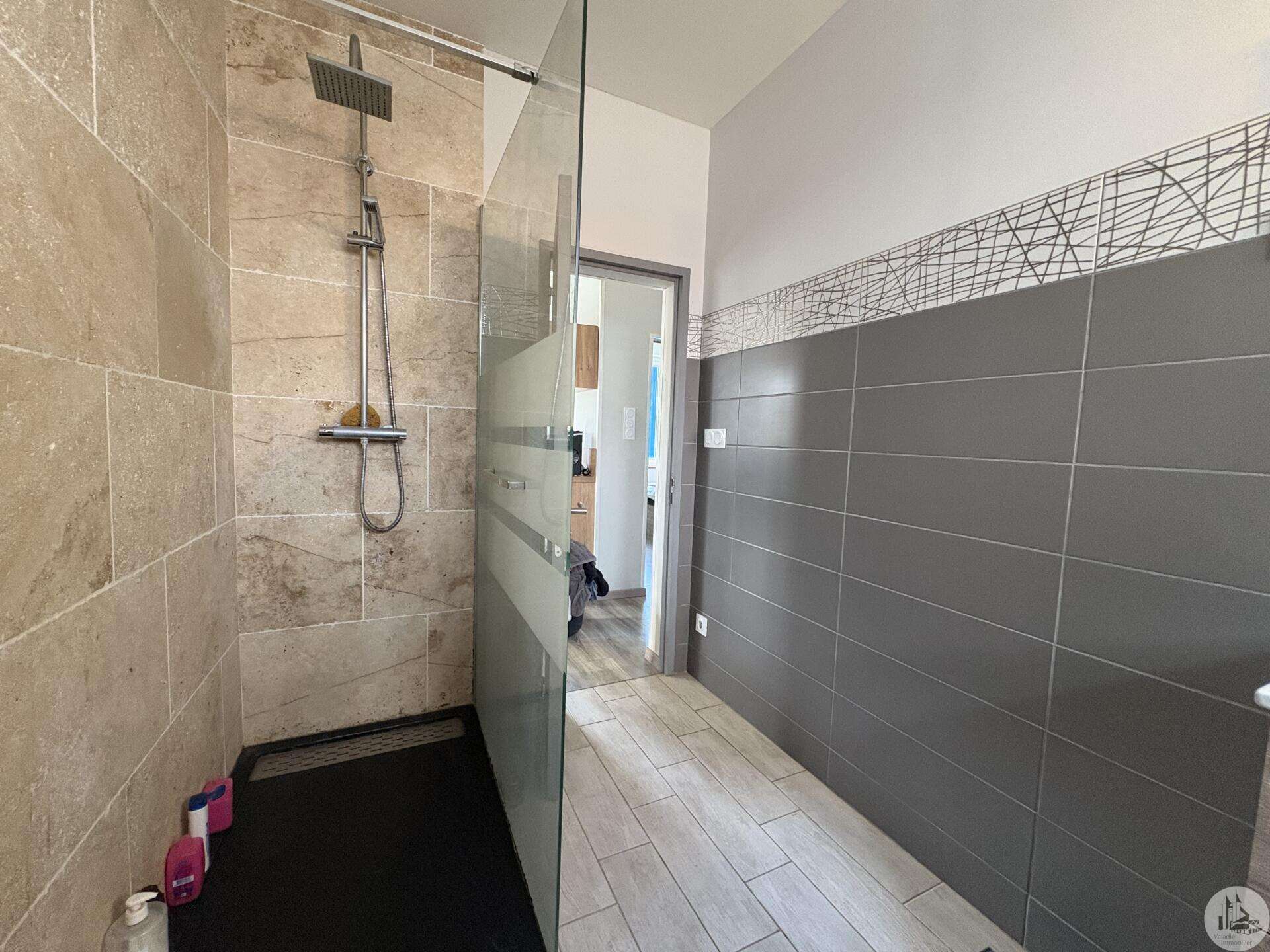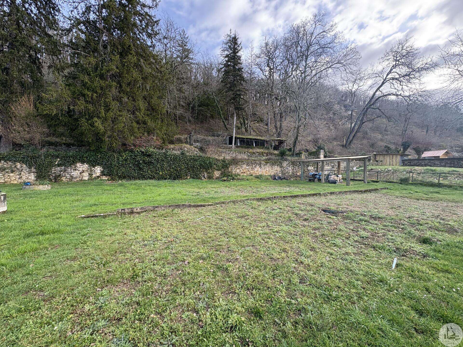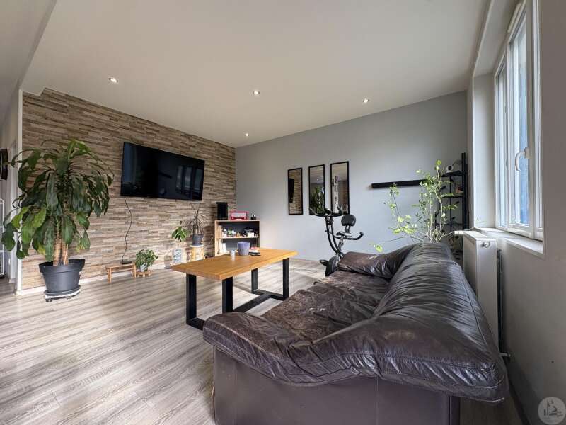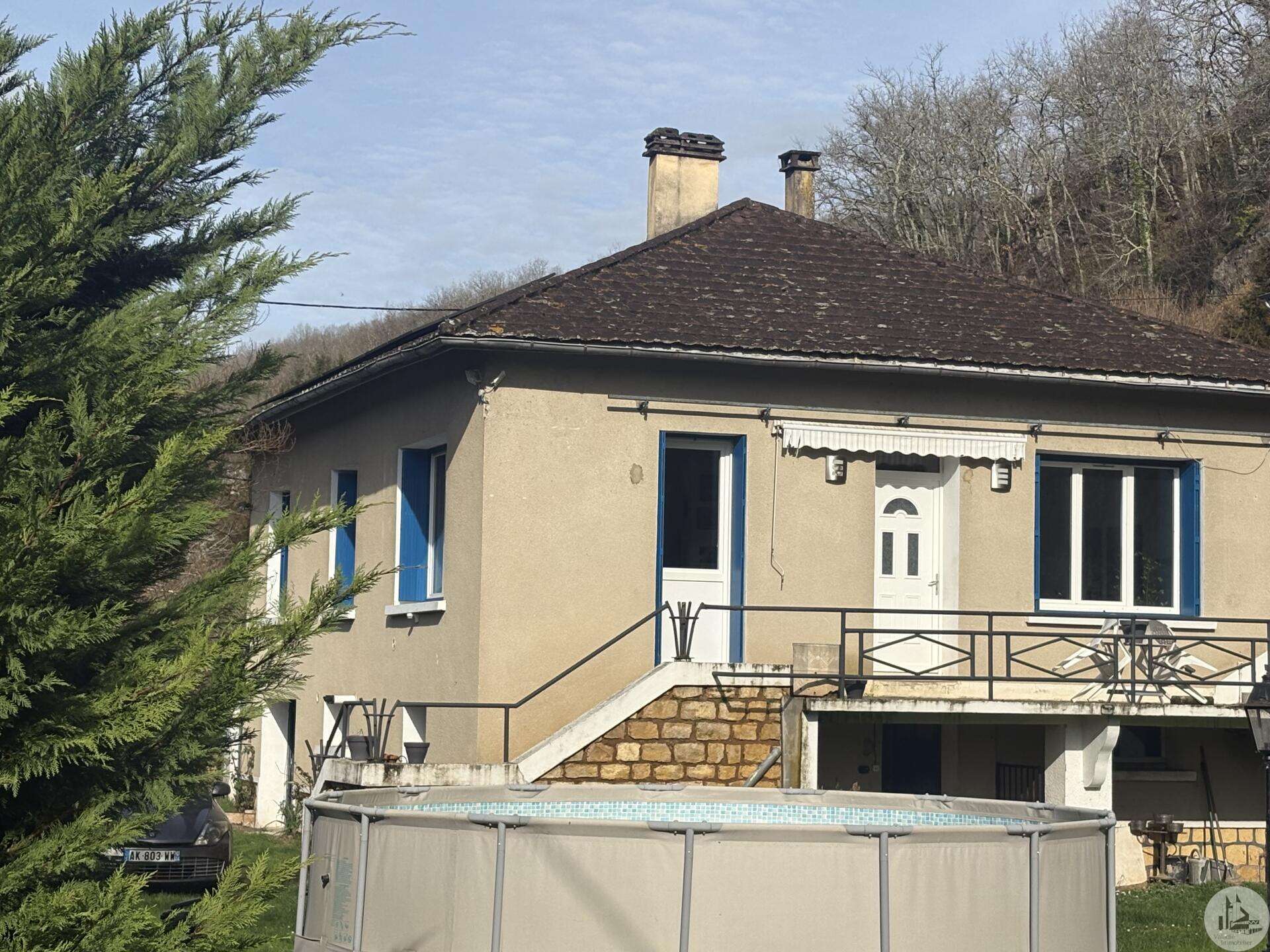 House with a basement, built in 1959 on a 1375 m² plot. The living area on the first floor, approximately 83 m², comprises: A main living/dining room with an open-plan fitted kitchen, two bedrooms, a shower room with double vanity, and a separate toilet. The basement, of the same size with access from both inside and outside, comprises: A double garage, a laundry area, and a storage room. Two outbuildings: A detached garage and a workshop. Outside, there is a terrace on each level with a courtyard and enclosed garden. The windows and doors are double-glazed PVC. The heating system is mains gas with a recently installed boiler. The wastewater treatment system is an individual septic tank. Solar panels.