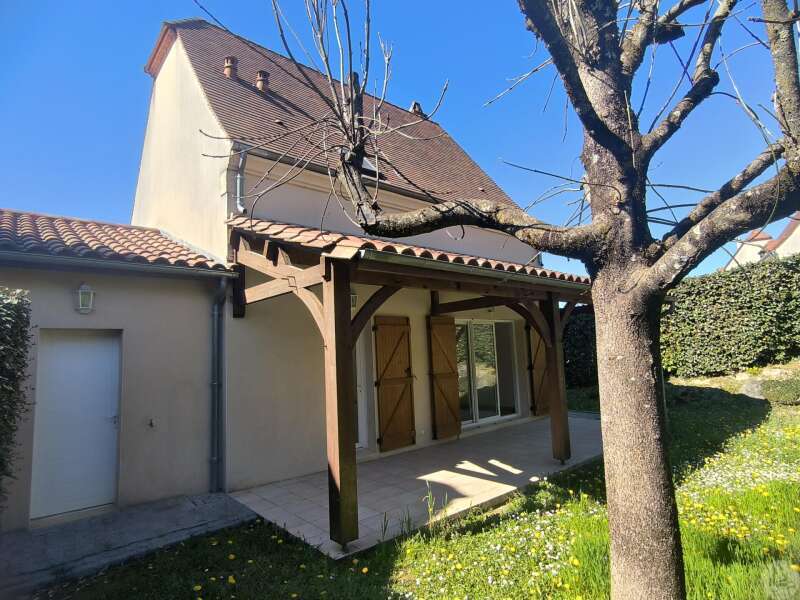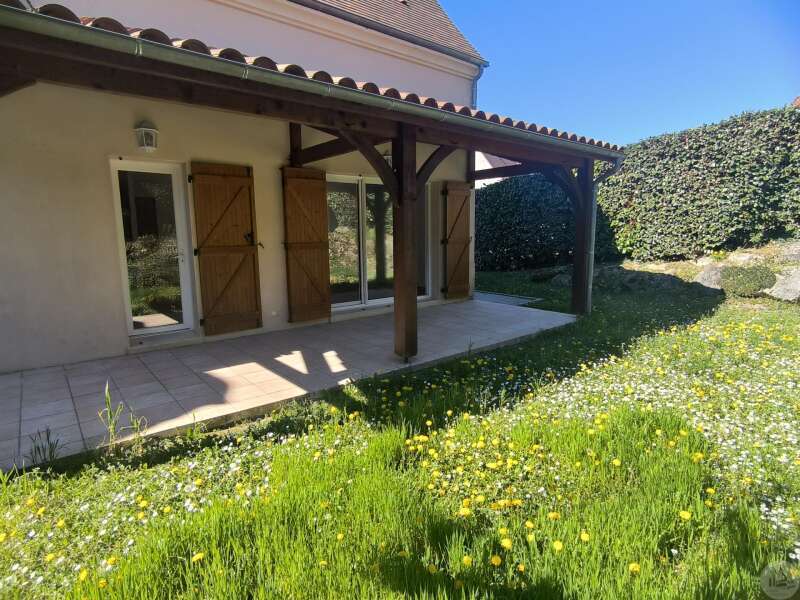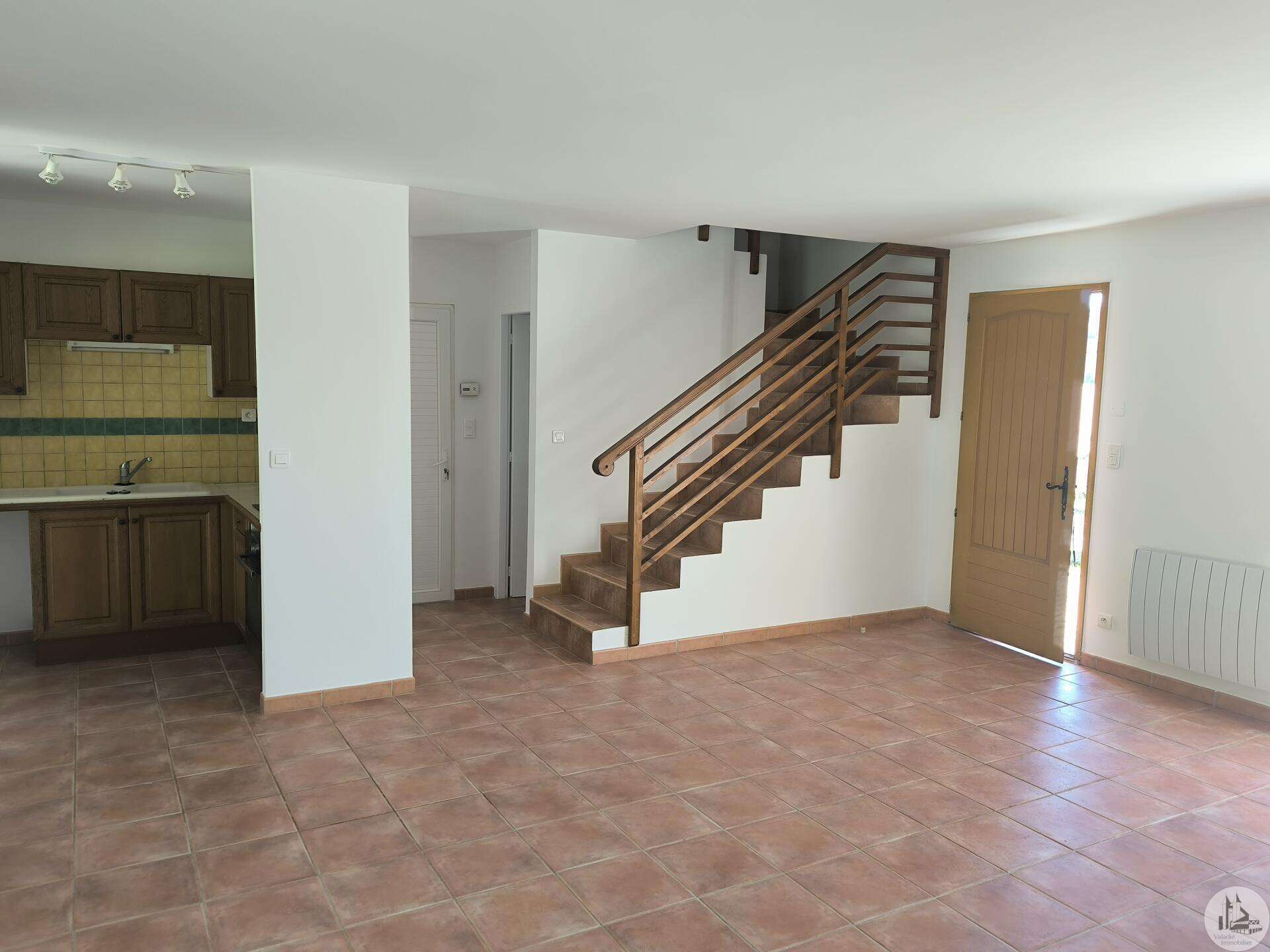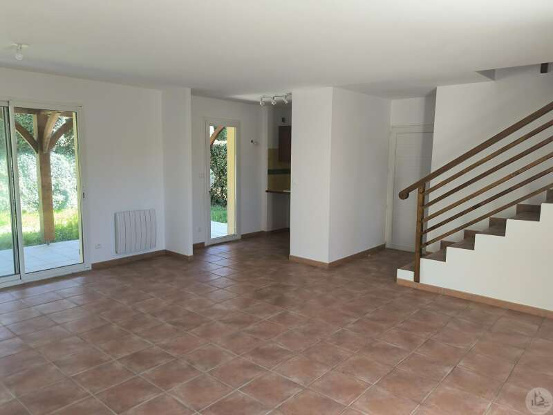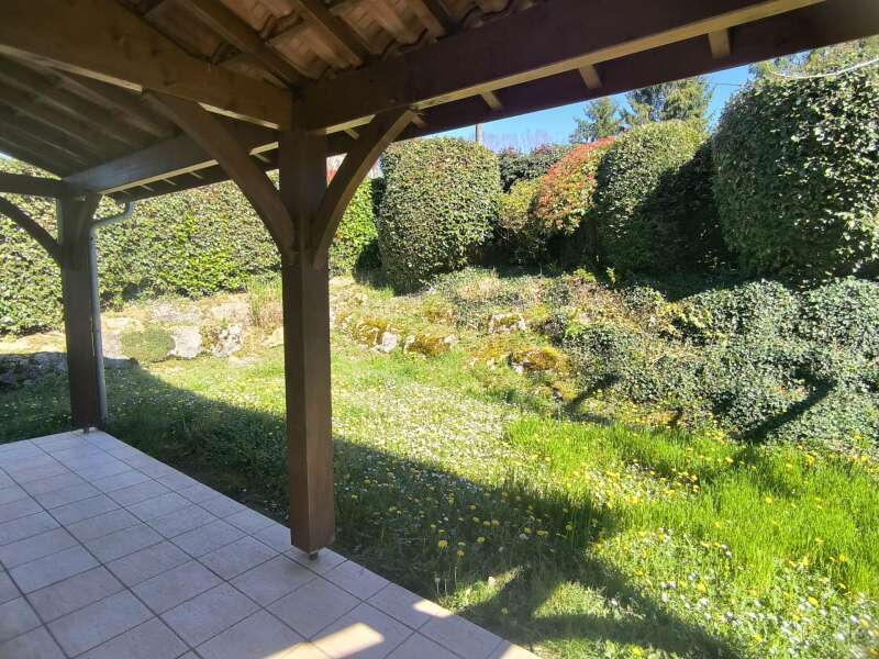 House comprising, on the garden level, a living room of approximately 43 m² with an open fireplace and kitchen area, a toilet, and a 19.18 m² garage (which could be converted into a ground-floor bedroom with a shower room). Upstairs, a landing leads to two bedrooms of 12.16 m² and 14.55 m², a toilet, and a bathroom of approximately 5 m². Covered terrace and private garden. Electric heating - Mains drainage - Double-glazed windows