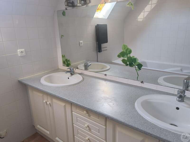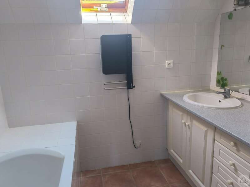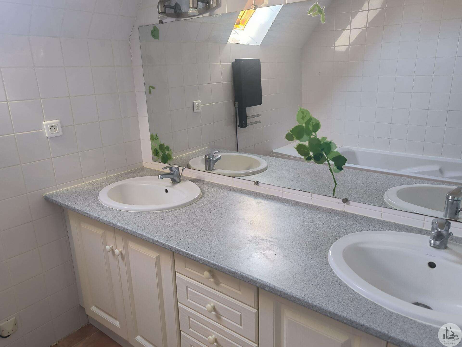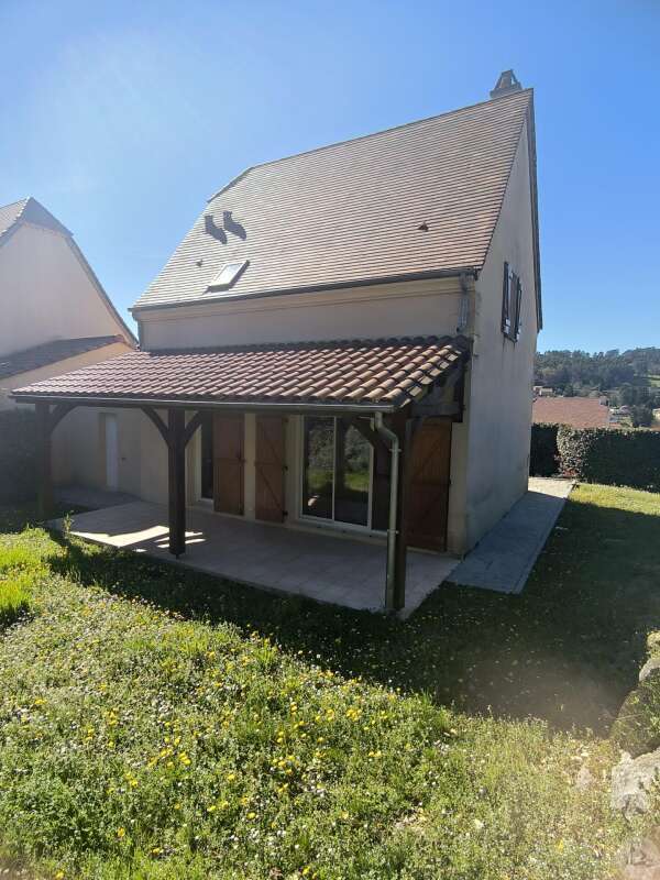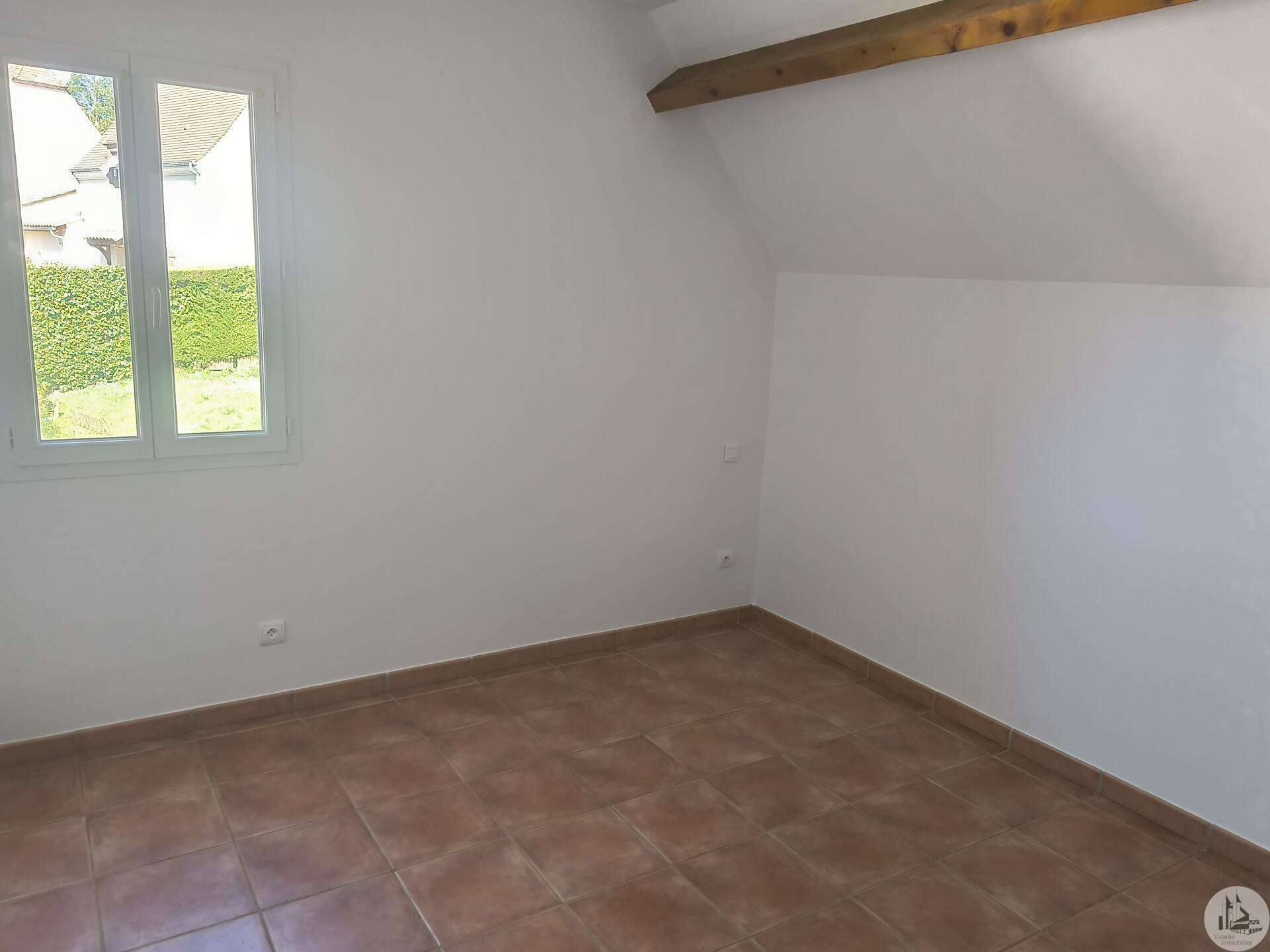 House comprising, on the garden level, a living room of approximately 43 m² with an open fireplace and kitchen area, a toilet, and a 19.18 m² garage (which could be converted into a ground-floor bedroom with a shower room). Upstairs, a landing leads to two bedrooms of 12.16 m² and 14.55 m², a toilet, and a bathroom of approximately 5 m². Covered terrace and private garden. Electric heating - Mains drainage - Double-glazed windows