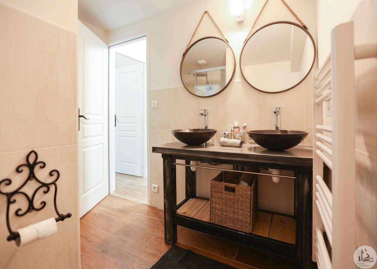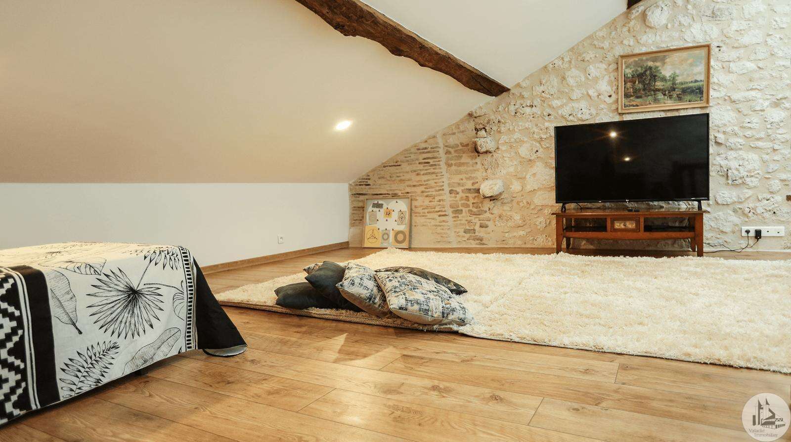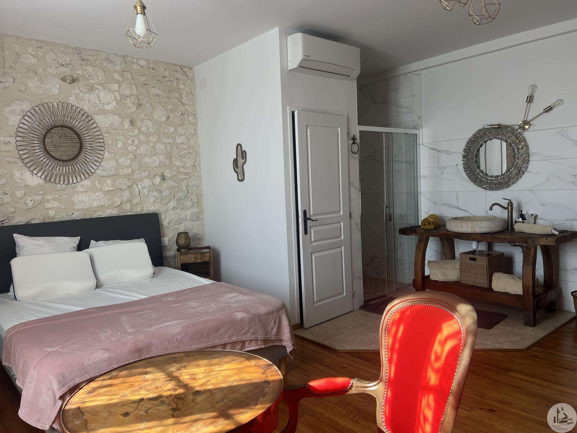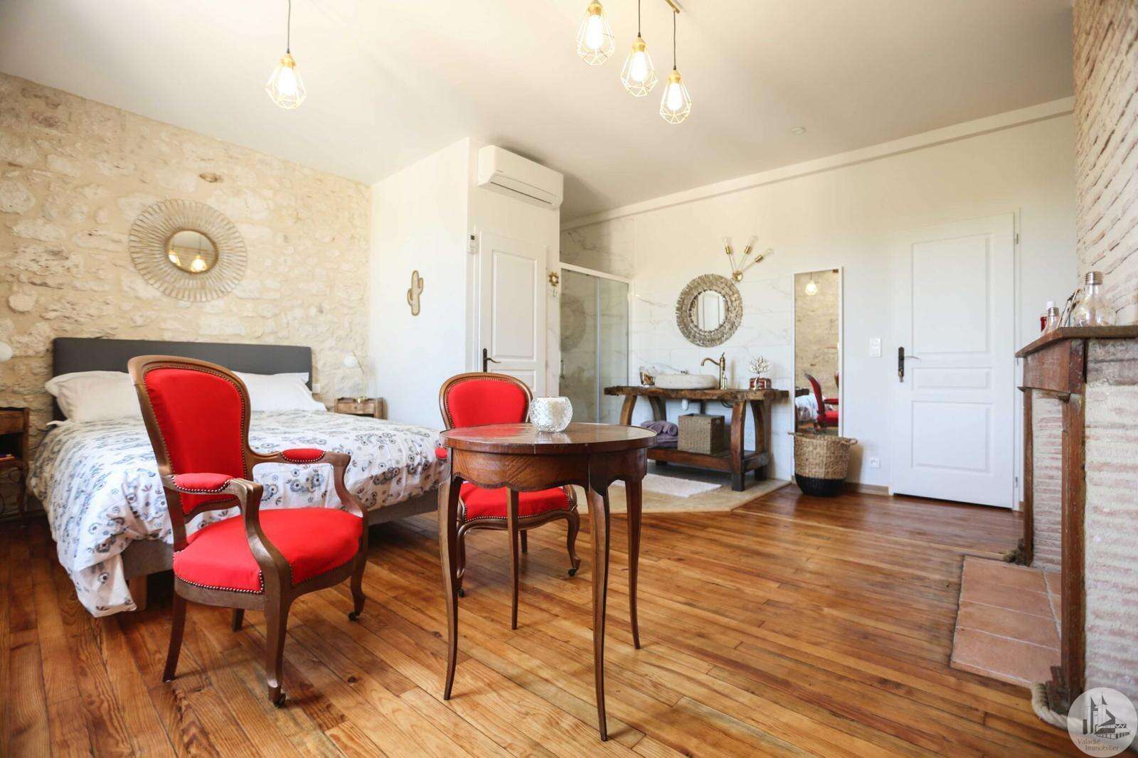 Issigeac, Dordogne – Fully Renovated | Private Courtyard boasting a Wellness Area Located in the heart of the highly sought-after medieval village of Issigeac, this beautifully renovated character home (2019) offers the perfect balance between historic charm and modern comfort. Just 20 minutes from Bergerac International Airport . This is an ideal lock-up-and-leave home, full-time residence, or income-generating rental property. Key Features 150 m² (1,615 sq ft) of living space 70 m² of additional spaces (hammam, spa, garage, cellar, terrace) 75 m² private landscaped courtyard Energy rating: B (excellent efficiency) Heat pump system with full heating & air conditioning throughout Private well for garden use Annual property tax: €702 Shops, restaurants, cafés and weekly markets are all within walking distance. Layout Overview Ground Floor A bright 37.5 m² open-plan living and dining area with wood-burning stove and fully equipped kitchen — perfect for entertaining or relaxed family living. A major asset: a 23 m² fully fitted space with shower room and WC, pre-plumbed for a kitchenette. With its own independent entrance onto the medieval street, this area can function as an eventual Self-contained studio apartment or Home office or creative workspace First Floor 25 m² bedroom overlooking the courtyard with en-suite shower room 29 m² bedroom overlooking the medieval street with en-suite shower room Both feature walk-in Italian showers and private WC. Second Floor 20 m² bedroom with en-suite shower room + additional space under the eaves 15 m² relaxation area or additional bedroom + further attic space Private Wellness Area A rare feature for a village property: A 16 m² dedicated wellness space in the courtyard including: Hammam Spa Shower WC Ideal for rental or boutique guest accommodation. The property also benefits from a cellar with a stone well.