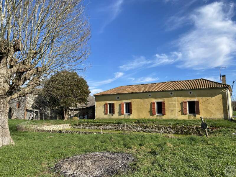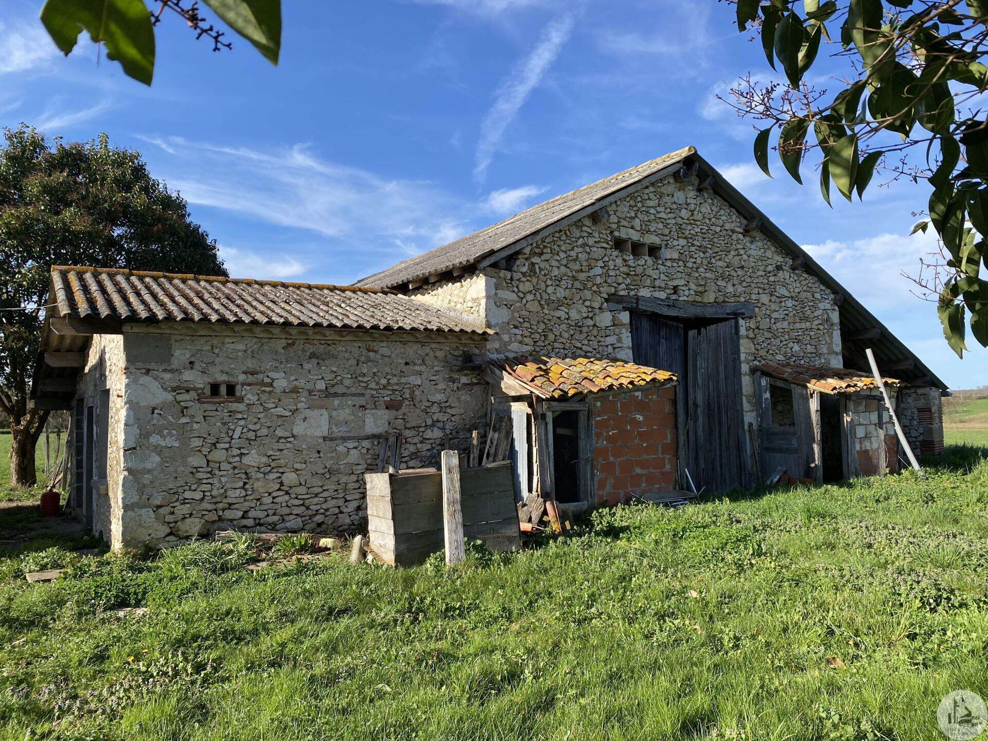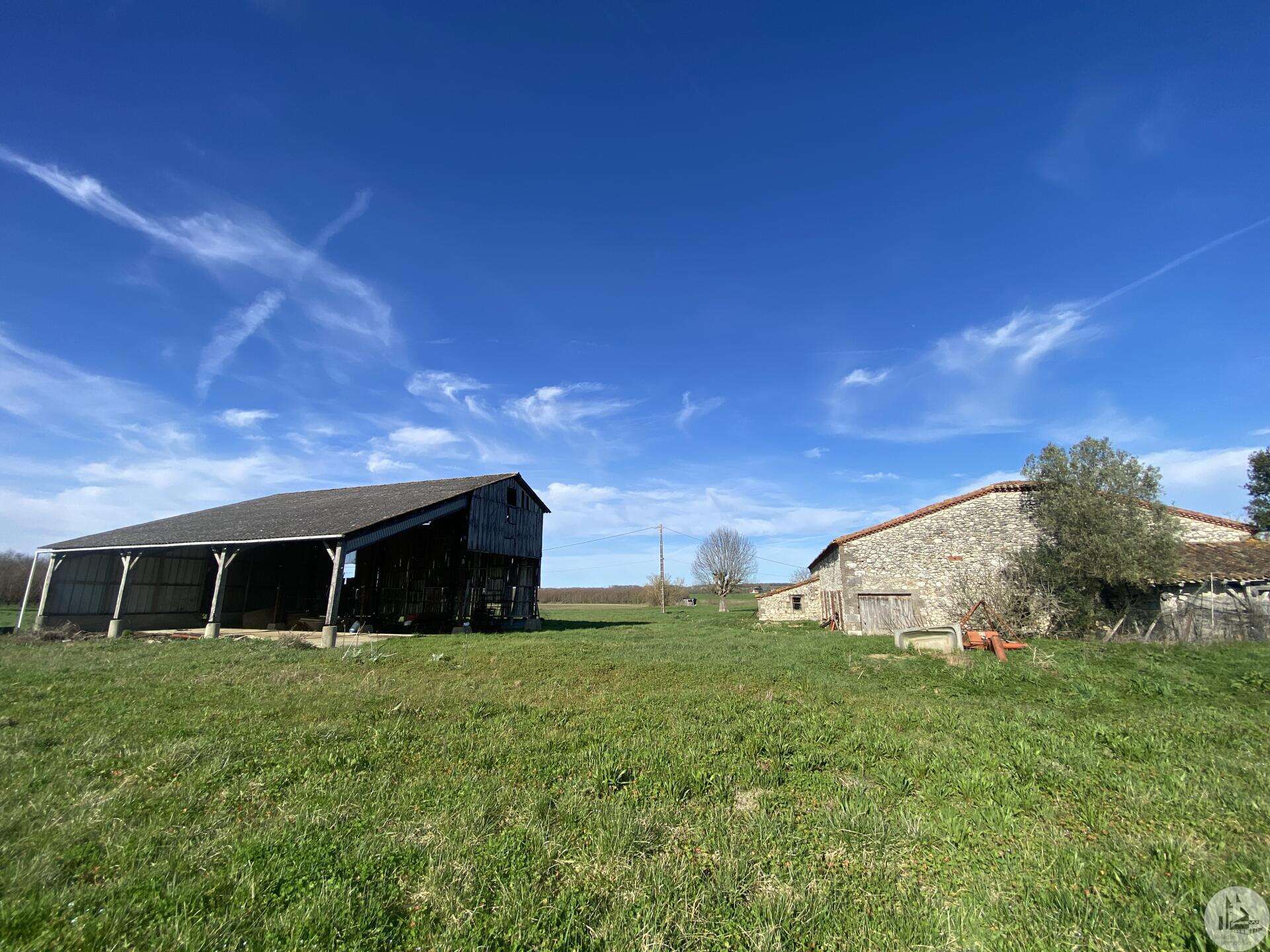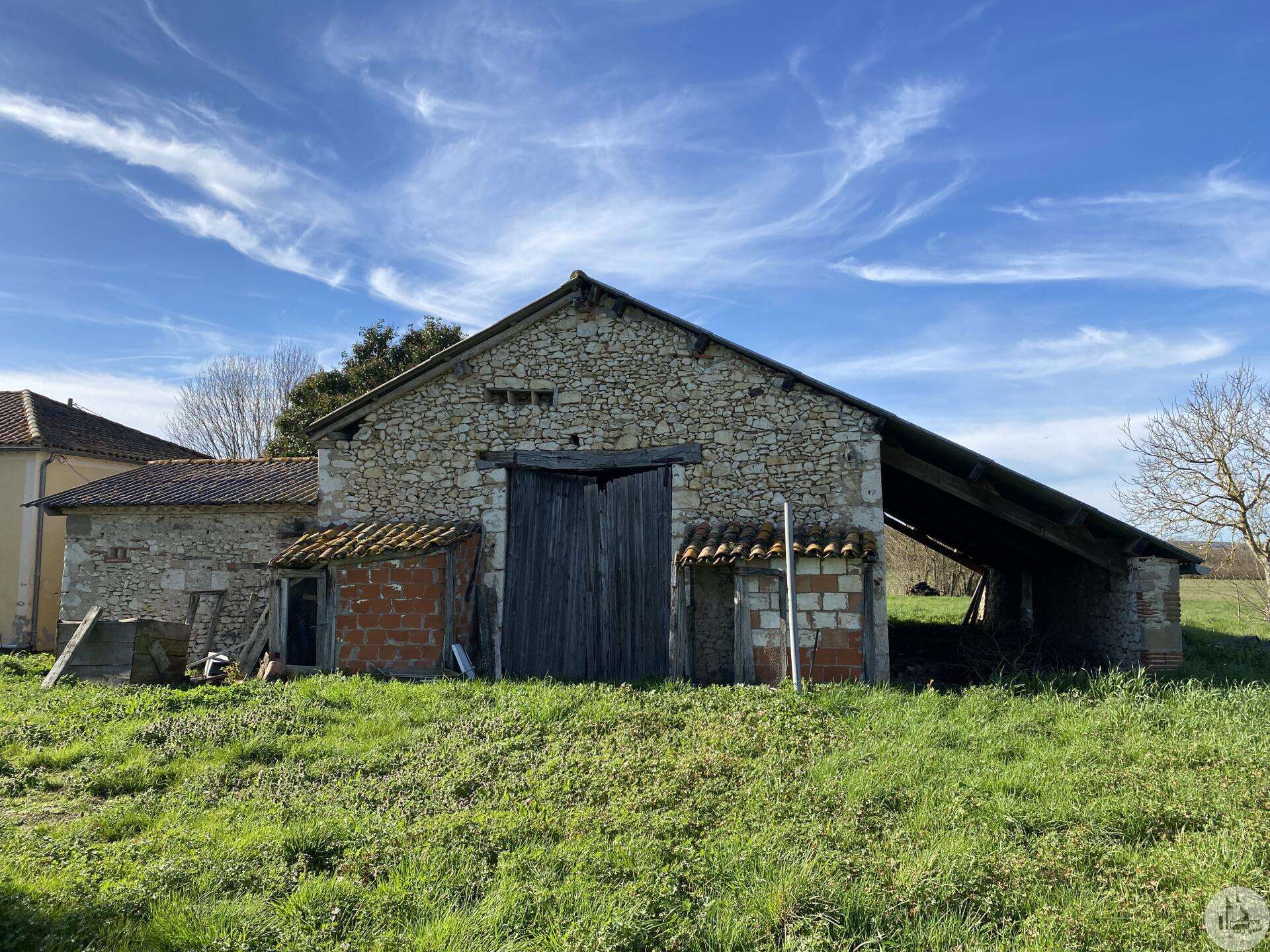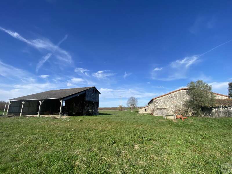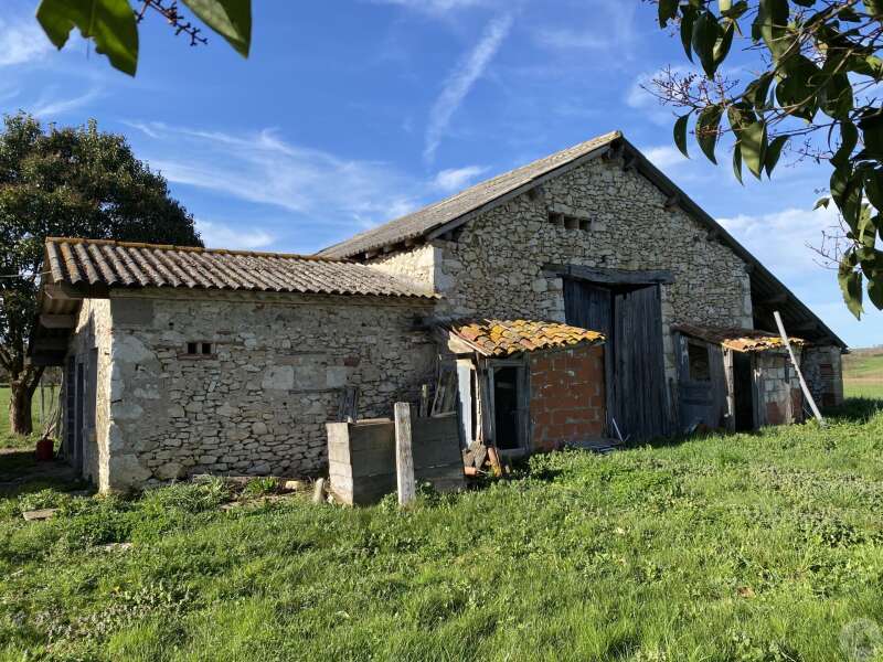 Former farmhouse comprising 4 buildings: - main house including a 36.8 m² veranda (unheated) used as a living room, an entrance hall (11.8 m²), a 26.8 m² kitchen (with fireplace insert), 3 bedrooms (16.5, 16, and 11.7 m²), a bathroom (6 m²), and a toilet. Attic accessible by stairs. Electric convectors and fireplace insert. Mostly double-glazed PVC windows (except for one bedroom and the hallway: single-glazed wooden windows, and the veranda: double-glazed aluminum windows). The house is habitable but would require modernization. - Stone barn (540 m²) with attached garage (19 m²) and carport (the roof of this barn needs repair) - Former open tobacco drying shed of approximately 93 m² (wooden cladding needs replacing) - Second stone barn (74 m²) with lean-to (48 m²) - Former stables/chicken coop. 4.3 hectares of land with a well surrounding the buildings.