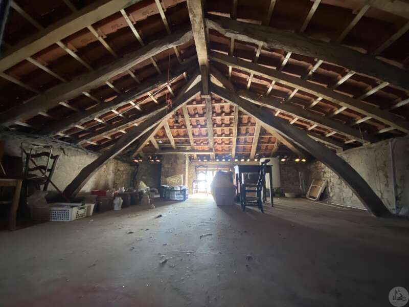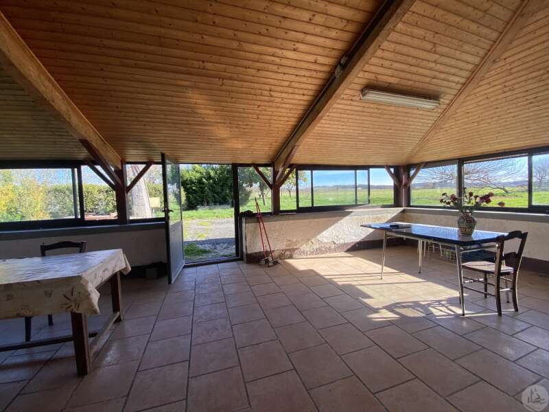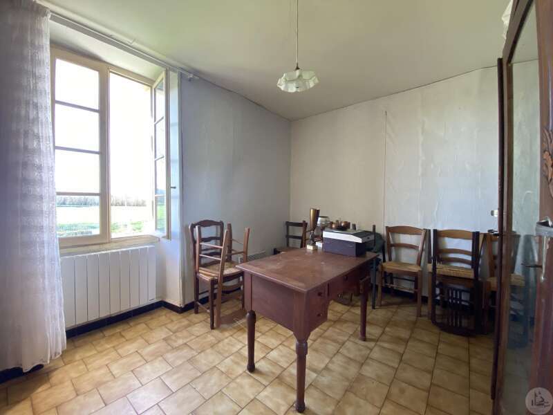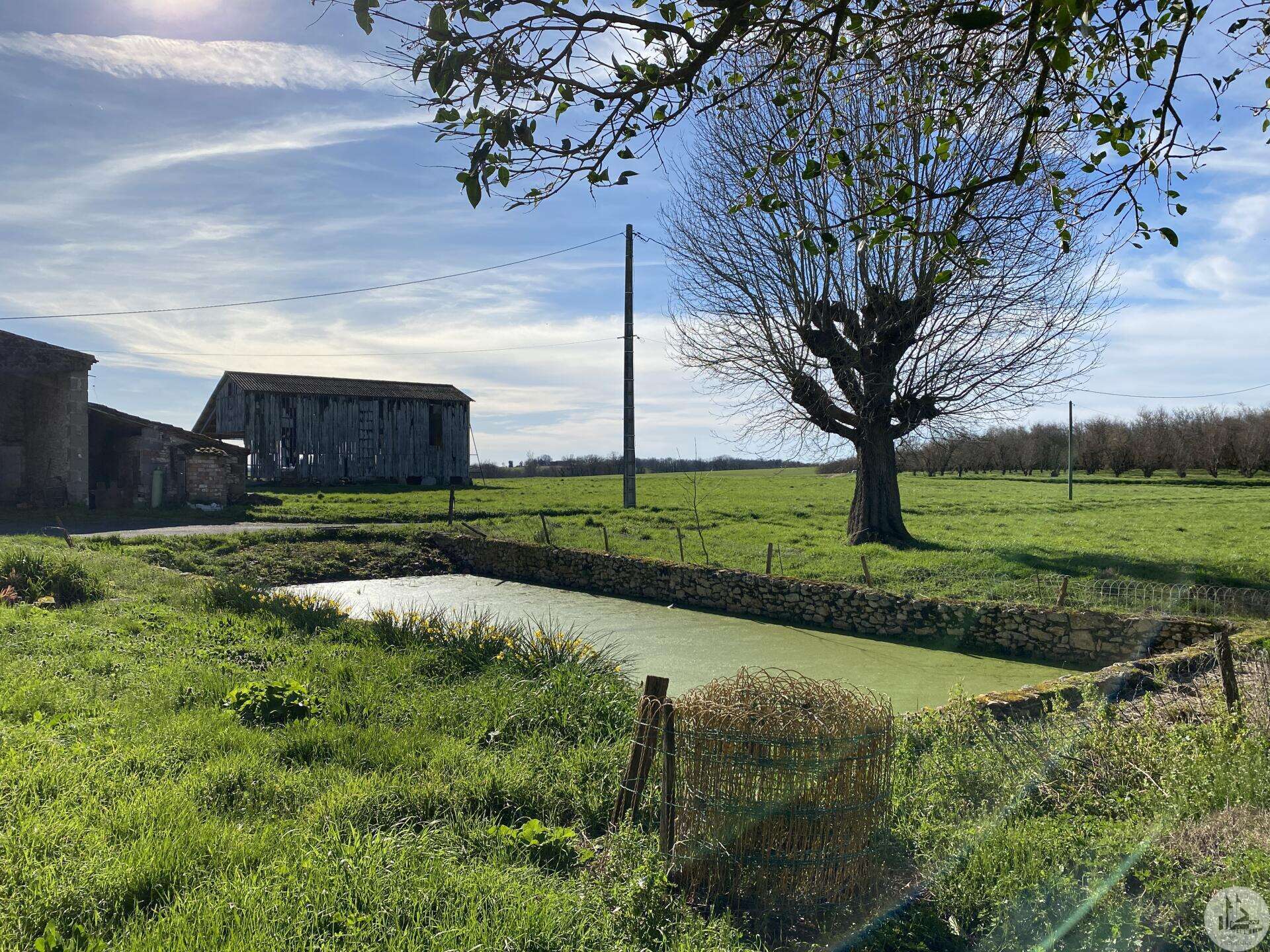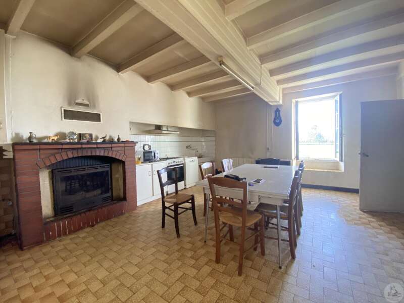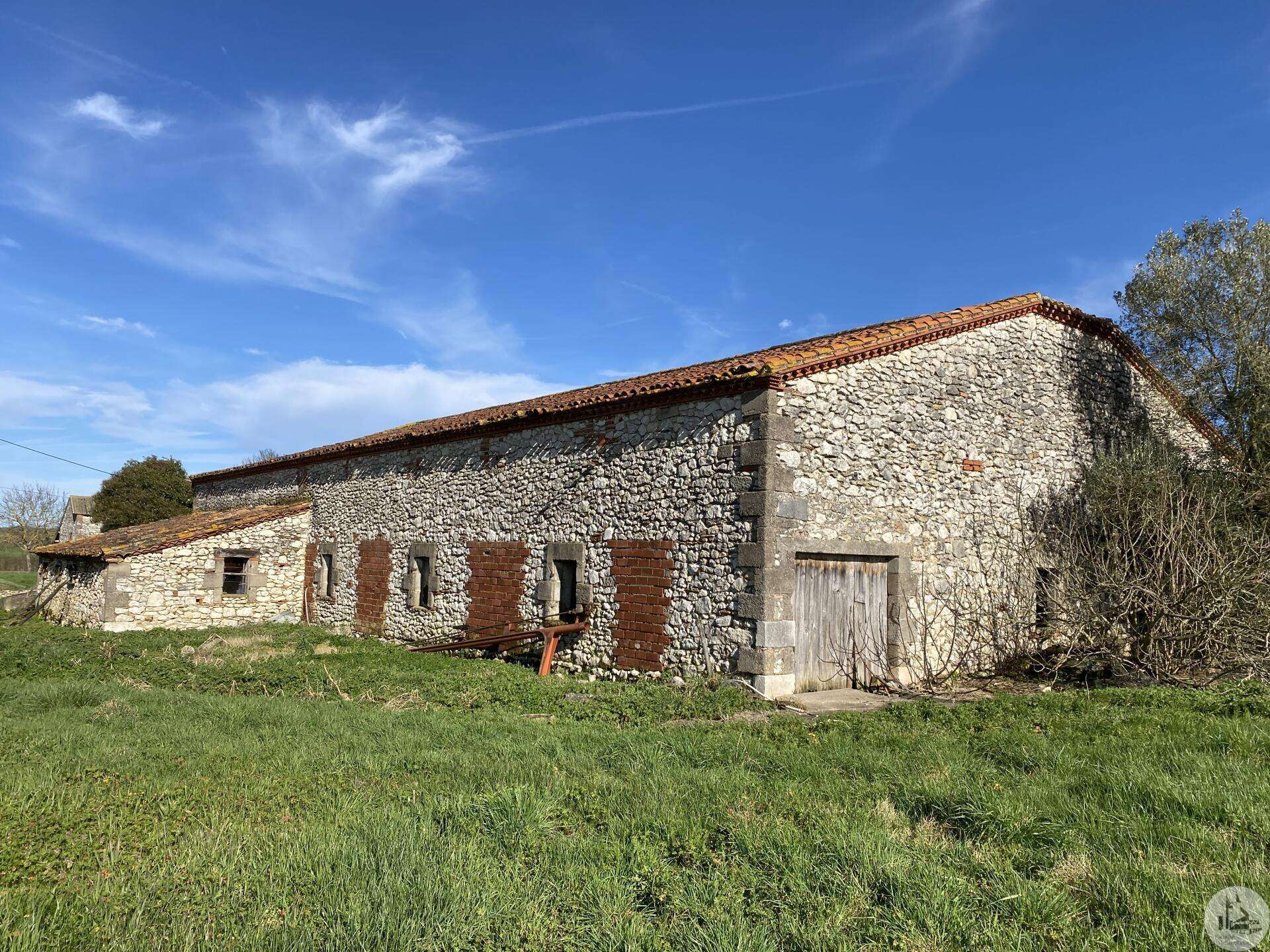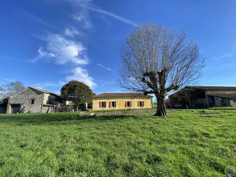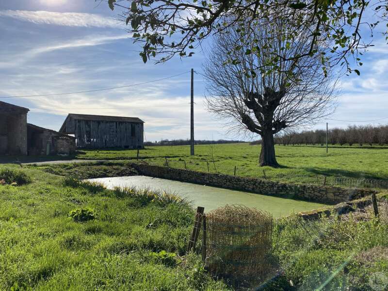 Former farmhouse comprising 4 buildings: - main house including a 36.8 m² veranda (unheated) used as a living room, an entrance hall (11.8 m²), a 26.8 m² kitchen (with fireplace insert), 3 bedrooms (16.5, 16, and 11.7 m²), a bathroom (6 m²), and a toilet. Attic accessible by stairs. Electric convectors and fireplace insert. Mostly double-glazed PVC windows (except for one bedroom and the hallway: single-glazed wooden windows, and the veranda: double-glazed aluminum windows). The house is habitable but would require modernization. - Stone barn (540 m²) with attached garage (19 m²) and carport (the roof of this barn needs repair) - Former open tobacco drying shed of approximately 93 m² (wooden cladding needs replacing) - Second stone barn (74 m²) with lean-to (48 m²) - Former stables/chicken coop. 4.3 hectares of land with a well surrounding the buildings.