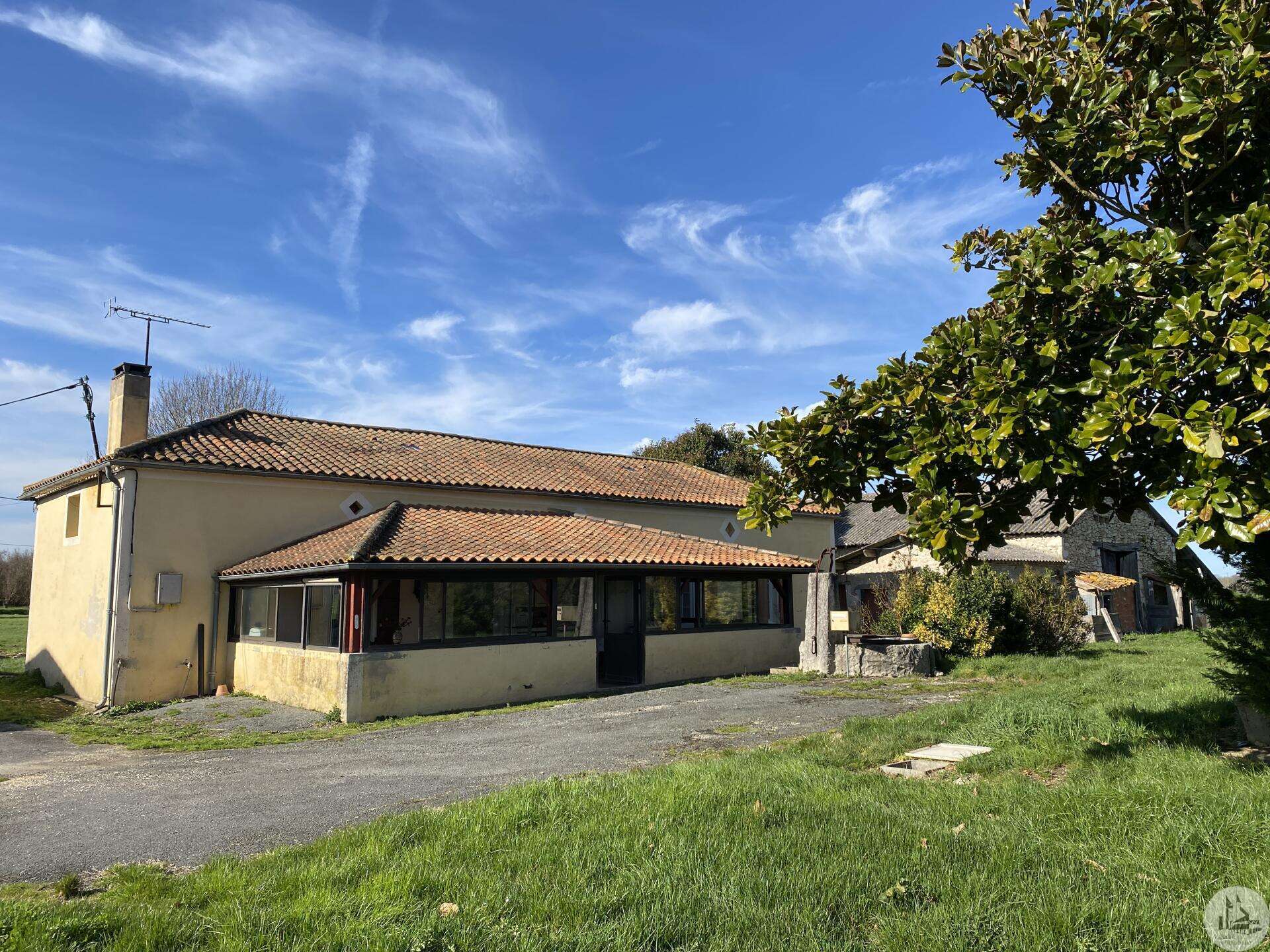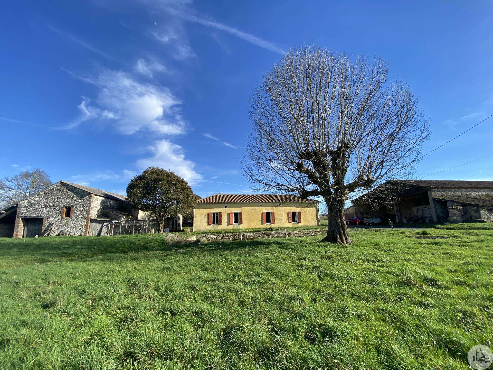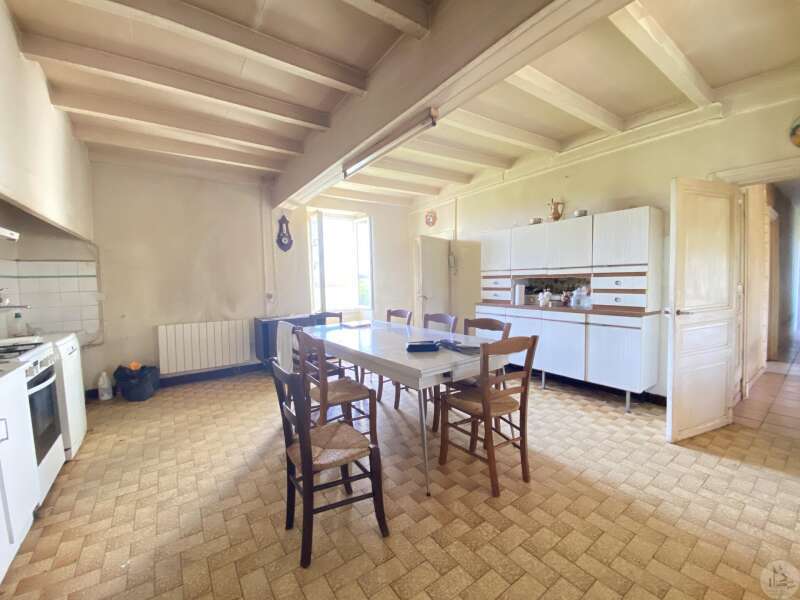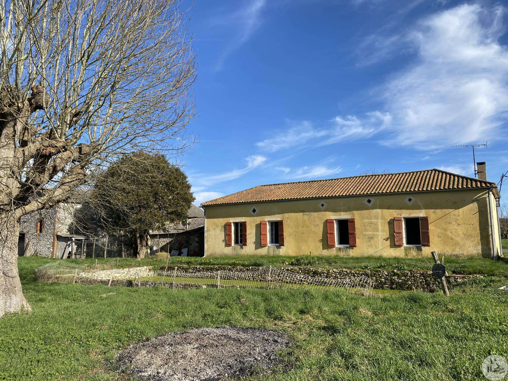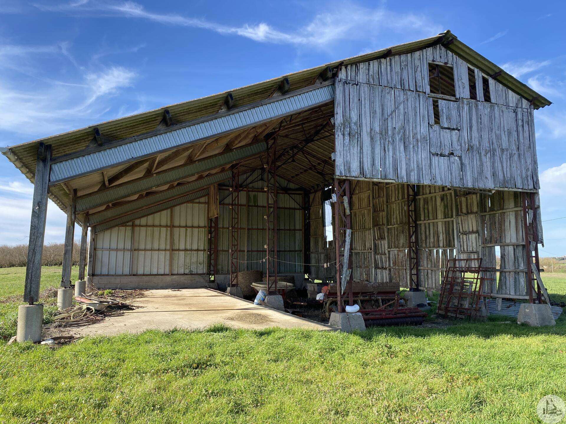 Former farmhouse comprising 4 buildings: - main house including a 36.8 m² veranda (unheated) used as a living room, an entrance hall (11.8 m²), a 26.8 m² kitchen (with fireplace insert), 3 bedrooms (16.5, 16, and 11.7 m²), a bathroom (6 m²), and a toilet. Attic accessible by stairs. Electric convectors and fireplace insert. Mostly double-glazed PVC windows (except for one bedroom and the hallway: single-glazed wooden windows, and the veranda: double-glazed aluminum windows). The house is habitable but would require modernization. - Stone barn (540 m²) with attached garage (19 m²) and carport (the roof of this barn needs repair) - Former open tobacco drying shed of approximately 93 m² (wooden cladding needs replacing) - Second stone barn (74 m²) with lean-to (48 m²) - Former stables/chicken coop. 4.3 hectares of land with a well surrounding the buildings.