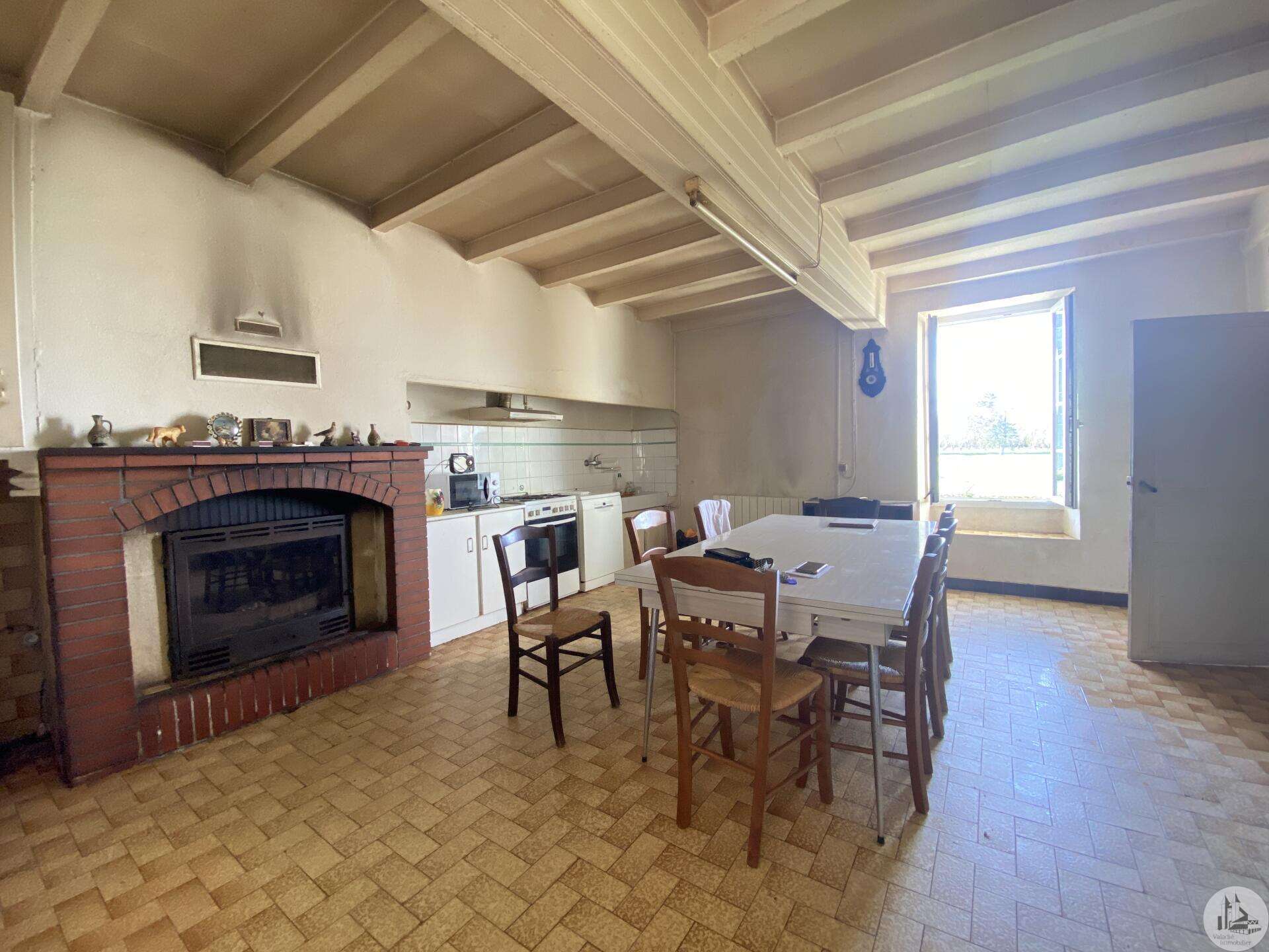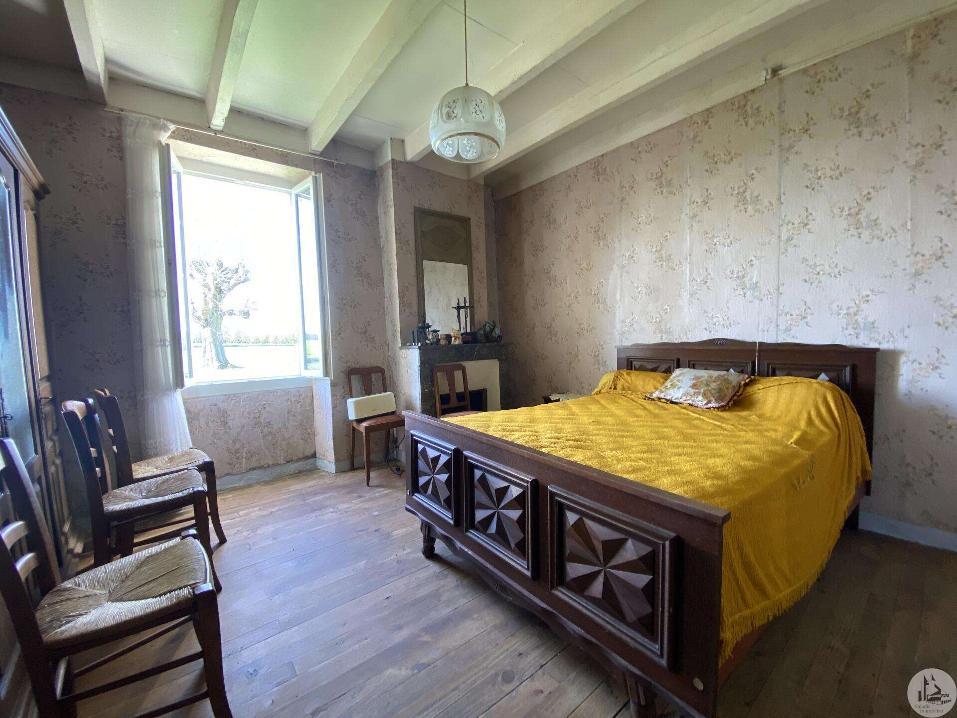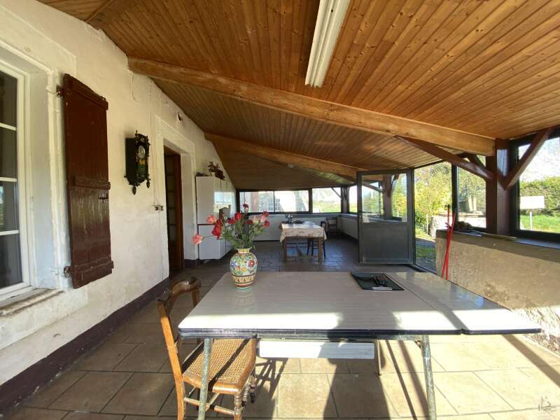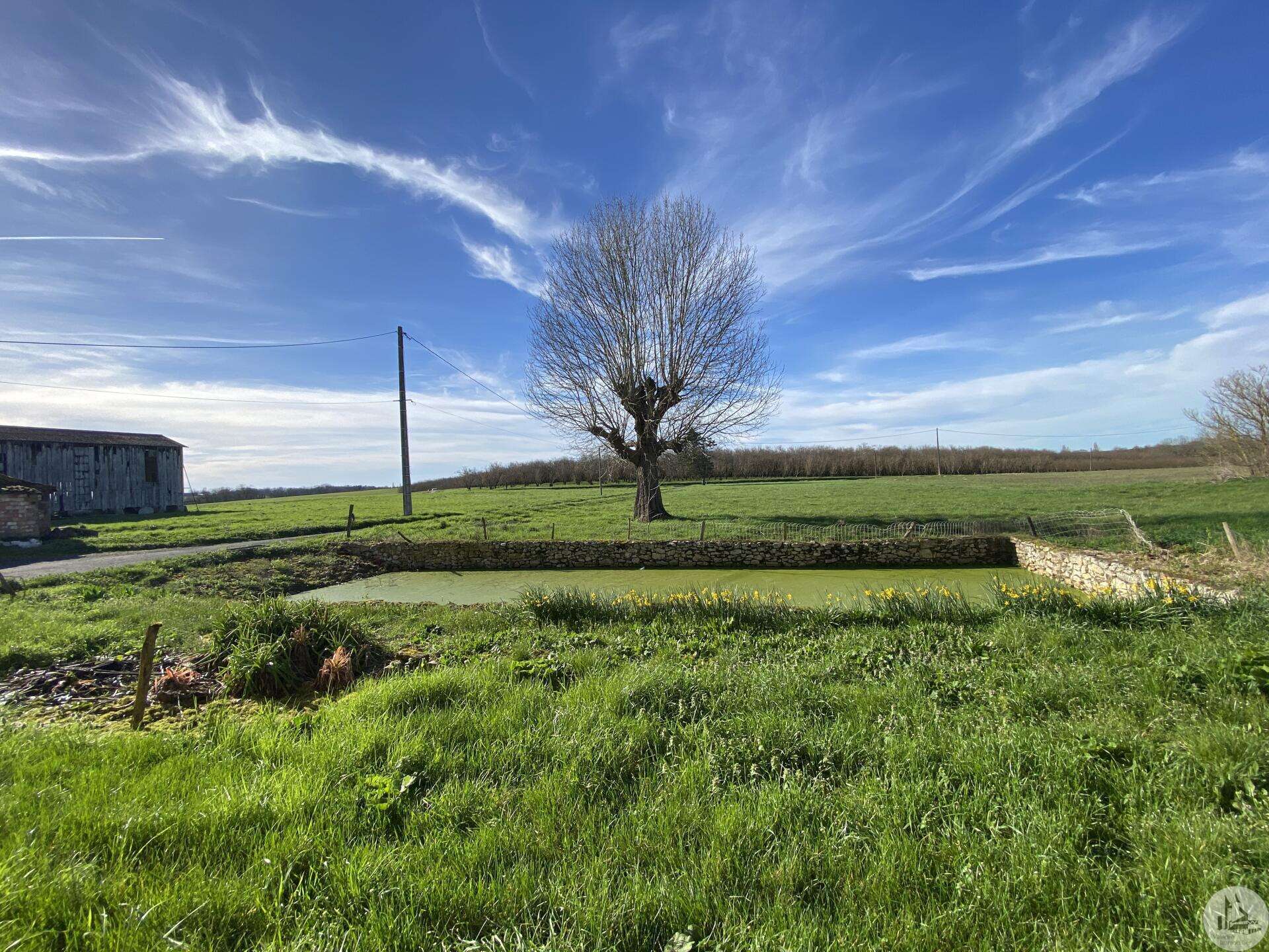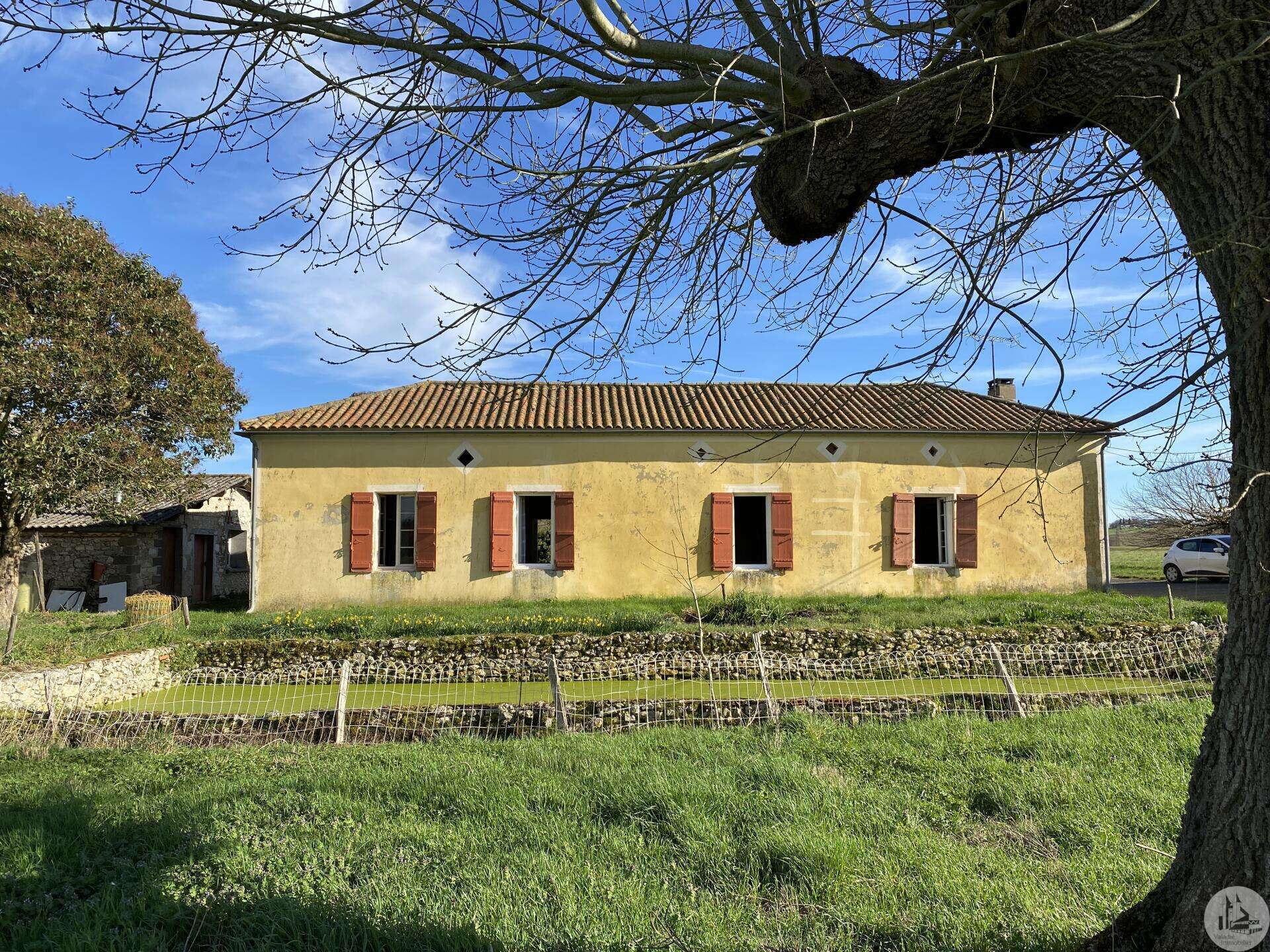 Former farmhouse comprising 4 buildings: - main house including a 36.8 m² veranda (unheated) used as a living room, an entrance hall (11.8 m²), a 26.8 m² kitchen (with fireplace insert), 3 bedrooms (16.5, 16, and 11.7 m²), a bathroom (6 m²), and a toilet. Attic accessible by stairs. Electric convectors and fireplace insert. Mostly double-glazed PVC windows (except for one bedroom and the hallway: single-glazed wooden windows, and the veranda: double-glazed aluminum windows). The house is habitable but would require modernization. - Stone barn (540 m²) with attached garage (19 m²) and carport (the roof of this barn needs repair) - Former open tobacco drying shed of approximately 93 m² (wooden cladding needs replacing) - Second stone barn (74 m²) with lean-to (48 m²) - Former stables/chicken coop. 4.3 hectares of land with a well surrounding the buildings.