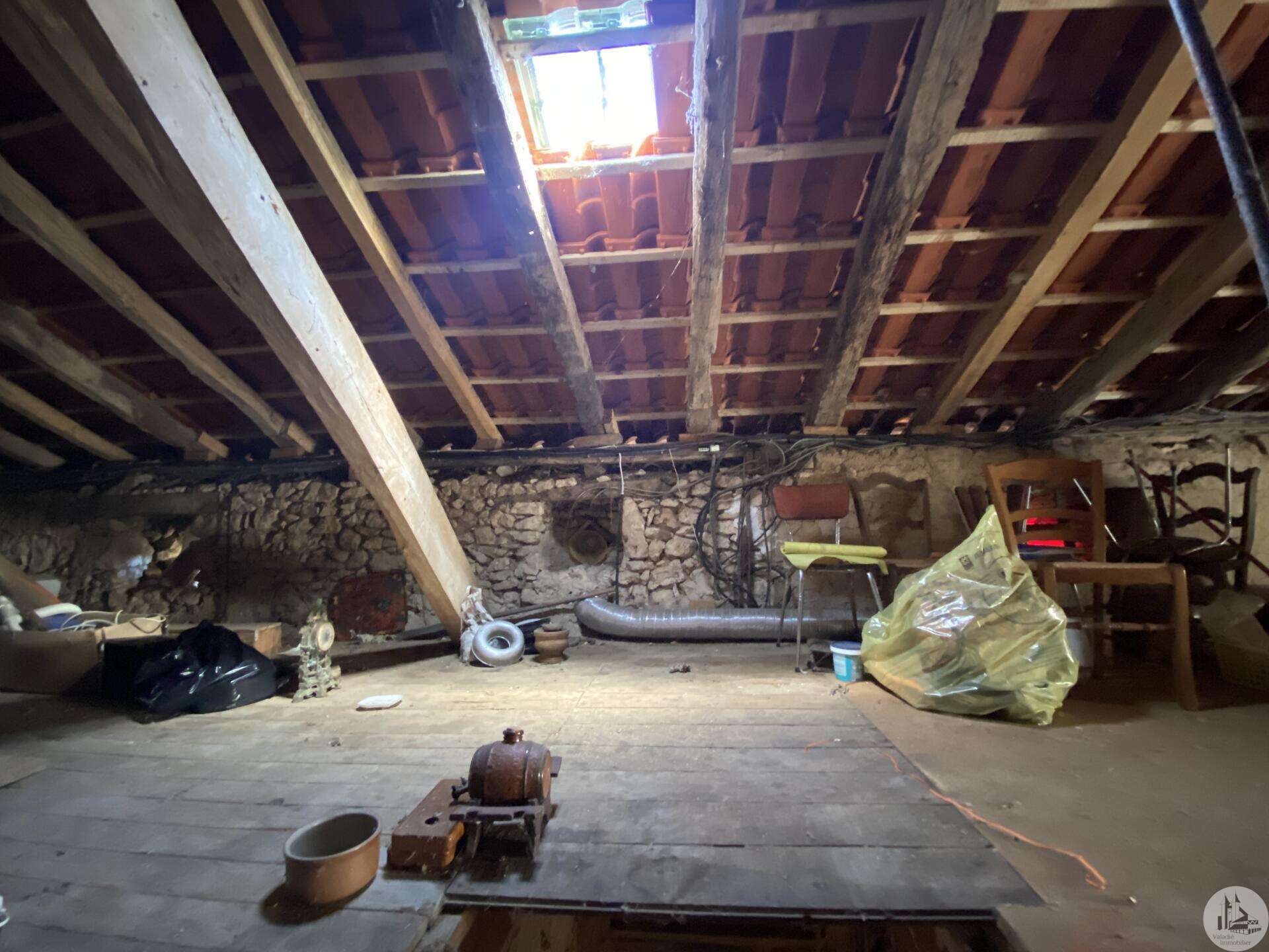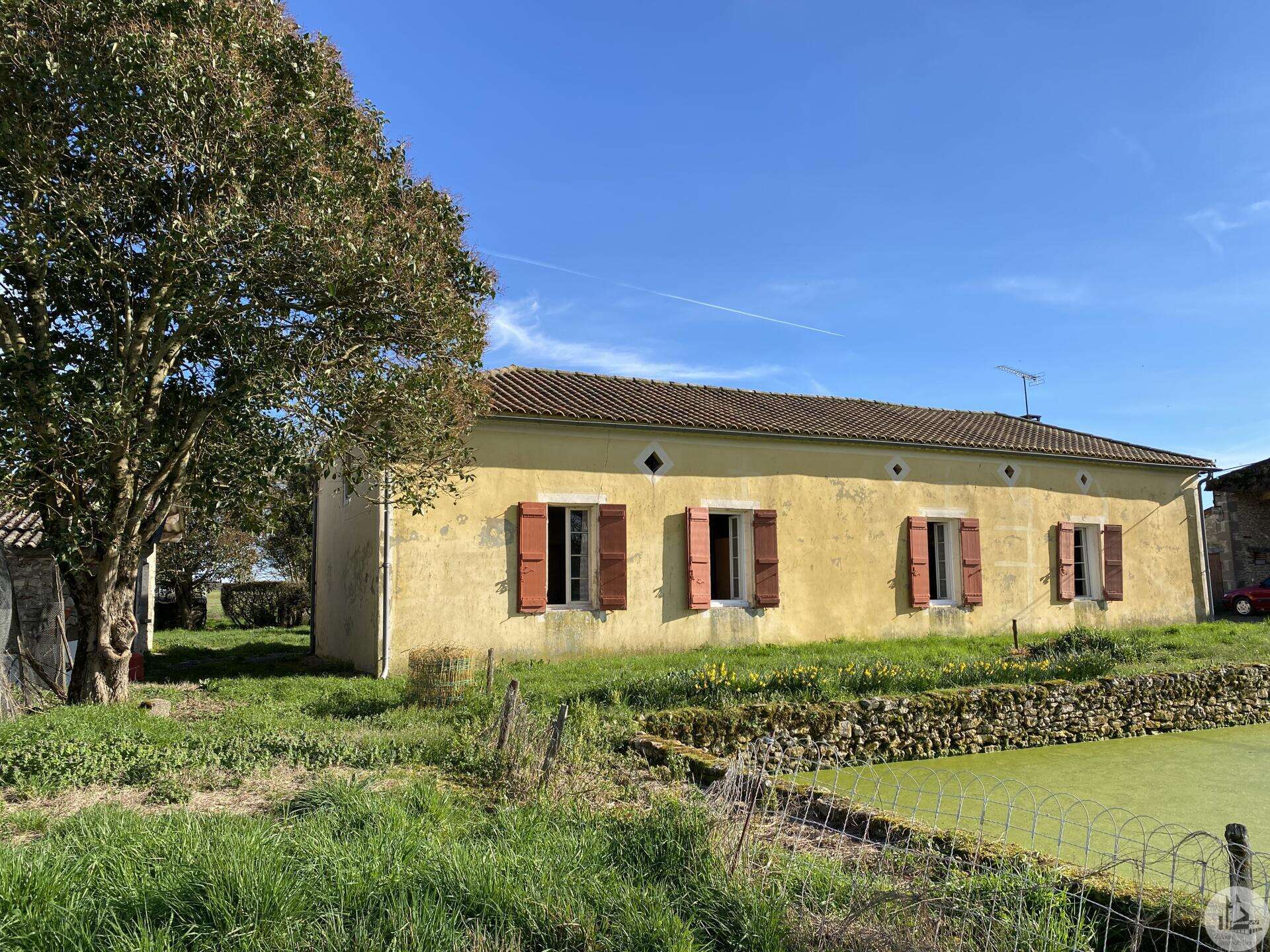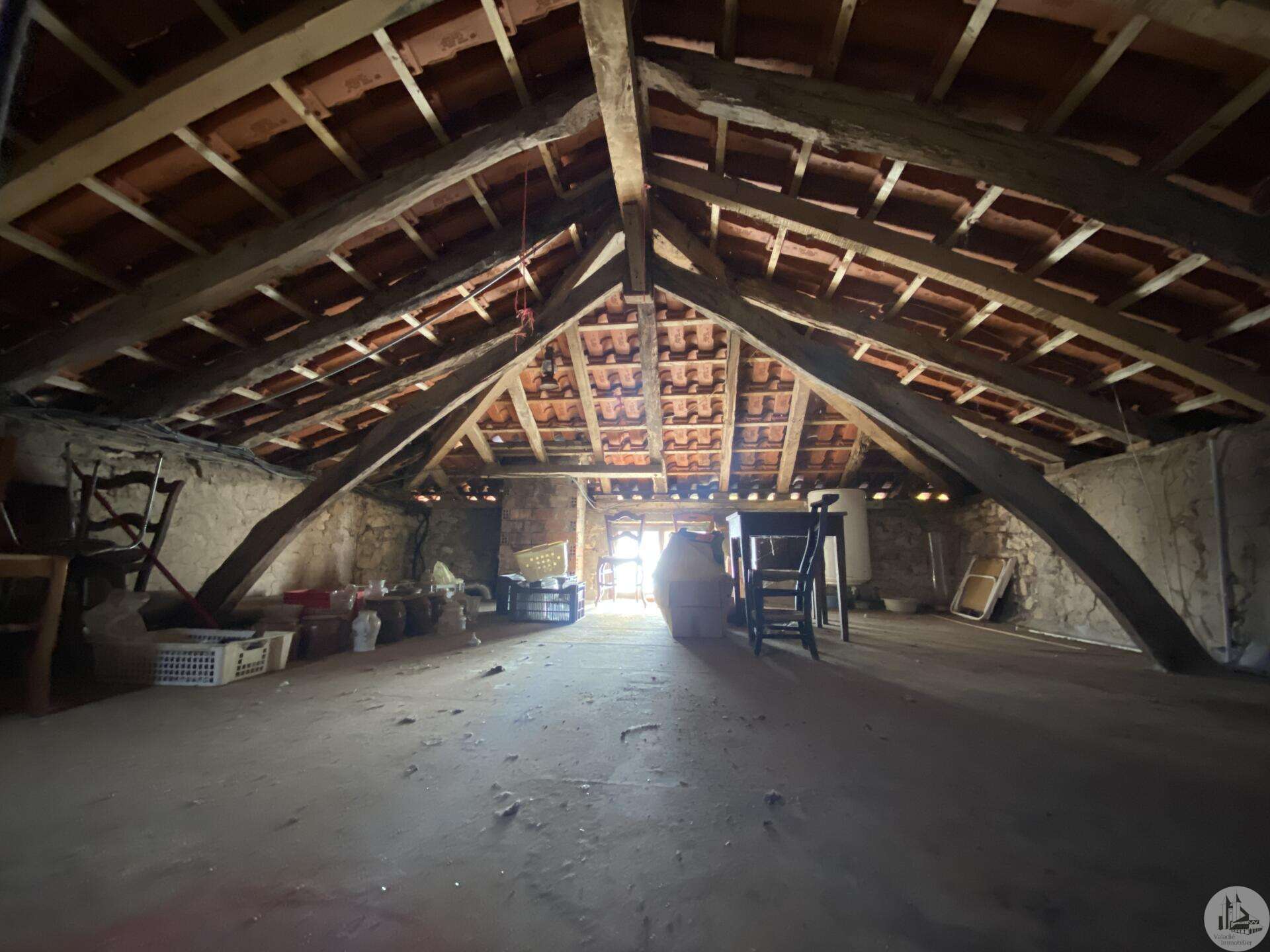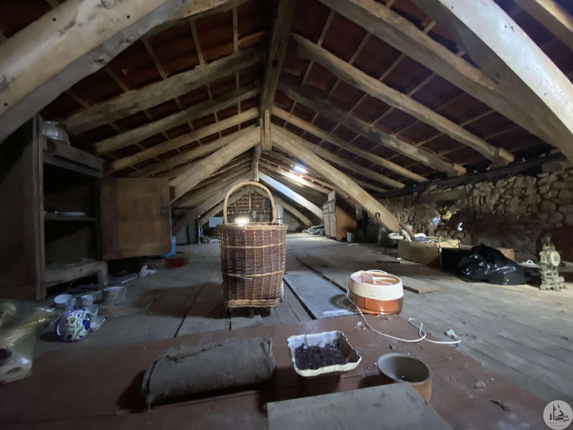 Former farmhouse comprising 4 buildings: - main house including a 36.8 m² veranda (unheated) used as a living room, an entrance hall (11.8 m²), a 26.8 m² kitchen (with fireplace insert), 3 bedrooms (16.5, 16, and 11.7 m²), a bathroom (6 m²), and a toilet. Attic accessible by stairs. Electric convectors and fireplace insert. Mostly double-glazed PVC windows (except for one bedroom and the hallway: single-glazed wooden windows, and the veranda: double-glazed aluminum windows). The house is habitable but would require modernization. - Stone barn (540 m²) with attached garage (19 m²) and carport (the roof of this barn needs repair) - Former open tobacco drying shed of approximately 93 m² (wooden cladding needs replacing) - Second stone barn (74 m²) with lean-to (48 m²) - Former stables/chicken coop. 4.3 hectares of land with a well surrounding the buildings.