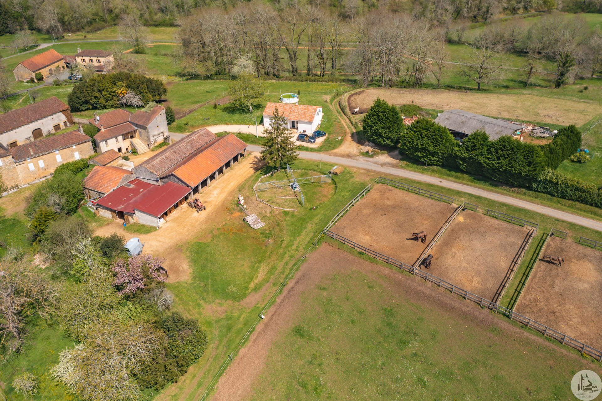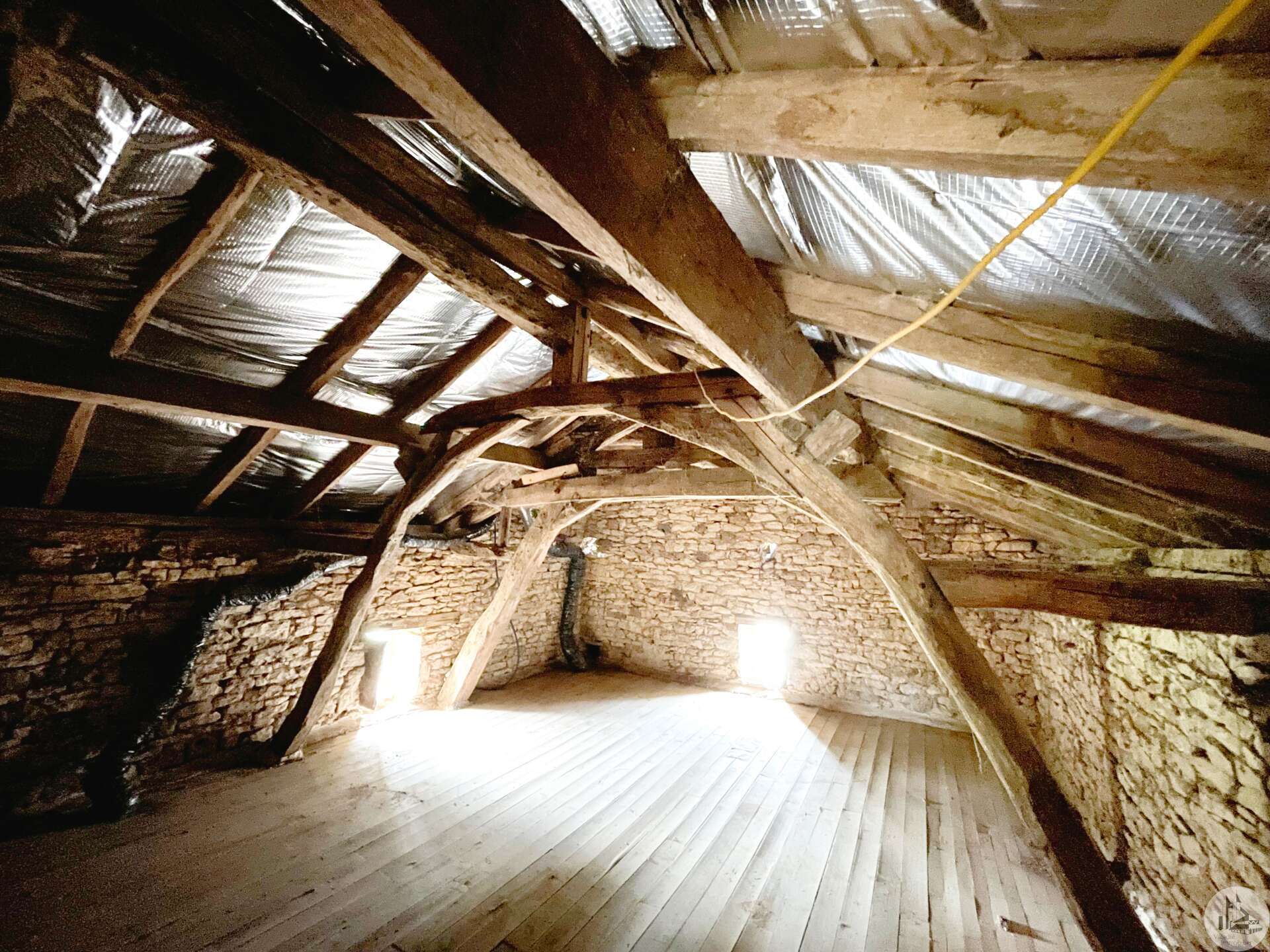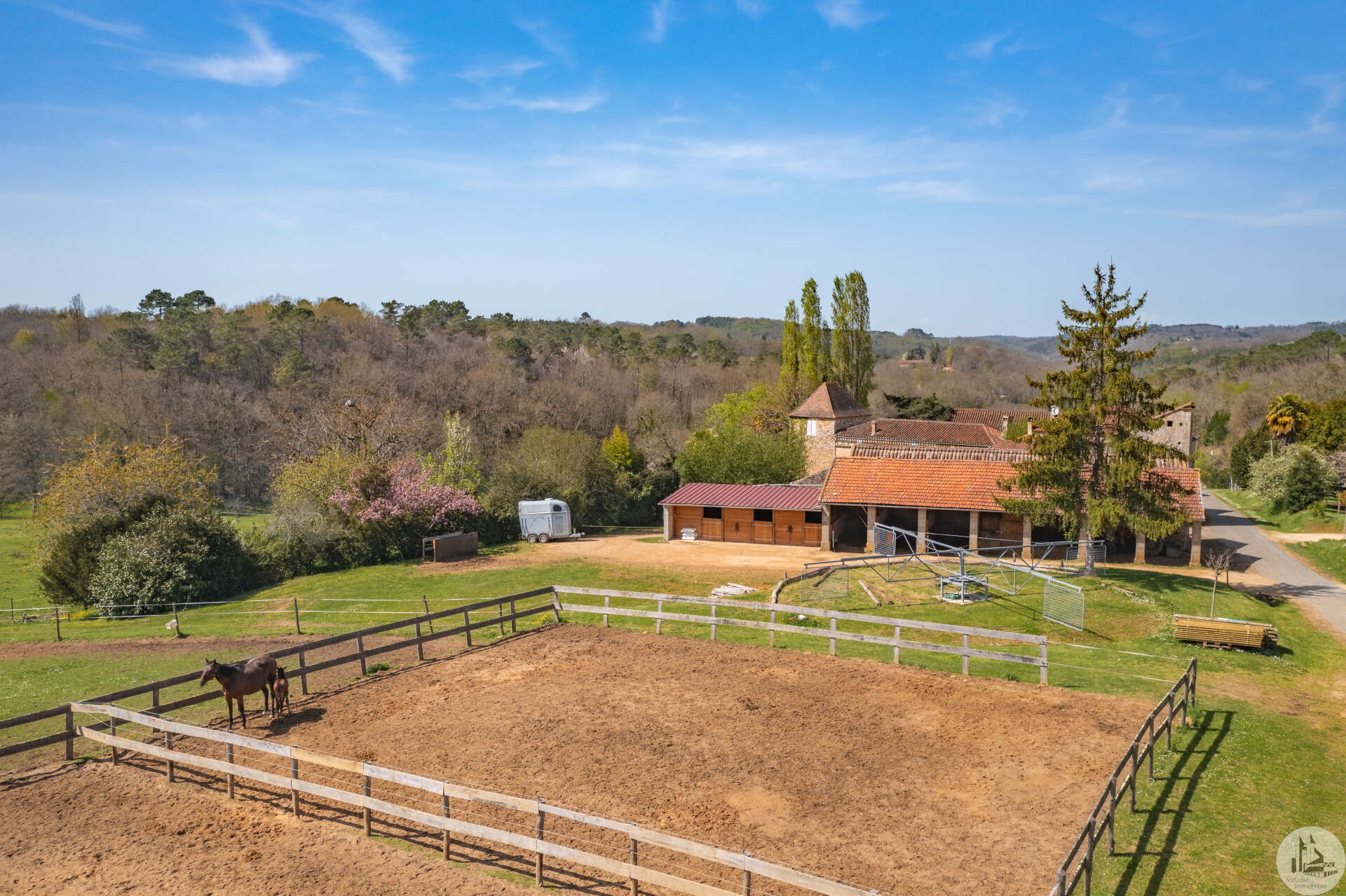 The 140 m² house is composed as follows: On the garden level, two cellars of 25 and 43 m², a boiler room of 12 m² (wood boiler from 1970) The bolet (covered terrace) is accessed by an exterior stone staircase opening onto the living area consisting of a living room with open kitchen of 20 m² with fireplace closed by an insert (an inglenook fireplace), two bedrooms of 10 m² and a bathroom. water of 8.23 m² served by a corridor, and a second living room of 13 m² or bedroom, as well as a bathroom of 7 m². All the attics can be converted, having an area of 70 m² with a good ceiling height (between 2.80 and 3.10 m) and partly insulated with a beautiful old exposed framework and a dovecote with the possibility of making three bedrooms. Septic tank PVC double glazing Interior design proposal in latest photos Close to an equine veterinary clinic, these stables are practical thanks to the different dimensions of the boxes allowing the horses to be properly separated as desired: Pony boxes, horses, broodmares or foaling boxes... The outbuildings used as stables, opposite the house, are nearby with a pretty interior courtyard in the center. The environment is wooded and calm. All fences are made of electrical tape (4cm) Paddocks have been set up, fenced in smooth wood. The stone outbuildings are arranged in a stable and composed as follows: -two indoor boxes of 3x7m -three indoor boxes of 3.5x3m -two outdoor boxes of 3x7m -an outdoor box of 3x4m -three outdoor boxes of 4x4m -two indoor boxes of 3.5x3m -three indoor boxes of 4x3m -a saddlery -a grain store in the form of a lean-to -a workshop -an insulated office with double glazing and electric heating to accommodate customers -a shed which allows fodder, straw, etc. to be stored (or possibility of stabling) -a four-seater electric walker -protrusion bar -ultrasound bar Possibility of additional land Three-phase Three small relaxation paddocks (the size of a lunge ring) with stabilized soil for a quarry. Water rights