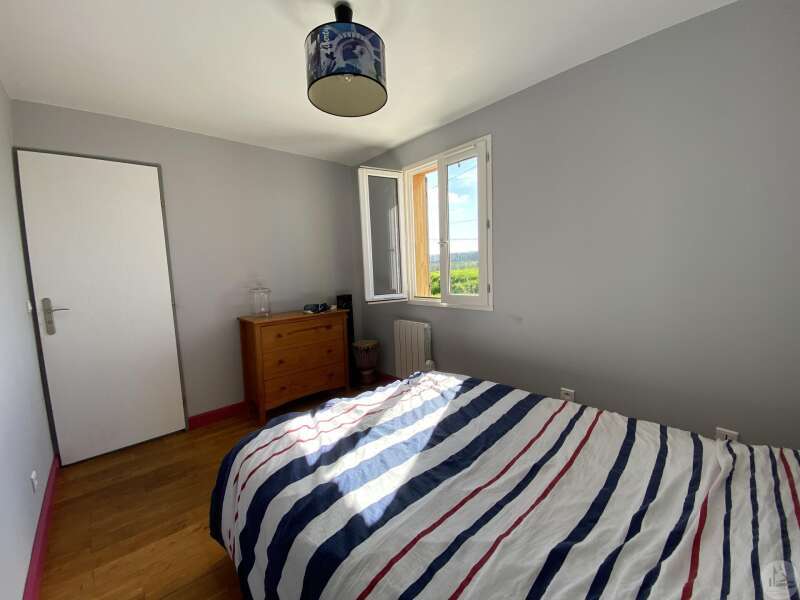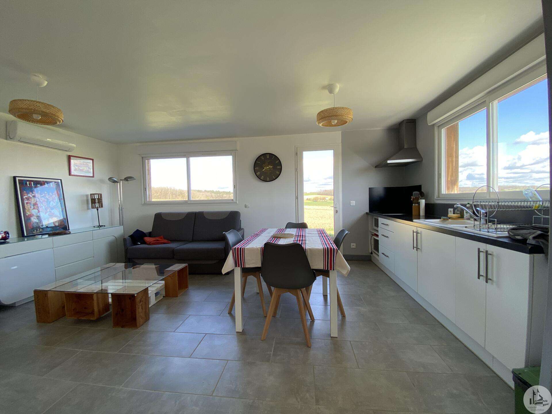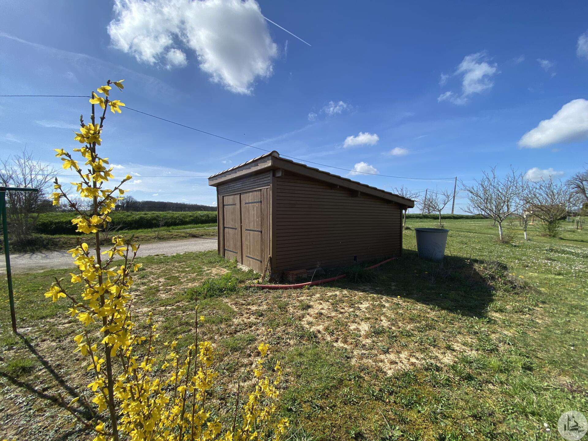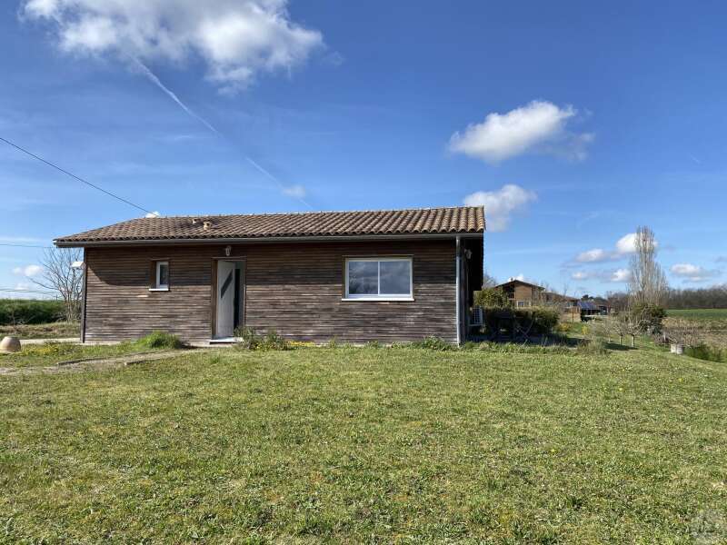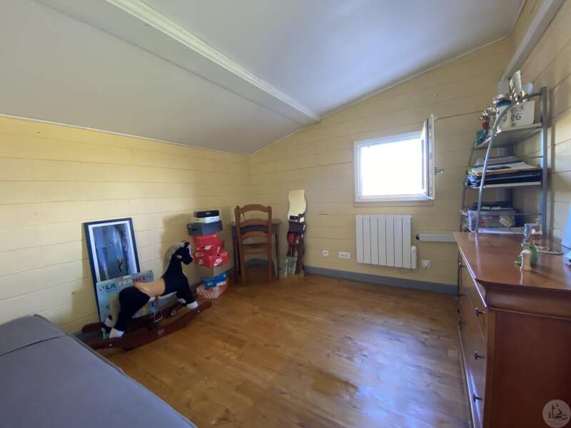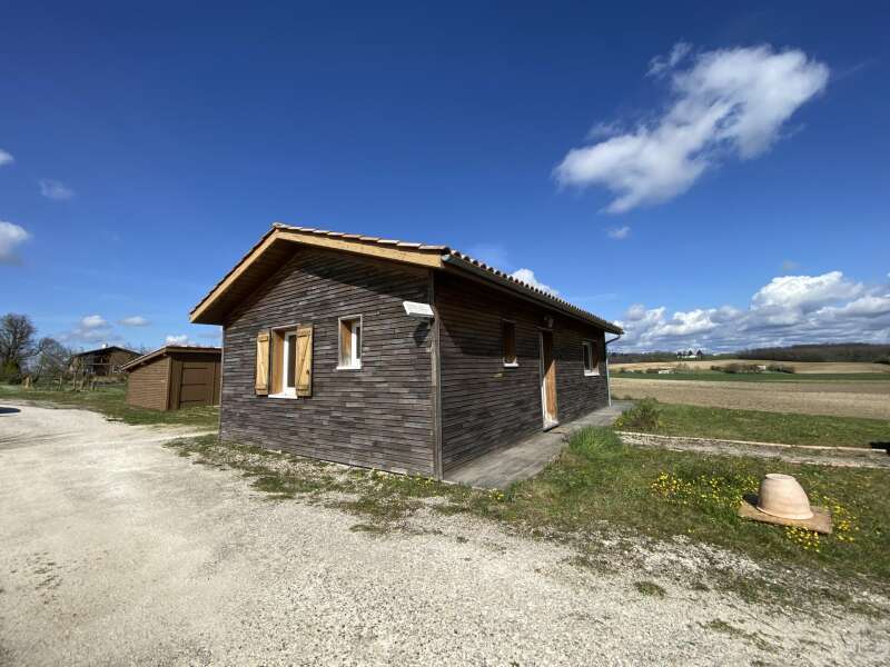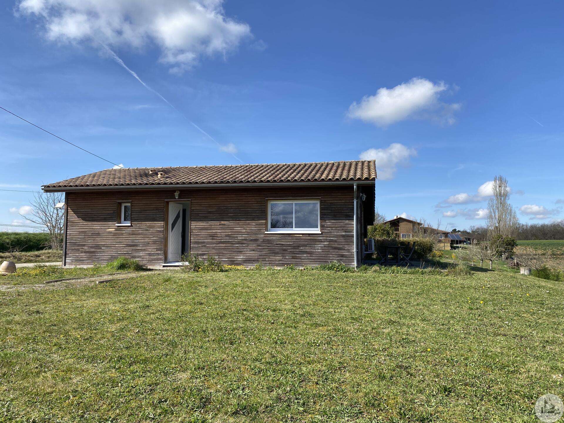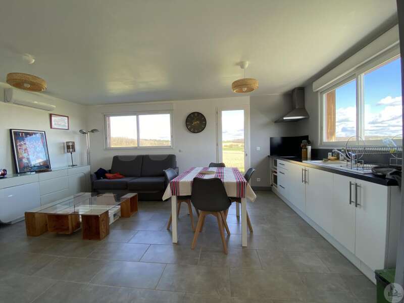 Wooden house built in 2017 (self-built), single-story, comprising: entrance hall (4.2 m²) with closet, fitted kitchen (ceramic hob and extractor hood) open to the living room (with air conditioning) - 25.8 m² -, pantry (4.6 m²), 3 bedrooms (10.2, 9.8, and 9.1 m²), shower room (3 m²) with sink and shower, toilet. Electric convectors. Double-glazed wooden windows and double-glazed aluminum sliding doors. Electric roller shutters in the living room. Wooden shutters for the other windows. Detached wooden garage (15.9 m²) 3191 m² plot with panoramic views and fruit trees.