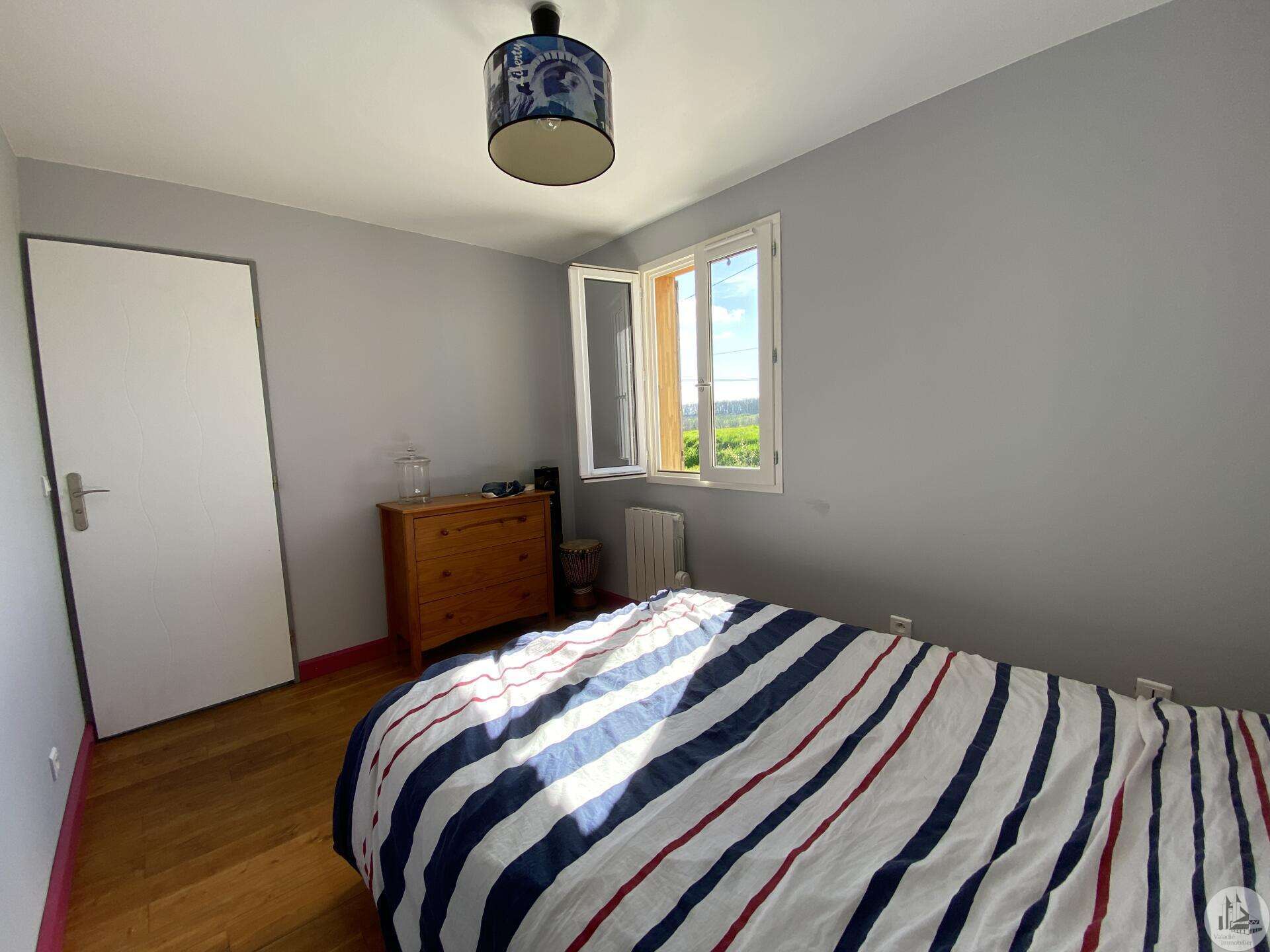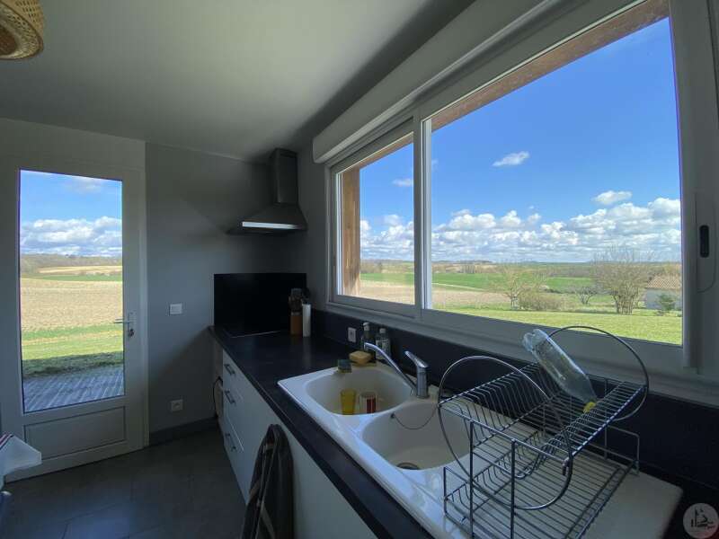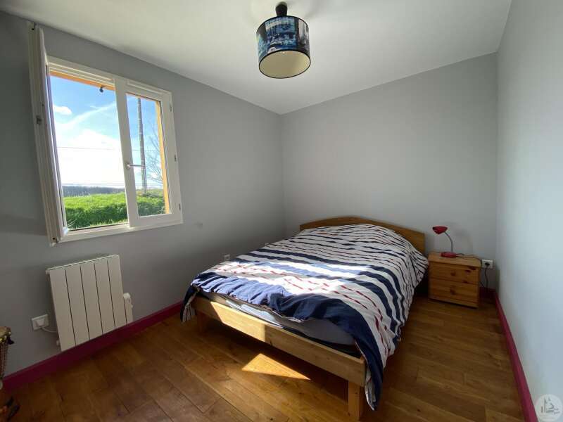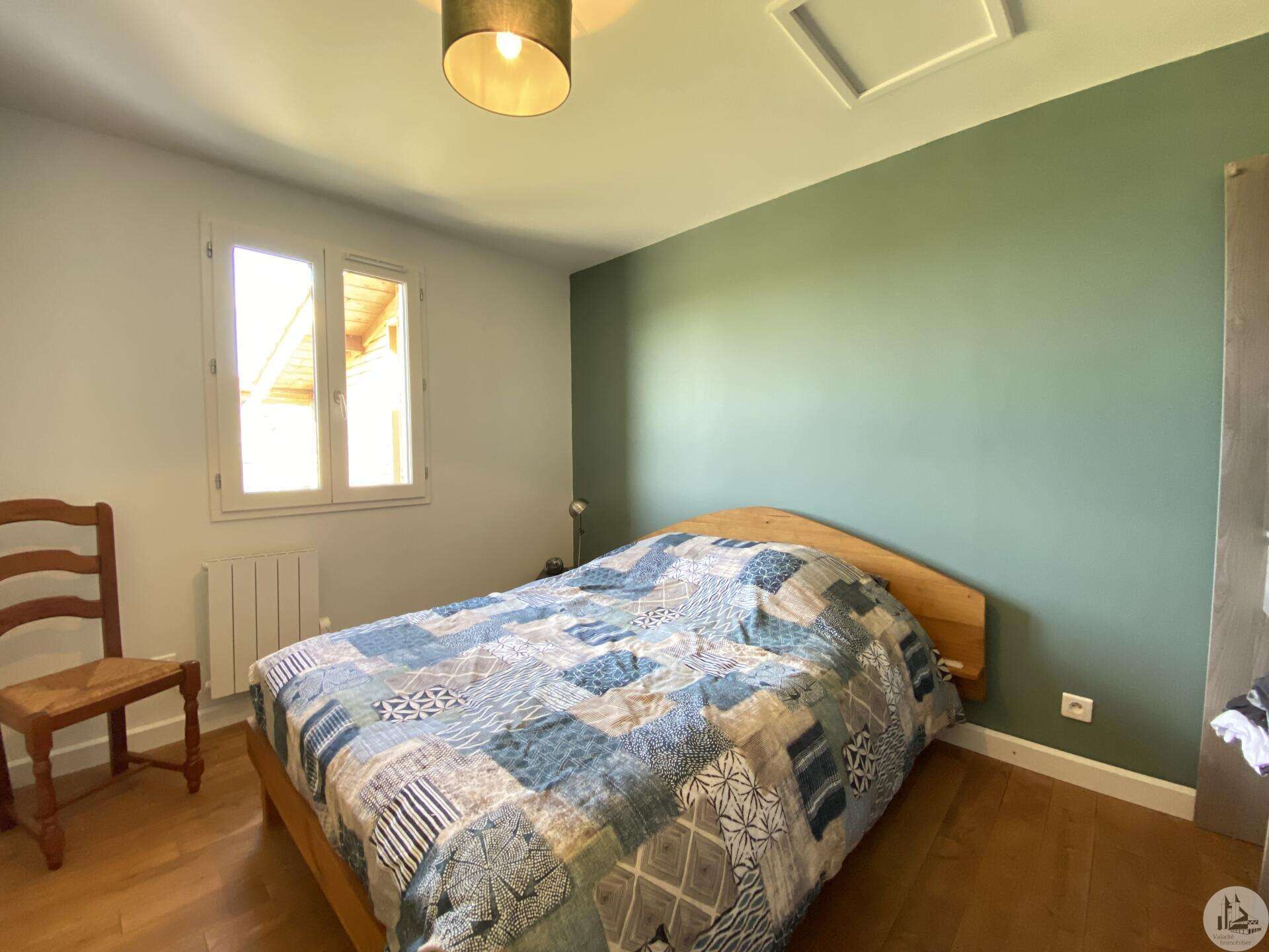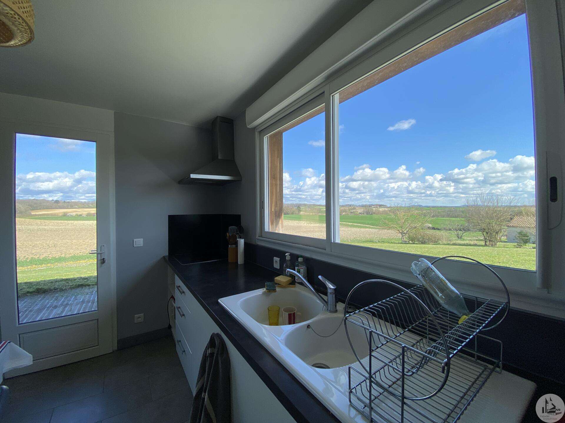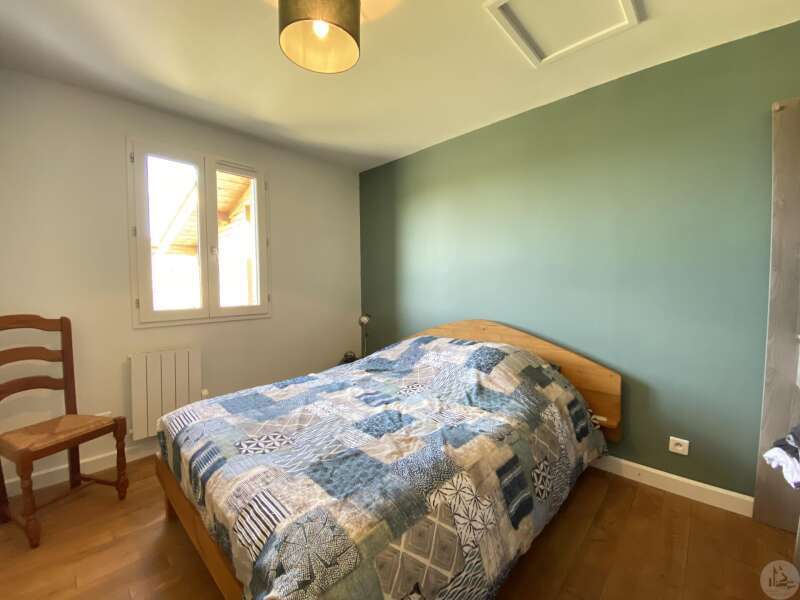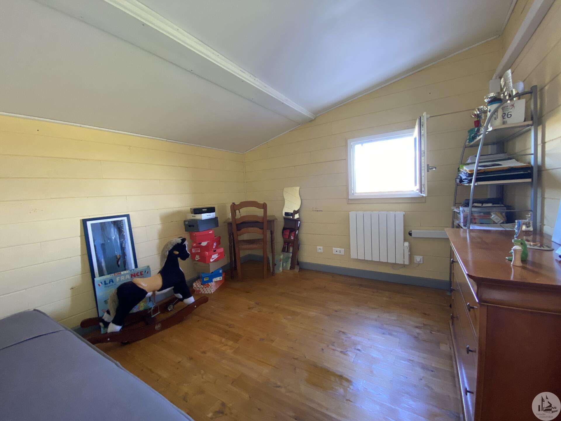 Wooden house built in 2017 (self-built), single-story, comprising: entrance hall (4.2 m²) with closet, fitted kitchen (ceramic hob and extractor hood) open to the living room (with air conditioning) - 25.8 m² -, pantry (4.6 m²), 3 bedrooms (10.2, 9.8, and 9.1 m²), shower room (3 m²) with sink and shower, toilet. Electric convectors. Double-glazed wooden windows and double-glazed aluminum sliding doors. Electric roller shutters in the living room. Wooden shutters for the other windows. Detached wooden garage (15.9 m²) 3191 m² plot with panoramic views and fruit trees.