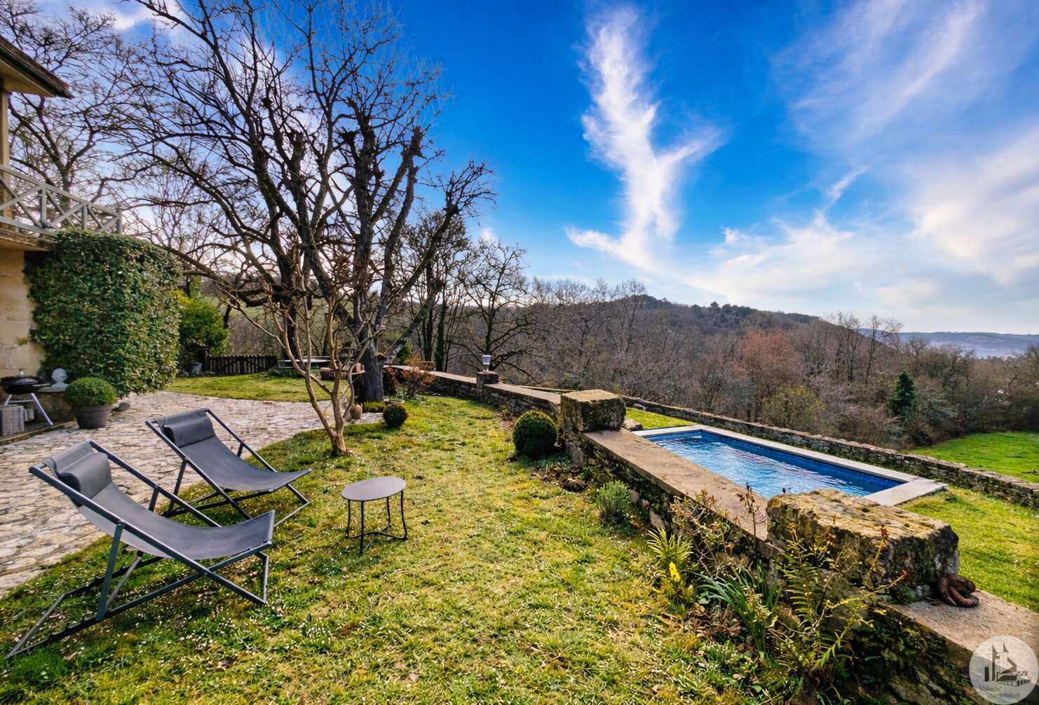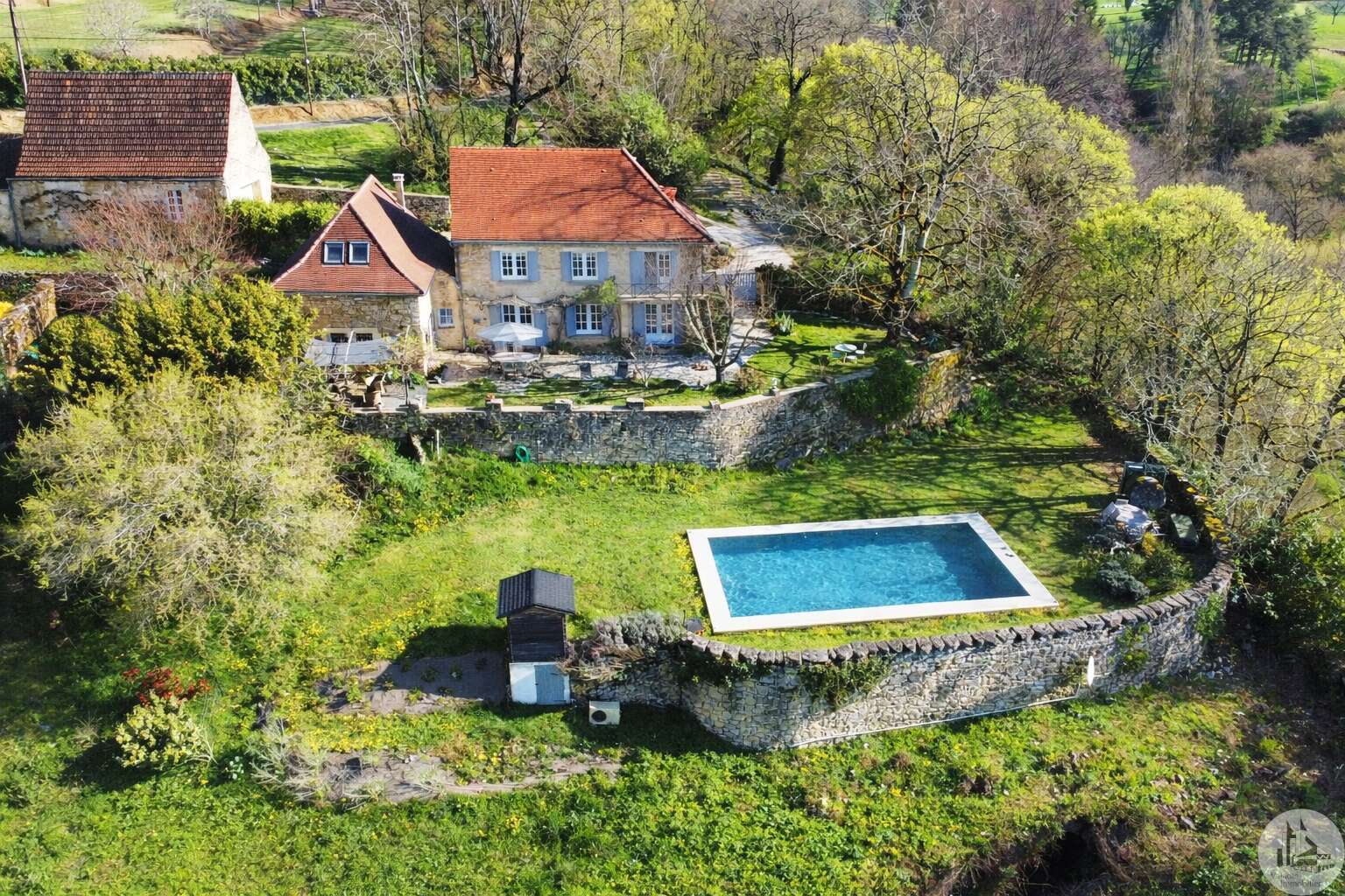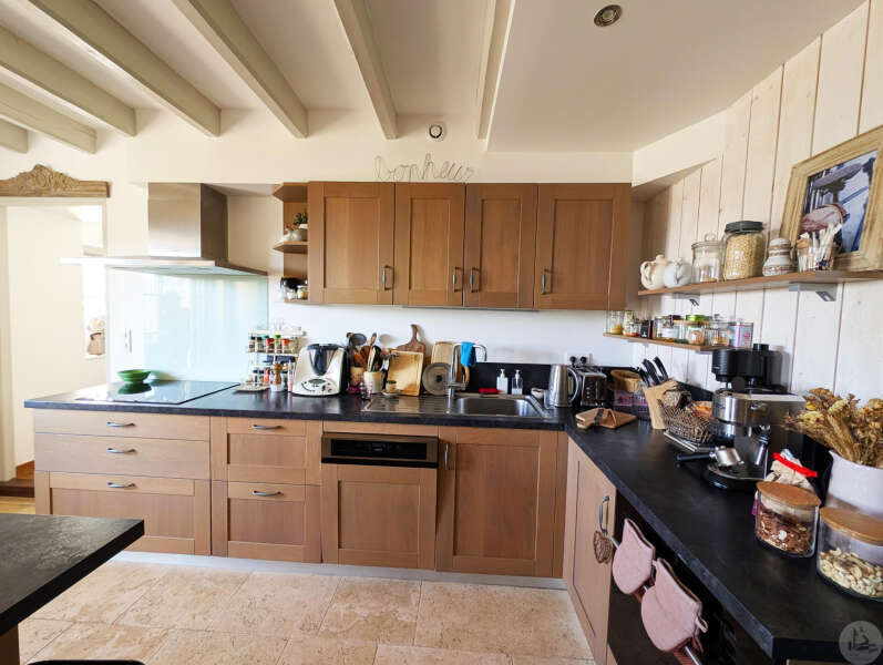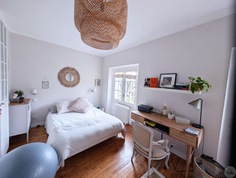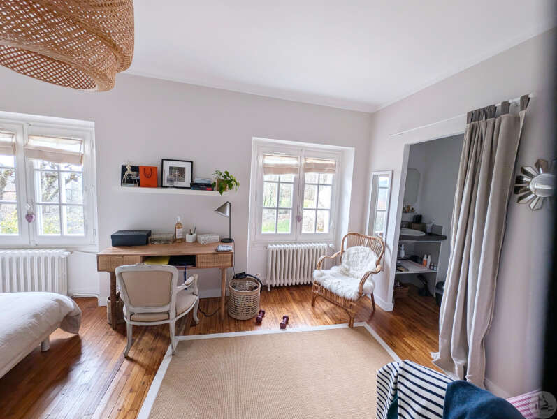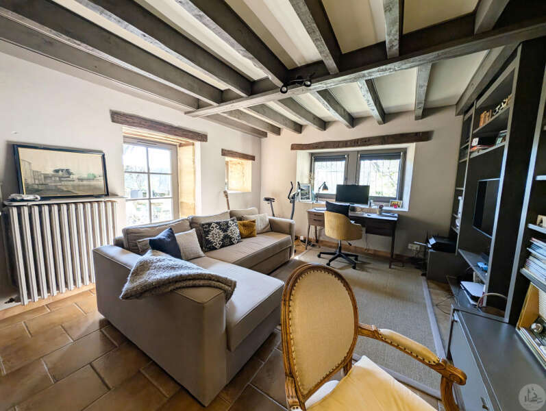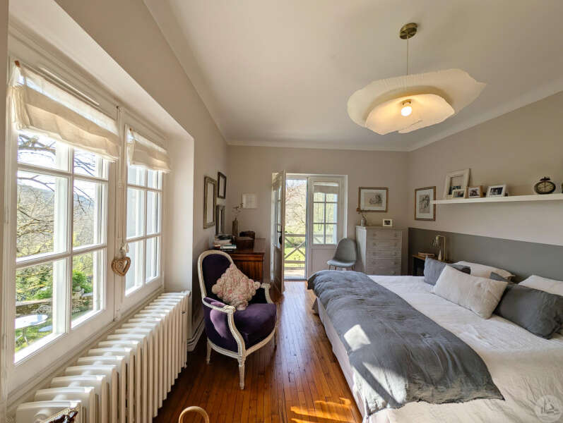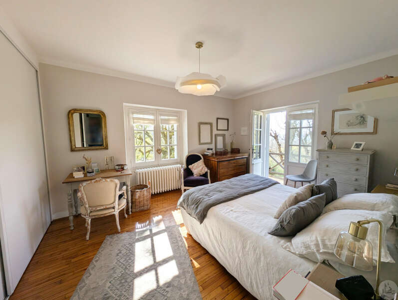 On the garden level: A bright 51 sq m open-plan living/dining/kitchen area (wood-burning stove), opening onto a rooftop garden with a view. A 22 sq m bedroom with access to the rooftop garden (currently used as an office), a 5 sq m shower room with WC, and an 8 sq m laundry room (water softener and hot water tank). Upstairs: - Bedroom 2 (14 sq m) with en-suite shower room, accessible via a connecting or independent entrance, and reversible air conditioning (potential rental income). - Bedroom 3 (17 sq m) with en-suite shower room and balcony. - Bedroom 4 (15 sq m). - Shower room (6.15 sq m) with WC. Detached garage (barn) with automated door. Heated 8x4 meter swimming pool with liner (10 years old/new pump) * Viessmann oil-fired heating + wood-burning stove * Double glazing * Fiber optic internet * Electric vehicle charging station * Generator for full power supply * Water softener * Alarm system * Individual septic system