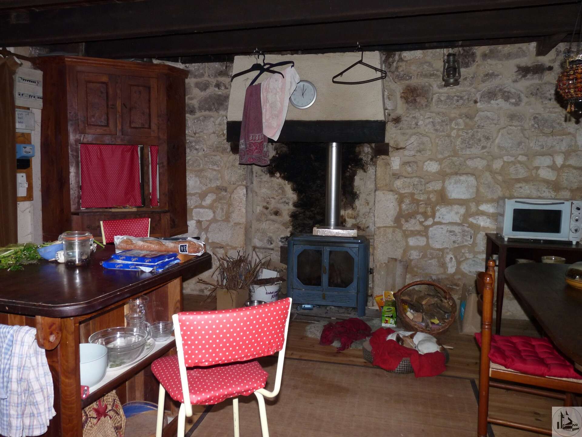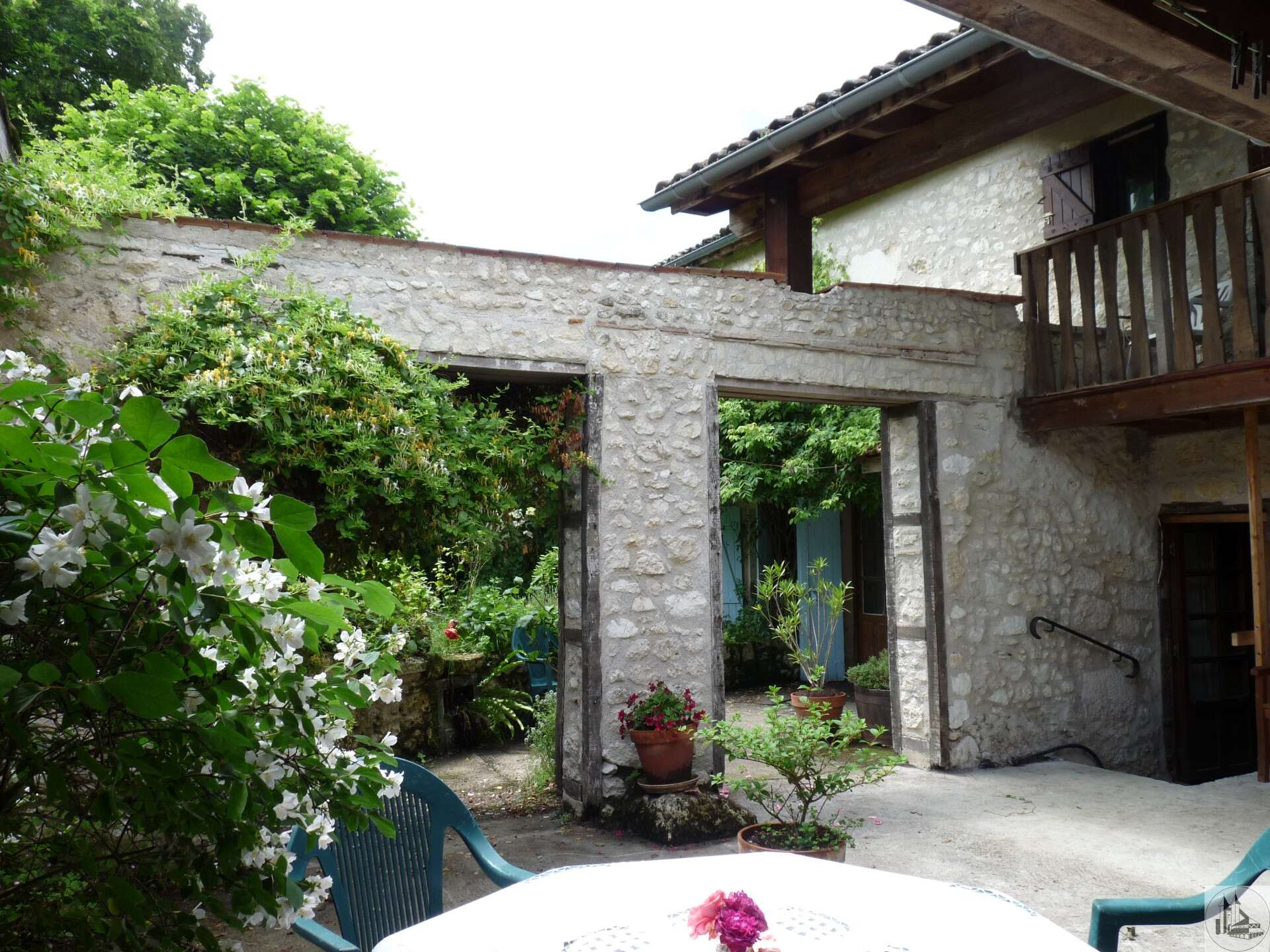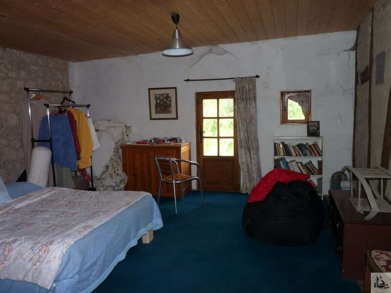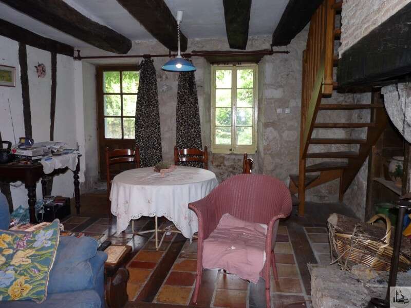 It is one of the oldest houses in the village! Housing comprising: an entrance of 4.5m2 (very old door, half-timbered walls, terracotta floor) a "rustic" kitchen of 27m2 with its period fireplace, wooden floor, a staircase leading upstairs and access to a very pleasant interior courtyard of 40m2, an identical living room of 27m2 (beams, large fireplace, stone walls, etc.) a staircase leading to one of the bedrooms A 4m2 room with toilets and laundry room Floor: the landing gives access to the 3 bedrooms of the house, shower room and bathroom with toilet, but also onto a charming terrace/balcony with a view of the courtyard Private courtyard surrounded by various outbuildings (pyre, shed and workshop) plus garden Adjoining the house and being able to communicate (former passage through the living room) an annex to be rehabilitated of approximately 35m2 on the ground plus mezzanine and an old garage offers the possibility of enlarging the house or creating a 2d accommodation for gîte/bedroom 'host... The house does not lack charm but requires renovation and upgrading work (absence of central heating, sanitation to be brought up to standard, old joinery, etc.)