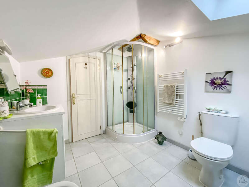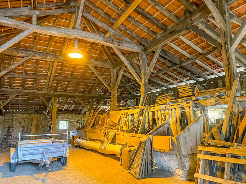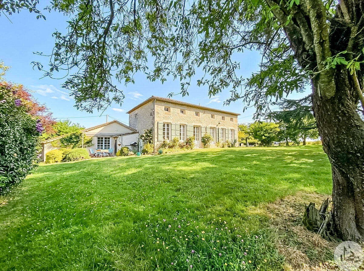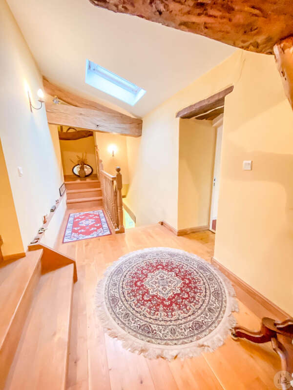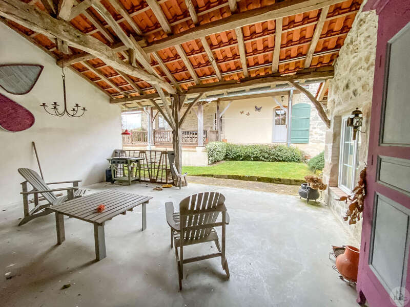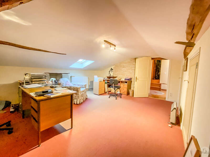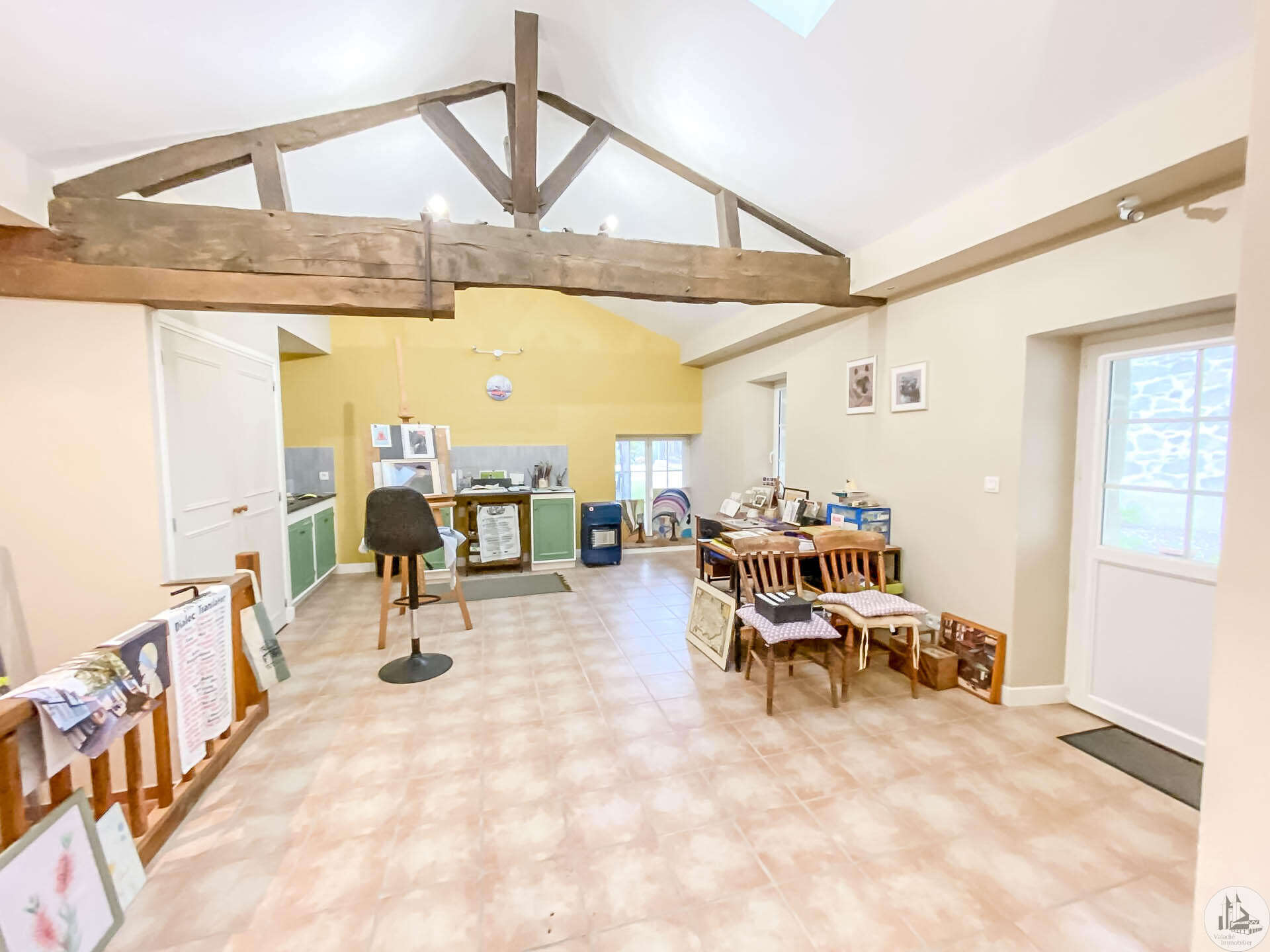 A stone house with approximately 363 m² of living space, comprising: On the ground floor: - An entrance hall of approximately 6 m², tiled floor. - A living room of approximately 45.2 m², parquet flooring, two French doors (one opening onto the covered terrace), a fireplace with a wood-burning stove. Ceiling height of 4.8 m. - A kitchen of approximately 28.7 m², tiled floor, a fireplace with a wood-burning stove. The kitchen is fitted with cupboards and equipped with an oven, extractor hood, induction hob, and tiled walls. - A pantry/laundry room of approximately 12 m², tiled floor, upper and lower cupboards, and tiled walls. A French door opens onto the rear garden. - A spacious entrance hall/corridor of approximately 19.7 m², tiled floor. - A bedroom of approximately 21.8 m², with tiled flooring, and an en-suite bathroom of approximately 3.34 m², with tiled floor and walls, a bathtub, a sink, a toilet, a towel warmer, a ventilation system, and a bidet. - A bedroom of approximately 24.7 m², with tiled flooring, and an en-suite shower room of approximately 4.2 m², with tiled floor and walls, a shower, a sink, a toilet, a towel warmer, a ventilation system, and a bidet. - A bedroom of approximately 21.2 m², with laminate flooring, and an en-suite shower room of approximately 3.3 m², with tiled floor and walls, a shower, a sink, a toilet, a towel warmer, and a ventilation system. - A separate toilet in the hallway under the stairs, approximately 2 m², with a hand basin, tiled floor, and tiled walls. From the hallway, there is access to a studio apartment of approximately 47.4 sq m, with tiled floors, ample storage, French doors opening onto a terrace and garden, and another door opening onto the courtyard. Adjoining this space are two rooms of approximately 24.2 and 10 sq m, requiring finishing touches to potentially create a bedroom and a bathroom. From the hallway, a staircase leads to the upper floor: - A landing of approximately 11 sq m, with parquet flooring. - A bedroom or office of approximately 28.2 sq m (floor area), with a sloping ceiling, a skylight, built-in wardrobes, and carpeting. - A living room of approximately 21.3 sq m, with parquet flooring. Open to the living area. - A dressing room of approximately 13.6 sq m, with carpeting. - A bedroom of approximately 15.5 sq m, with laminate flooring. A bathroom of approximately 6.7 sq m with a shower, toilet, bidet, and sink. - A room of approximately 30.5 m² to be finished, with plumbing already in place for a potential bathroom. - A cellar extending under the entire living room. Additional information: - Heating via a heat pump and radiators, plus reversible air conditioning in the bedrooms. - The windows and doors are double-glazed PVC with wooden shutters; some windows are still single-glazed wood. - Sewage system with a septic tank, grease trap, and drainage (5 drains). Outside: - A stone barn of approximately 228 m² (17.4m x 13.1m), with an earthen floor. It includes a lean-to of approximately 80 m² (5.32m x 15.03m). The roof was replaced 8 years ago. - A garage of approximately 11.4 m², with a concrete floor. - A garage of approximately 18 m², with a concrete floor. - A workshop of approximately 19.2 m². - A garden shed of approximately 11.5 m². - A 12m x 6m saltwater swimming pool with a flat bottom and a depth of 1.4m, a surrounding terrace, and corner steps. (It was heated, but the heat pump is out of order). - A covered terrace overlooking the courtyard and the pool. - A summer kitchen of approximately 10.8 m² with a toilet and sink. - A well. - A garden of approximately 1 hectare with beautiful mature trees.