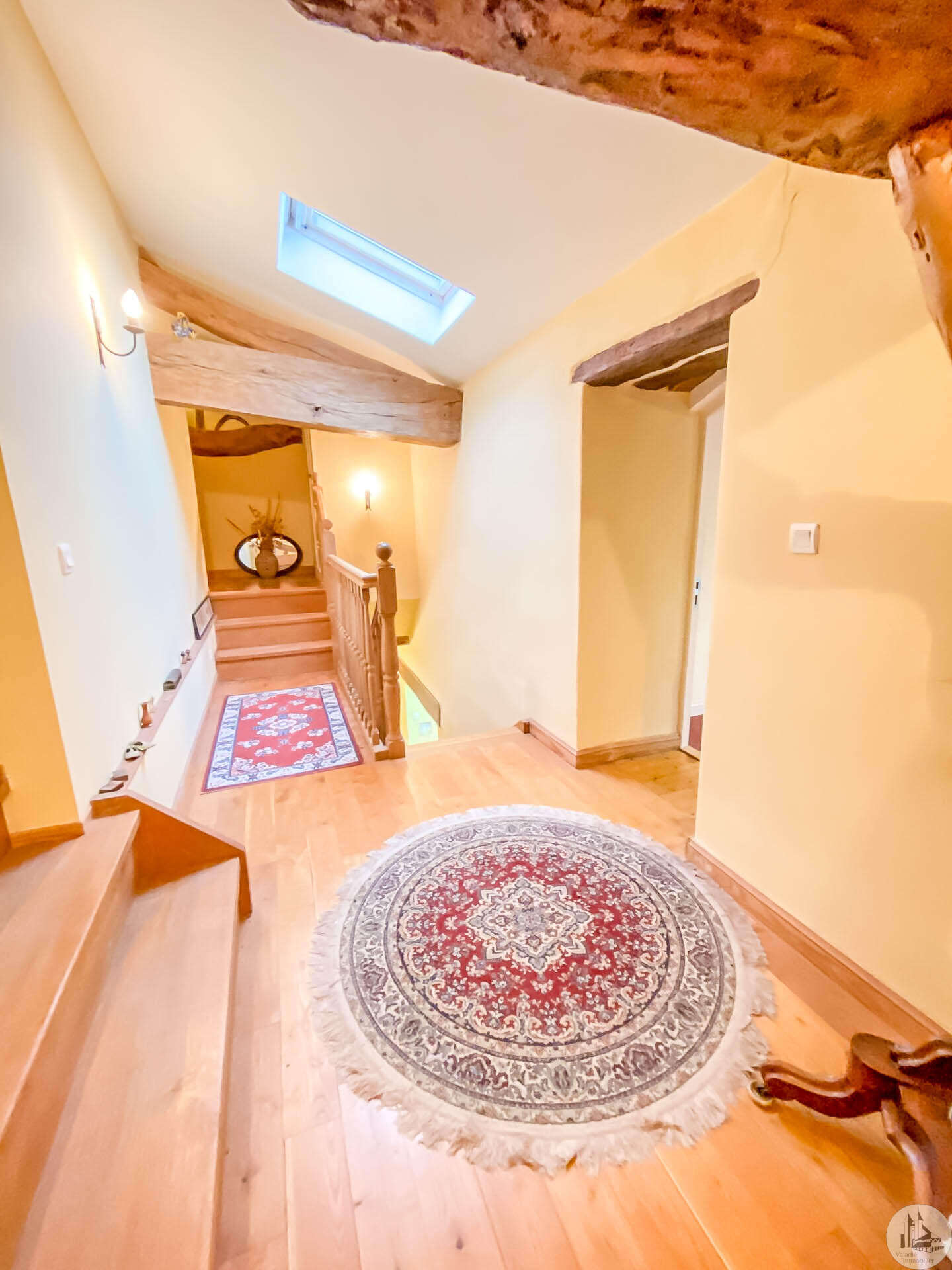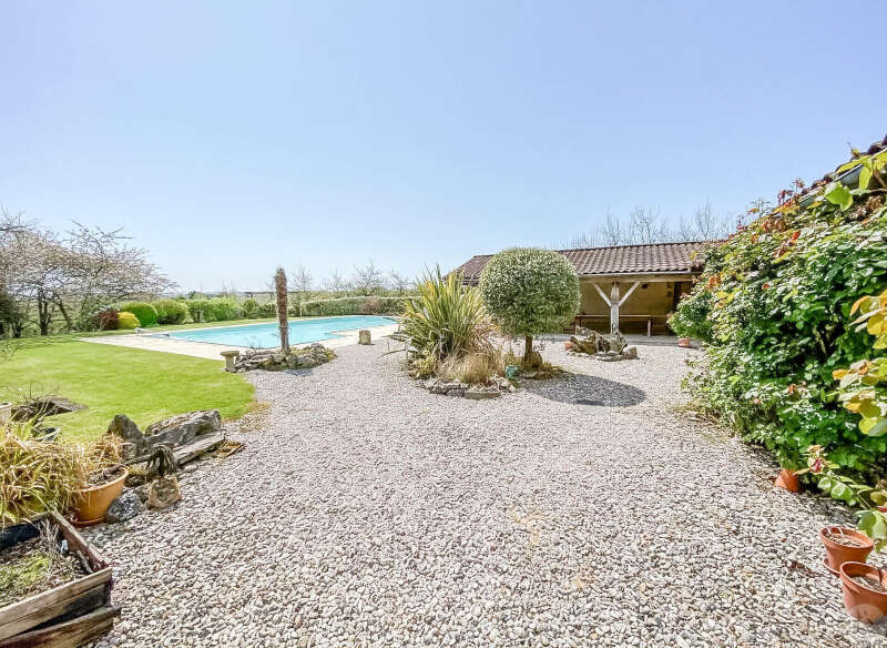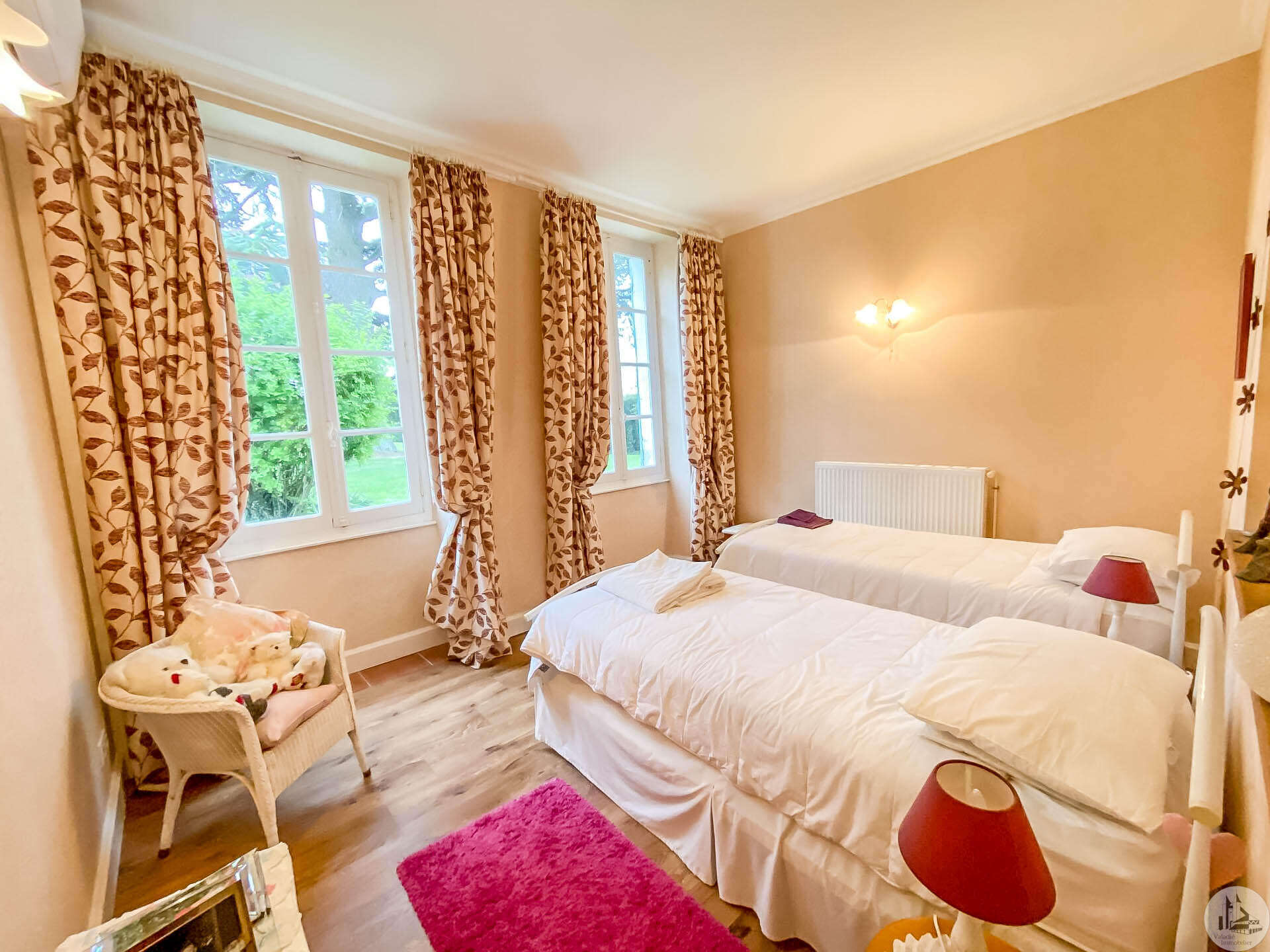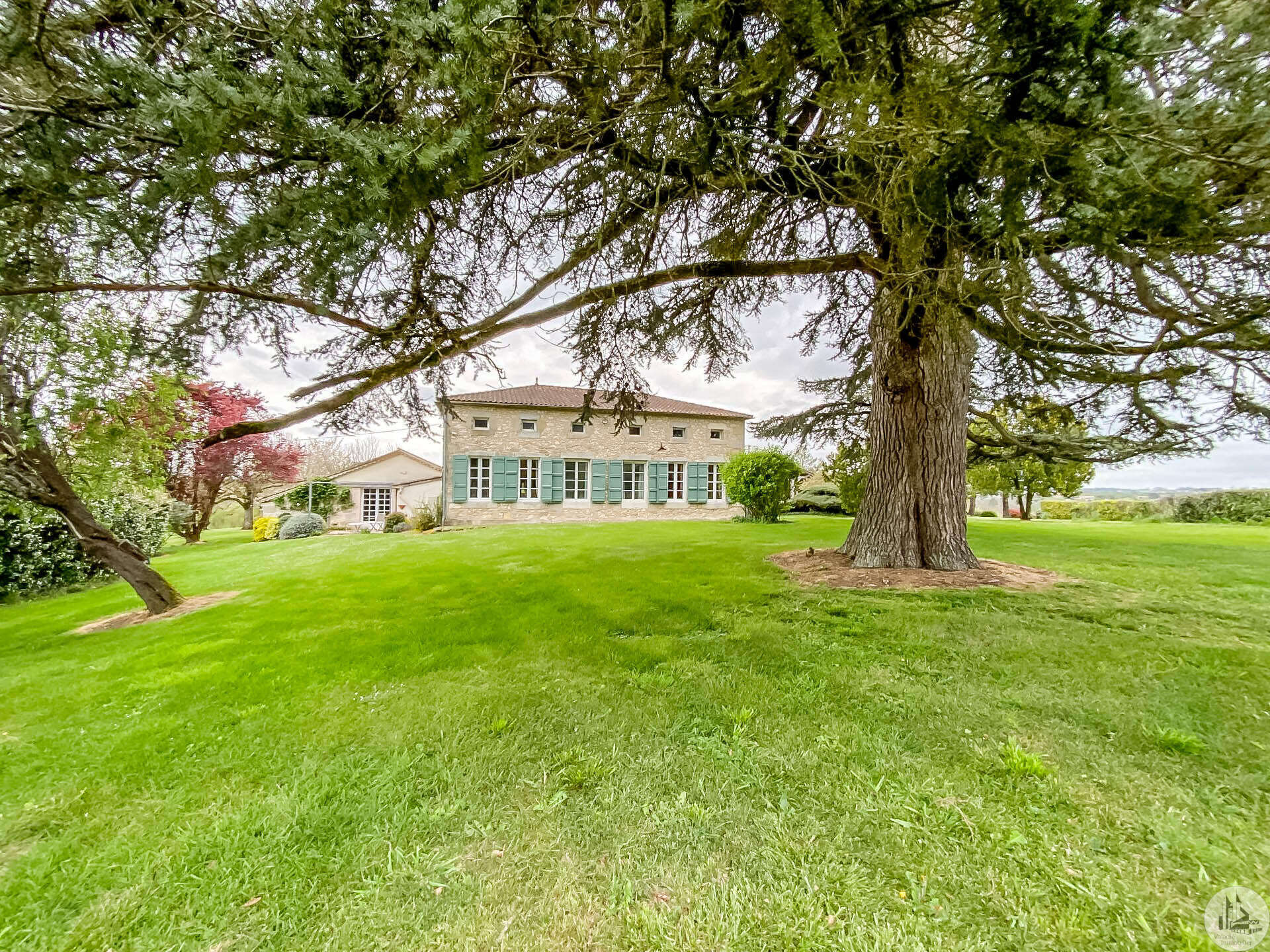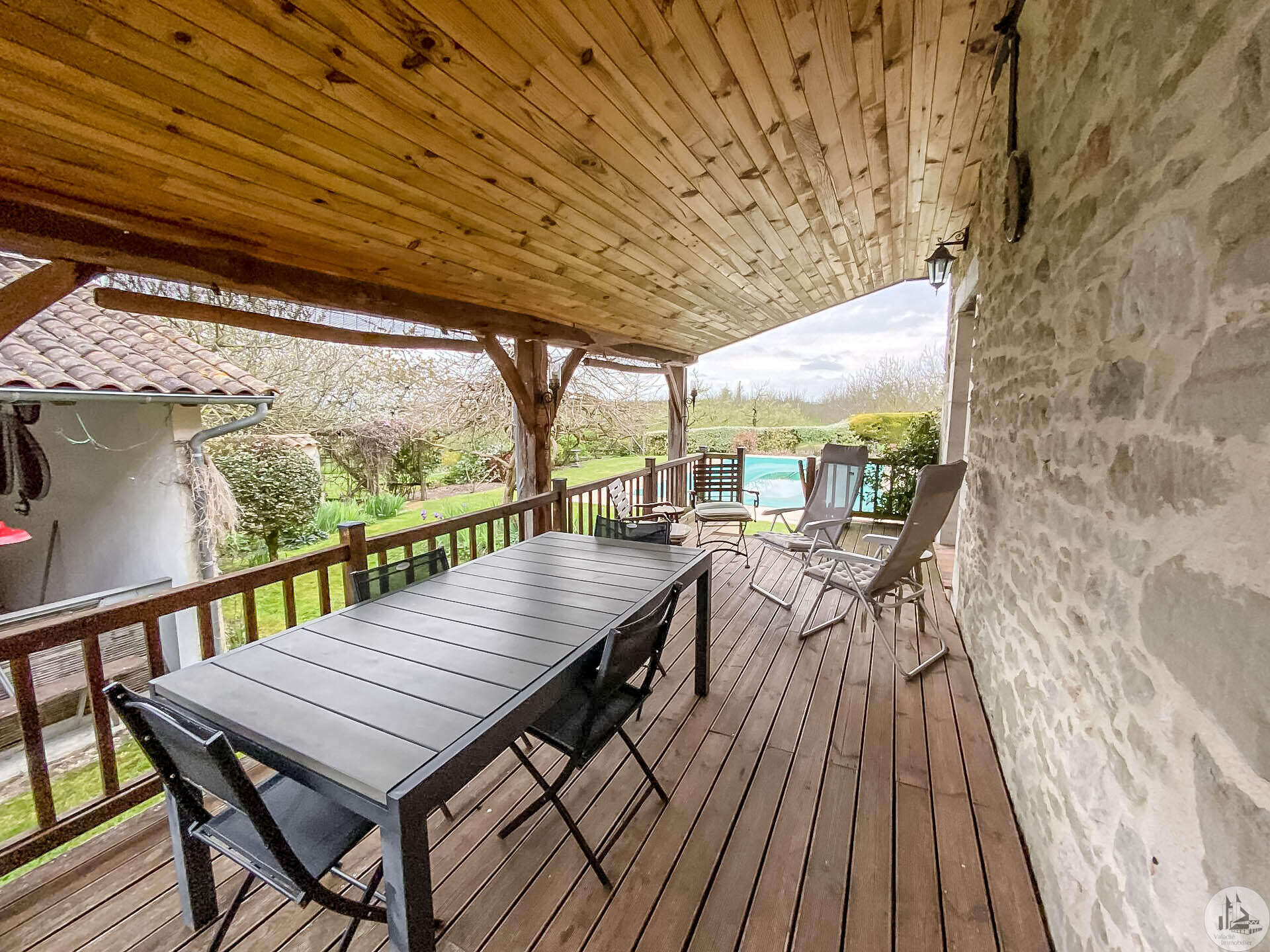 A stone house with approximately 363 m² of living space, comprising: On the ground floor: - An entrance hall of approximately 6 m², tiled floor. - A living room of approximately 45.2 m², parquet flooring, two French doors (one opening onto the covered terrace), a fireplace with a wood-burning stove. Ceiling height of 4.8 m. - A kitchen of approximately 28.7 m², tiled floor, a fireplace with a wood-burning stove. The kitchen is fitted with cupboards and equipped with an oven, extractor hood, induction hob, and tiled walls. - A pantry/laundry room of approximately 12 m², tiled floor, upper and lower cupboards, and tiled walls. A French door opens onto the rear garden. - A spacious entrance hall/corridor of approximately 19.7 m², tiled floor. - A bedroom of approximately 21.8 m², with tiled flooring, and an en-suite bathroom of approximately 3.34 m², with tiled floor and walls, a bathtub, a sink, a toilet, a towel warmer, a ventilation system, and a bidet. - A bedroom of approximately 24.7 m², with tiled flooring, and an en-suite shower room of approximately 4.2 m², with tiled floor and walls, a shower, a sink, a toilet, a towel warmer, a ventilation system, and a bidet. - A bedroom of approximately 21.2 m², with laminate flooring, and an en-suite shower room of approximately 3.3 m², with tiled floor and walls, a shower, a sink, a toilet, a towel warmer, and a ventilation system. - A separate toilet in the hallway under the stairs, approximately 2 m², with a hand basin, tiled floor, and tiled walls. From the hallway, there is access to a studio apartment of approximately 47.4 sq m, with tiled floors, ample storage, French doors opening onto a terrace and garden, and another door opening onto the courtyard. Adjoining this space are two rooms of approximately 24.2 and 10 sq m, requiring finishing touches to potentially create a bedroom and a bathroom. From the hallway, a staircase leads to the upper floor: - A landing of approximately 11 sq m, with parquet flooring. - A bedroom or office of approximately 28.2 sq m (floor area), with a sloping ceiling, a skylight, built-in wardrobes, and carpeting. - A living room of approximately 21.3 sq m, with parquet flooring. Open to the living area. - A dressing room of approximately 13.6 sq m, with carpeting. - A bedroom of approximately 15.5 sq m, with laminate flooring. A bathroom of approximately 6.7 sq m with a shower, toilet, bidet, and sink. - A room of approximately 30.5 m² to be finished, with plumbing already in place for a potential bathroom. - A cellar extending under the entire living room. Additional information: - Heating via a heat pump and radiators, plus reversible air conditioning in the bedrooms. - The windows and doors are double-glazed PVC with wooden shutters; some windows are still single-glazed wood. - Sewage system with a septic tank, grease trap, and drainage (5 drains). Outside: - A stone barn of approximately 228 m² (17.4m x 13.1m), with an earthen floor. It includes a lean-to of approximately 80 m² (5.32m x 15.03m). The roof was replaced 8 years ago. - A garage of approximately 11.4 m², with a concrete floor. - A garage of approximately 18 m², with a concrete floor. - A workshop of approximately 19.2 m². - A garden shed of approximately 11.5 m². - A 12m x 6m saltwater swimming pool with a flat bottom and a depth of 1.4m, a surrounding terrace, and corner steps. (It was heated, but the heat pump is out of order). - A covered terrace overlooking the courtyard and the pool. - A summer kitchen of approximately 10.8 m² with a toilet and sink. - A well. - A garden of approximately 1 hectare with beautiful mature trees.