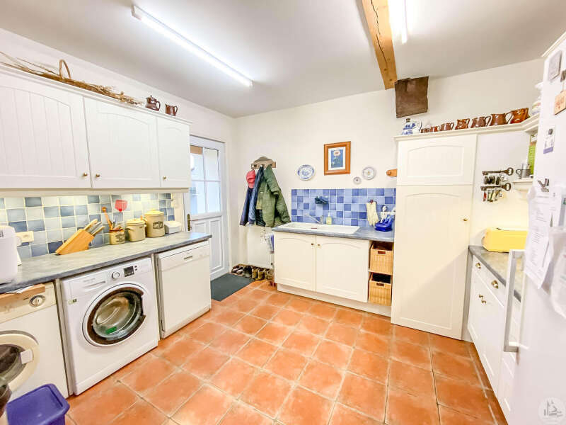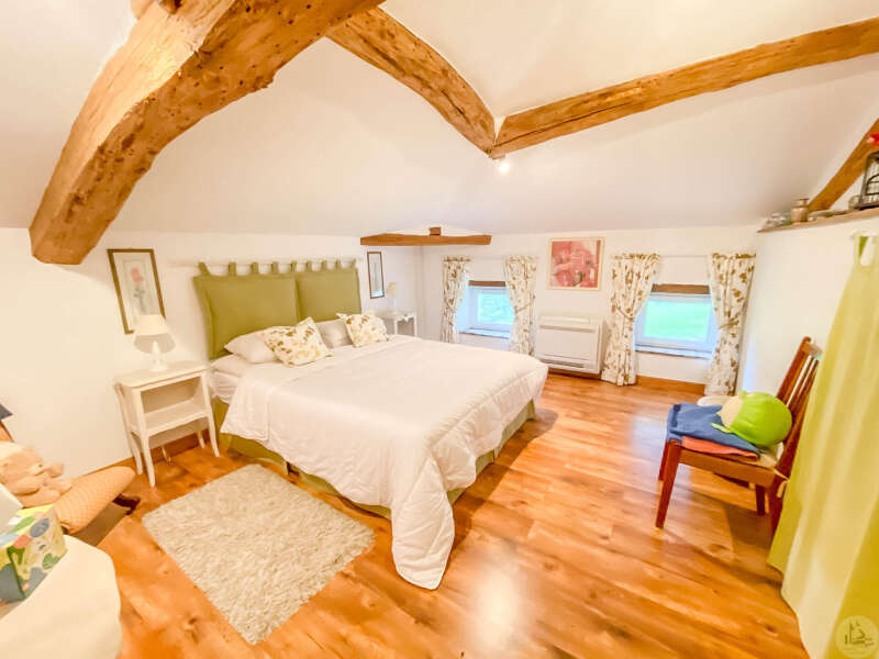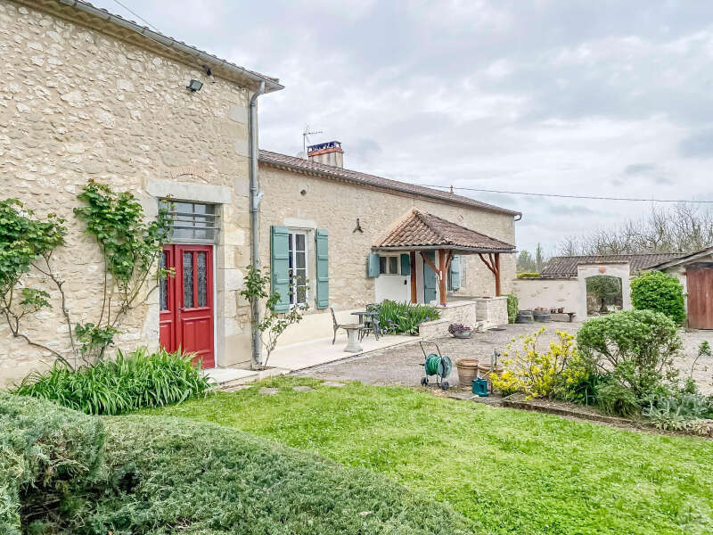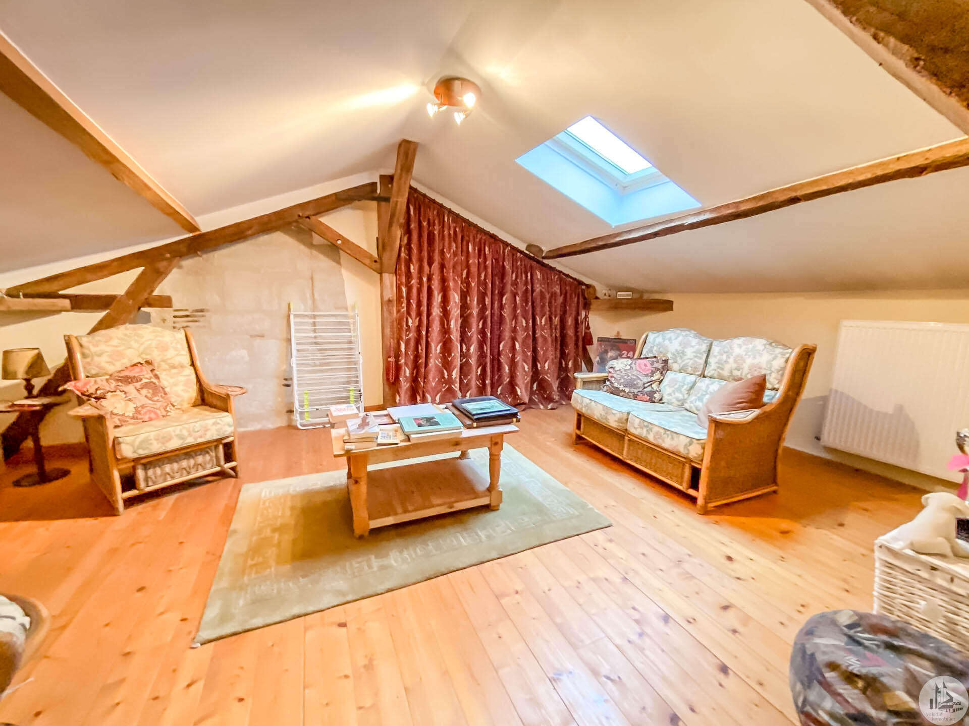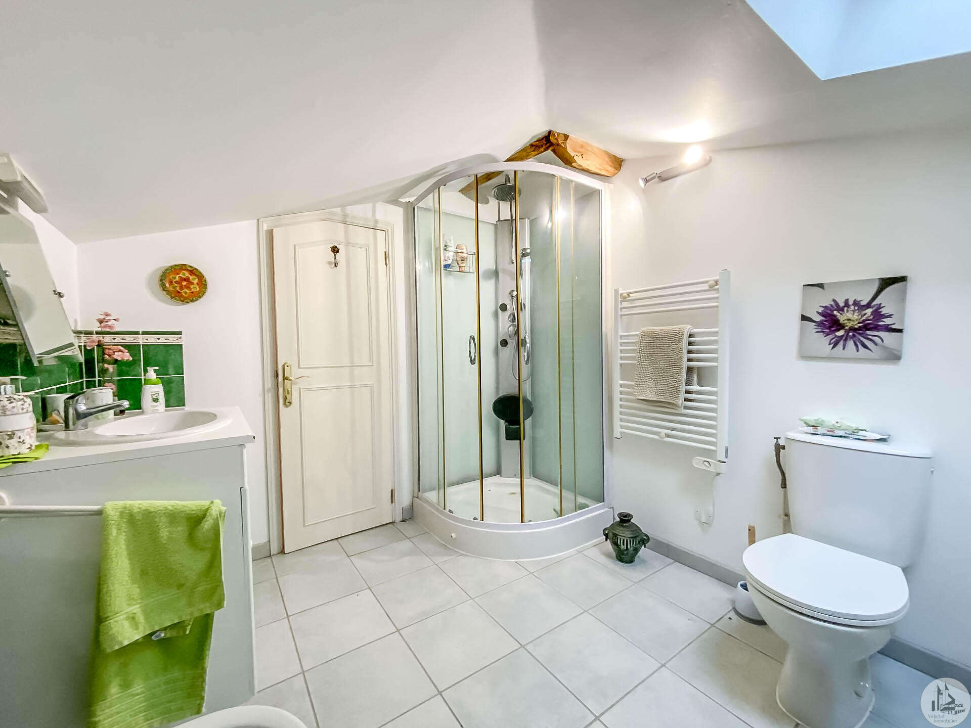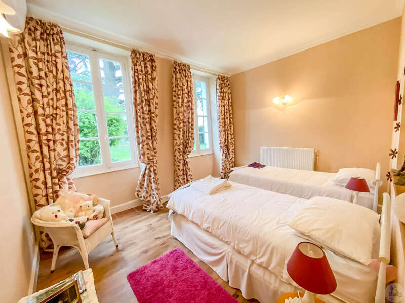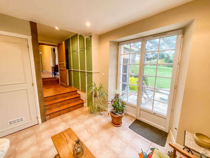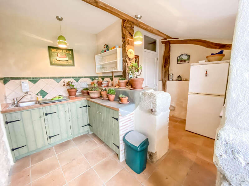 A stone house with approximately 363 m² of living space, comprising: On the ground floor: - An entrance hall of approximately 6 m², tiled floor. - A living room of approximately 45.2 m², parquet flooring, two French doors (one opening onto the covered terrace), a fireplace with a wood-burning stove. Ceiling height of 4.8 m. - A kitchen of approximately 28.7 m², tiled floor, a fireplace with a wood-burning stove. The kitchen is fitted with cupboards and equipped with an oven, extractor hood, induction hob, and tiled walls. - A pantry/laundry room of approximately 12 m², tiled floor, upper and lower cupboards, and tiled walls. A French door opens onto the rear garden. - A spacious entrance hall/corridor of approximately 19.7 m², tiled floor. - A bedroom of approximately 21.8 m², with tiled flooring, and an en-suite bathroom of approximately 3.34 m², with tiled floor and walls, a bathtub, a sink, a toilet, a towel warmer, a ventilation system, and a bidet. - A bedroom of approximately 24.7 m², with tiled flooring, and an en-suite shower room of approximately 4.2 m², with tiled floor and walls, a shower, a sink, a toilet, a towel warmer, a ventilation system, and a bidet. - A bedroom of approximately 21.2 m², with laminate flooring, and an en-suite shower room of approximately 3.3 m², with tiled floor and walls, a shower, a sink, a toilet, a towel warmer, and a ventilation system. - A separate toilet in the hallway under the stairs, approximately 2 m², with a hand basin, tiled floor, and tiled walls. From the hallway, there is access to a studio apartment of approximately 47.4 sq m, with tiled floors, ample storage, French doors opening onto a terrace and garden, and another door opening onto the courtyard. Adjoining this space are two rooms of approximately 24.2 and 10 sq m, requiring finishing touches to potentially create a bedroom and a bathroom. From the hallway, a staircase leads to the upper floor: - A landing of approximately 11 sq m, with parquet flooring. - A bedroom or office of approximately 28.2 sq m (floor area), with a sloping ceiling, a skylight, built-in wardrobes, and carpeting. - A living room of approximately 21.3 sq m, with parquet flooring. Open to the living area. - A dressing room of approximately 13.6 sq m, with carpeting. - A bedroom of approximately 15.5 sq m, with laminate flooring. A bathroom of approximately 6.7 sq m with a shower, toilet, bidet, and sink. - A room of approximately 30.5 m² to be finished, with plumbing already in place for a potential bathroom. - A cellar extending under the entire living room. Additional information: - Heating via a heat pump and radiators, plus reversible air conditioning in the bedrooms. - The windows and doors are double-glazed PVC with wooden shutters; some windows are still single-glazed wood. - Sewage system with a septic tank, grease trap, and drainage (5 drains). Outside: - A stone barn of approximately 228 m² (17.4m x 13.1m), with an earthen floor. It includes a lean-to of approximately 80 m² (5.32m x 15.03m). The roof was replaced 8 years ago. - A garage of approximately 11.4 m², with a concrete floor. - A garage of approximately 18 m², with a concrete floor. - A workshop of approximately 19.2 m². - A garden shed of approximately 11.5 m². - A 12m x 6m saltwater swimming pool with a flat bottom and a depth of 1.4m, a surrounding terrace, and corner steps. (It was heated, but the heat pump is out of order). - A covered terrace overlooking the courtyard and the pool. - A summer kitchen of approximately 10.8 m² with a toilet and sink. - A well. - A garden of approximately 1 hectare with beautiful mature trees.