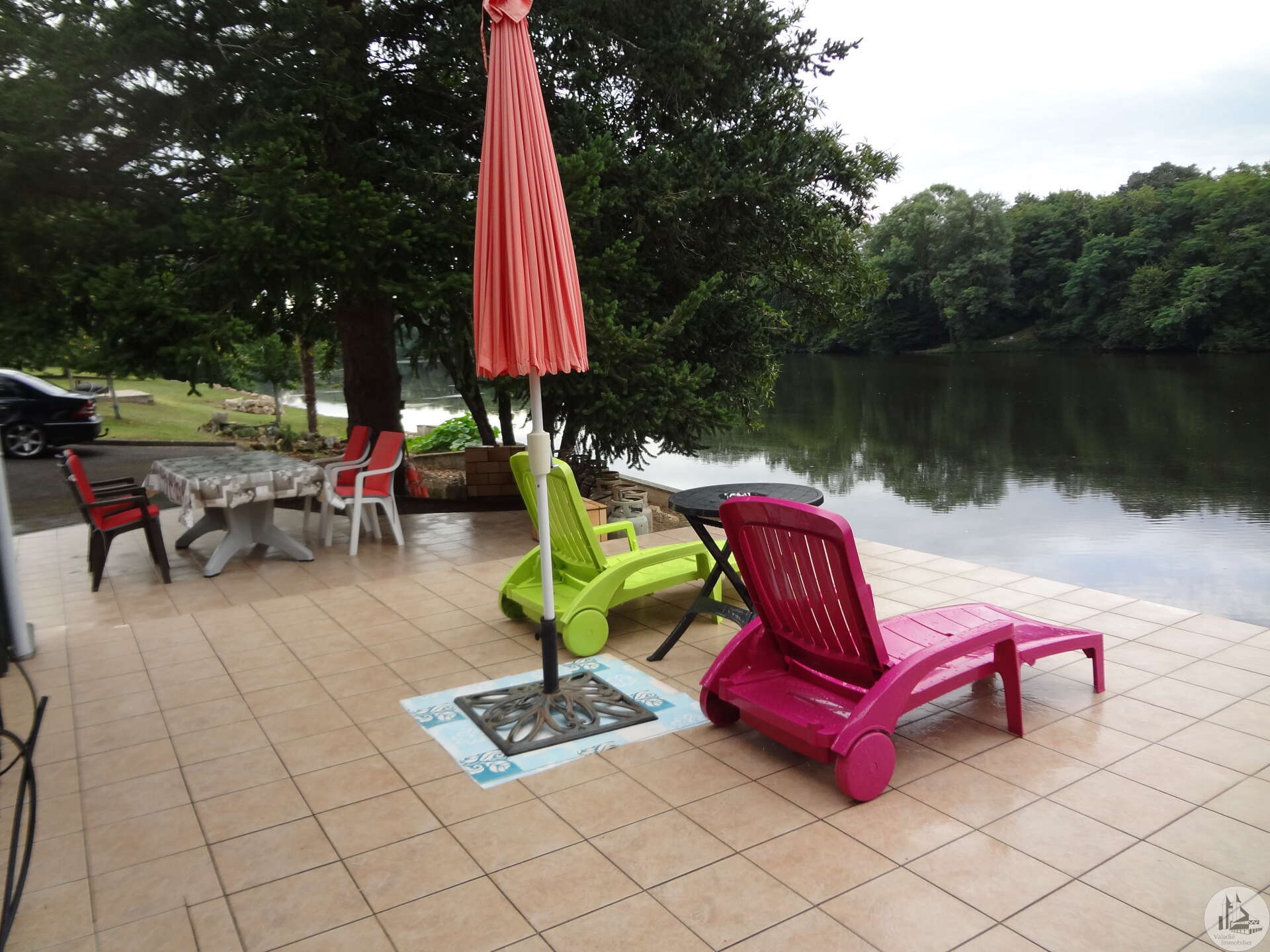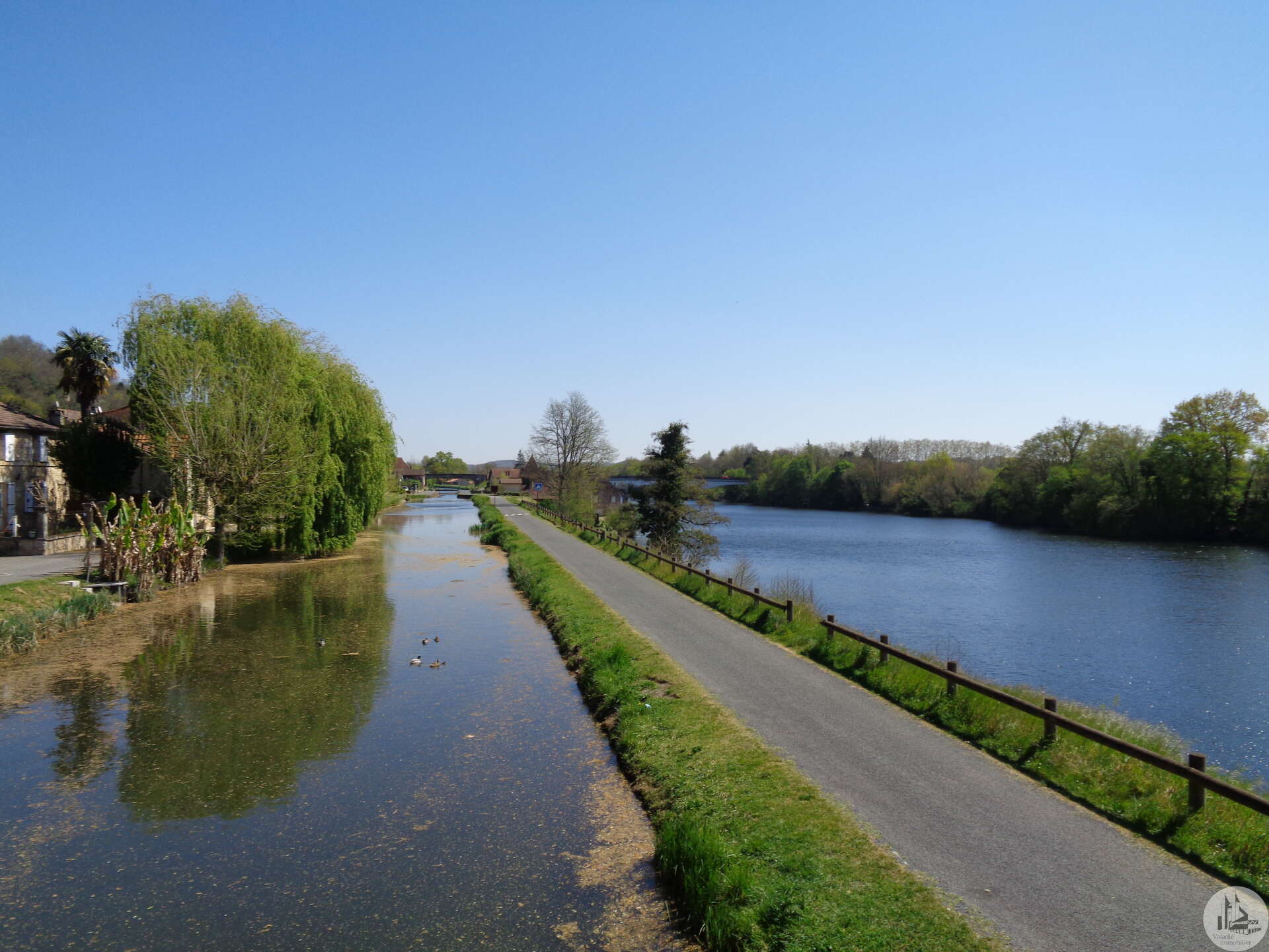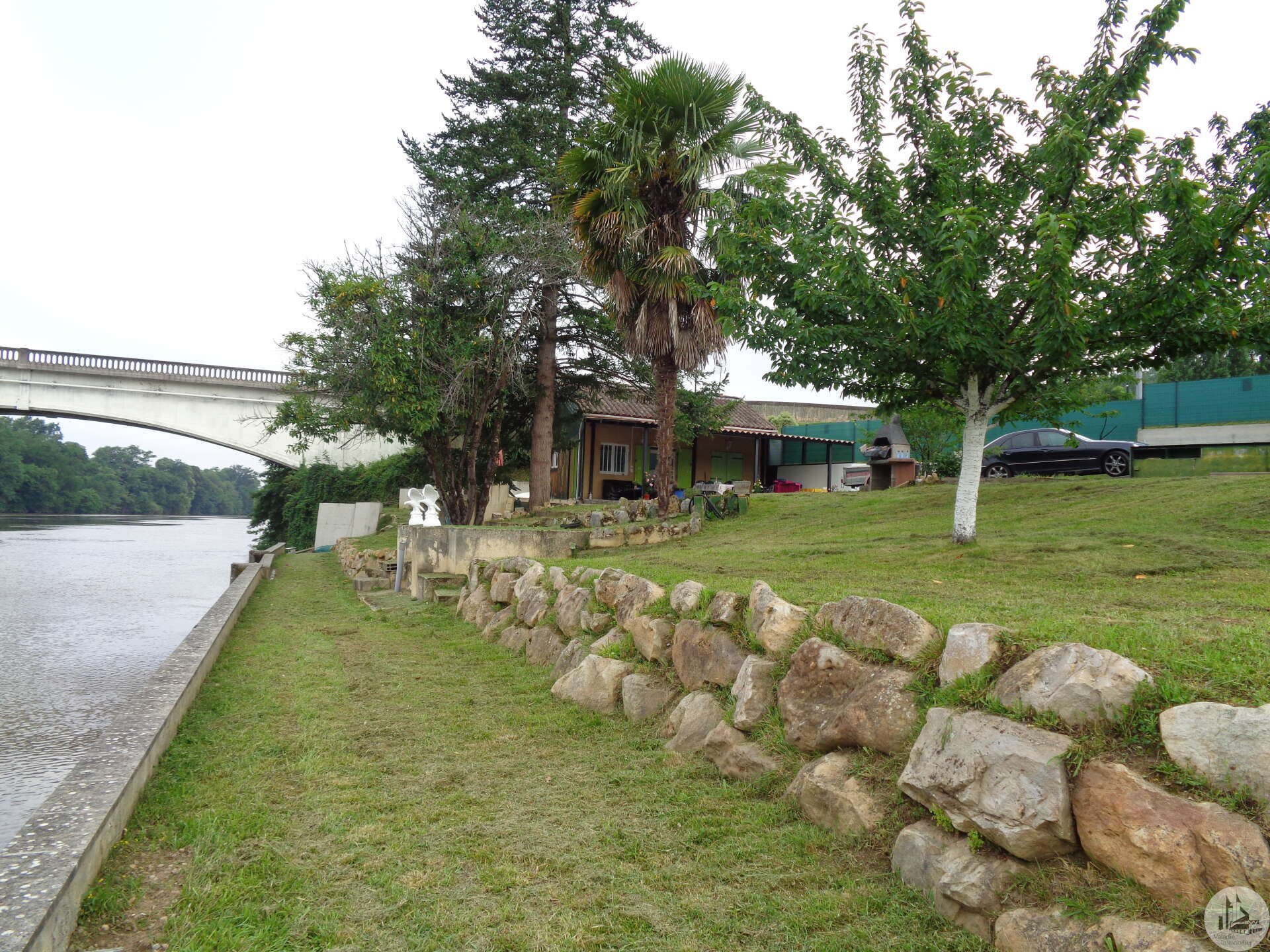 Located in the shade of a bridge converted into a cycle path and sheltered from view, ideally positioned between the Lalinde Canal and the Dordogne, facing south, discover this corner of paradise reserved for fishing and recreational boating enthusiasts. Comprising a comfortable house on four plots totaling 2,577 m², a large 48 m² pergola, very pleasant for large gatherings. A lot of work has been done, and everything has been thought of here.... The two entrances are via 7-meter sliding gates, one of which is motorized, leading to a tarmac driveway for access by campers, cars, and other caravans. The site can accommodate several families, with the possibility of seasonal rentals. The site is fully fenced and flood-proof, located between two dams, the water level is constant. Permission to expand by 25 m², slab installed. Permission for a 15 m² chalet Donations of all furniture, equipment, and canoe