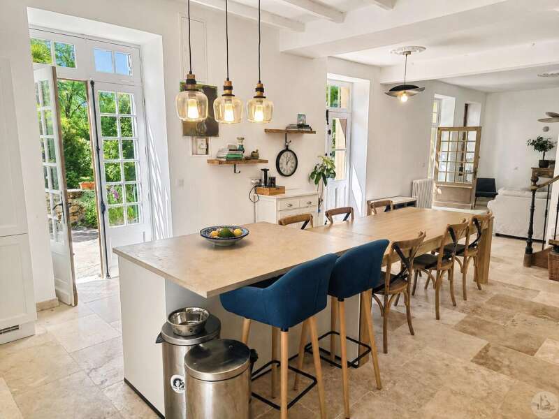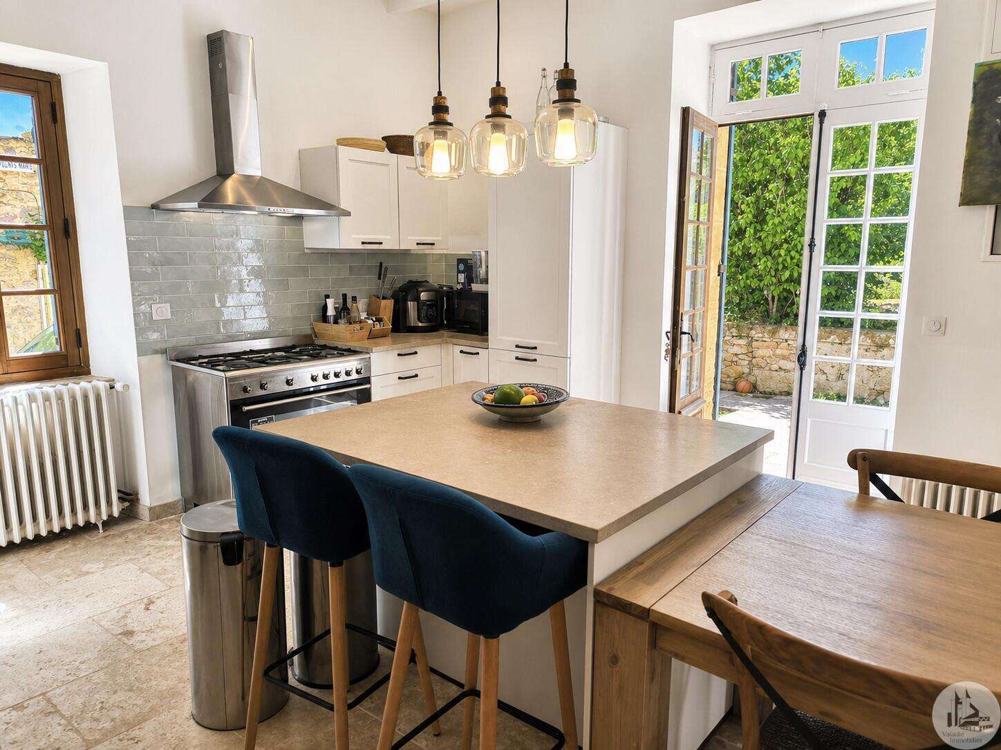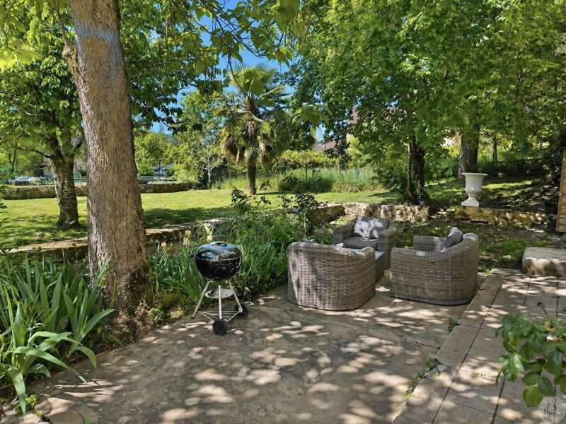 In a very quiet neighborhood on the edge of the village, a charming 195 sq m (2,023 sq ft) house, fully renovated, comprising: On the garden level, a large 62 sq m (667 sq ft) living room with an open-plan kitchen and a beautiful traditional fireplace, a WC, and a suite consisting of a bedroom of approximately 14 sq m (151 sq ft) and a 5 sq m (54 sq ft) shower room with WC, and a cellar/boiler room. Upstairs, two large suites, each comprising two bedrooms of 17 and 22 sq m (183 and 237 sq ft), with a 4 sq m (43 sq ft) bathroom and a 4 sq m (43 sq ft) shower room with WC, and a 5 sq m (54 sq ft) office. In the attic, an 8 sq m (86 sq ft) landing, two bedrooms with exposed beams of 26 and 25.8 sq m (280 sq ft), and a 4 sq m (43 sq ft) shower room with WC. Rooms with high ceilings and generous proportions. Covered area with a 4-person Jacuzzi-Spa Central heating via heat pumps (installed in 2025) Mains drainage. Electricity and plumbing completely renovated in 2025 Double-flow ventilation system - wooden joinery and double glazing (except for French doors) Roof maintained and partially redone in 2018. Charming, wooded garden with a view of the castle. Located on a quiet cul-de-sac. Location: shops within walking distance (grocery store, bakery, butcher/caterer), and the Dordogne River is a 6-minute walk away. Village house with a shared wall at the rear, offering complete privacy. Julie & Sébastien LESCURE VALADIÉ IMMOBILIER SARLAT 22 Av Thiers 24200 SARLAT 05.53.28.94.22