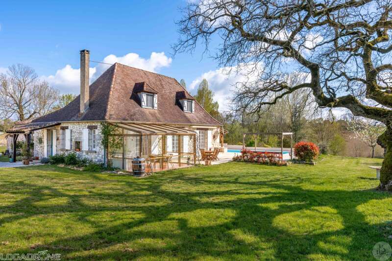 20 km south of Sarlat and 5 km from a village with school and shops, in a charming residential hamlet, a renovated character property consisting of a beautiful house with 3 bedrooms and 2 bathrooms, and an independent gîte.
