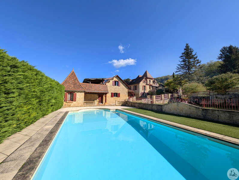 Dans la Vallée des cinq Châteaux, propriété de caractère composée d'une maison d'habitation de 5 chambres et d'un gîte de 2 chambres , et une ancienne grange aménagée en 4 gîtes , piscine, terrain de 2970 m², avec une source.