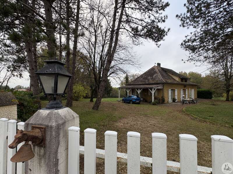 A 10 kms au sud de Bergerac, villa tout confort de 128 m2 avec trois chambres et deux salles de bains, sous sol de même superficie avec double garage sur un terrain de 4,5 hectares avec piscine, prairies et forêt.
