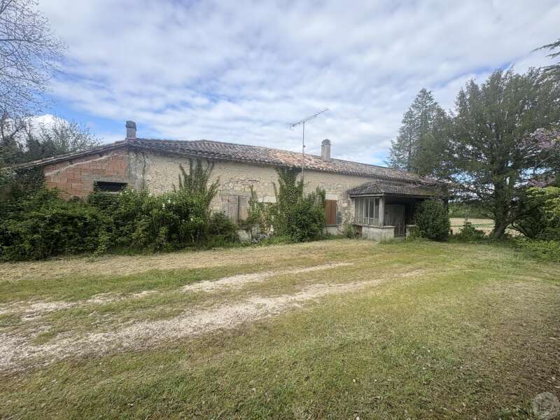 Secteur Monflanquin, charmante maison de plain pied d'environ 140 M2 à rénover complétement avec 3 Chambres, un atelier, une cave et environ 400 M2 de dépendances sur un terrain de plus de 6000 M2.