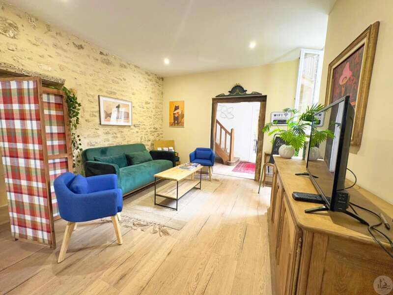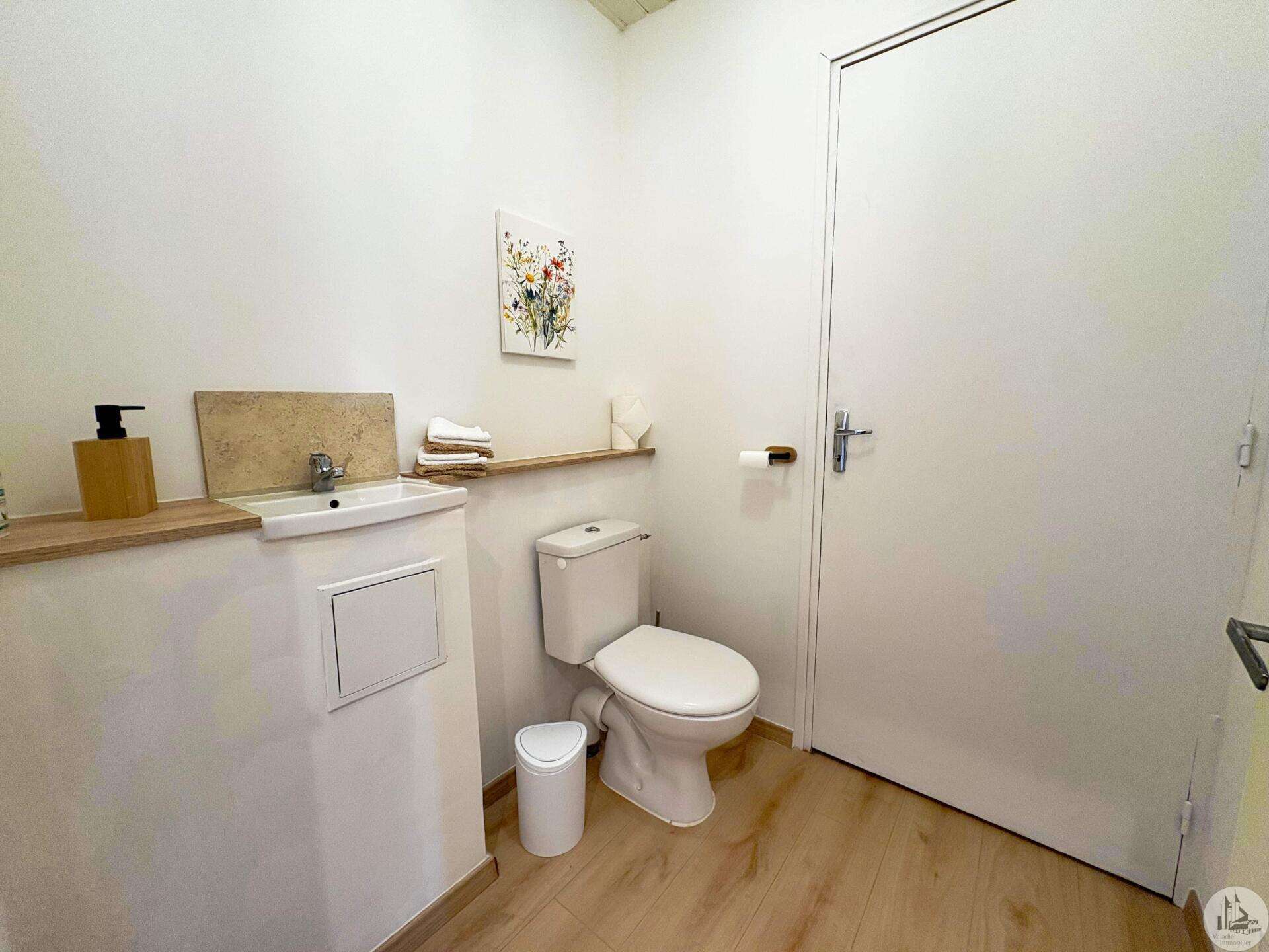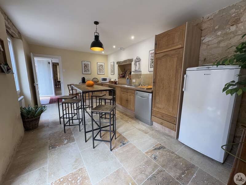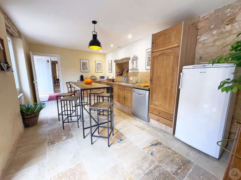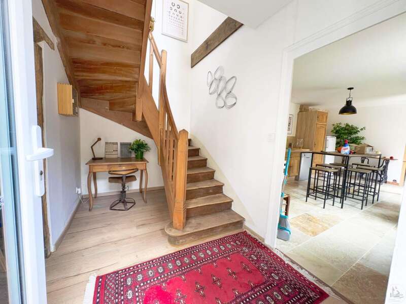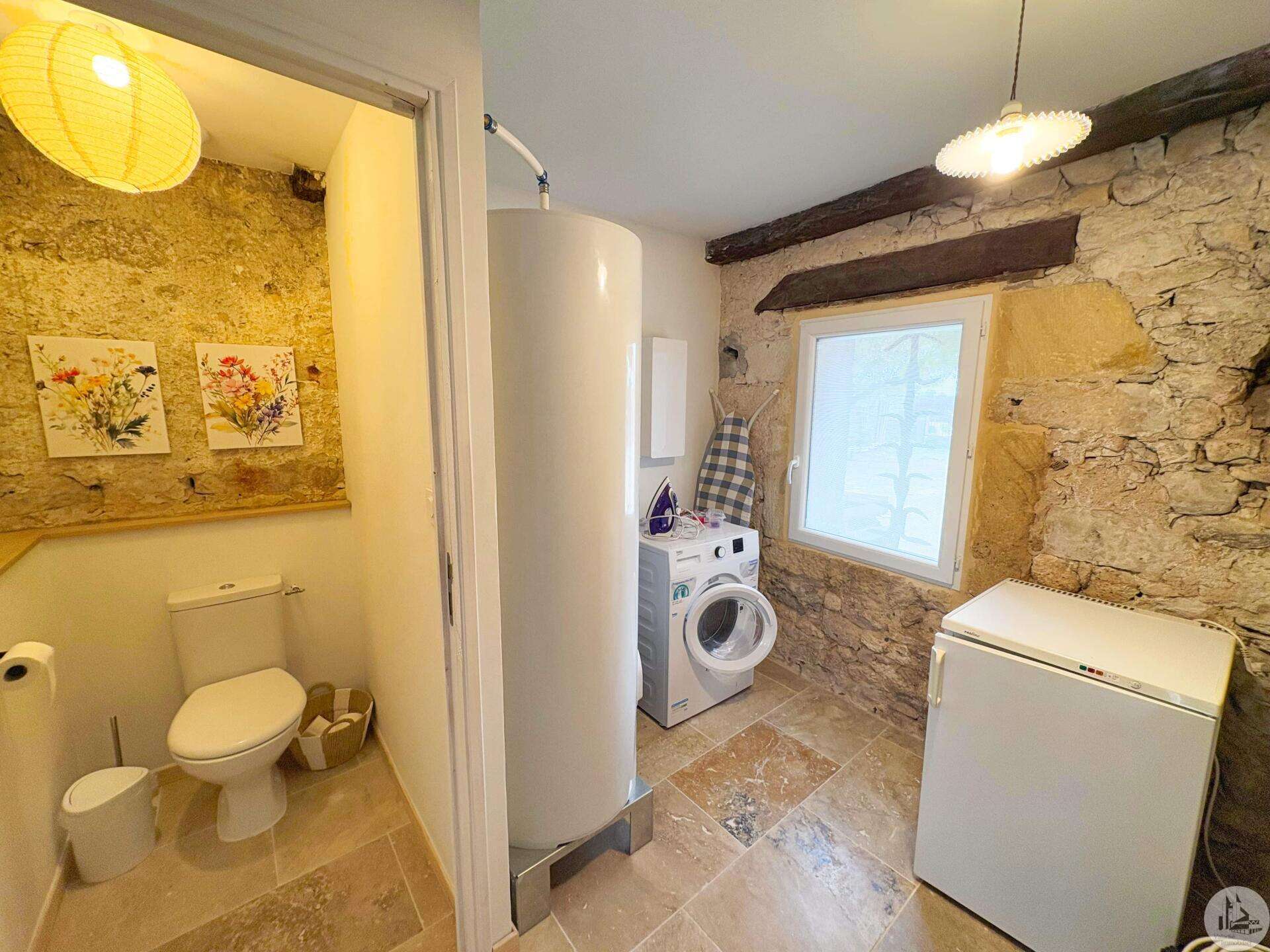 Maison de village mitoyenne, rénovée, d'environ 123 m2 avec extérieur. L'habitation se compose; Au rez de chaussée, d'une entrée, une cuisine équipée, une pièce principale salon/salle à manger, une buanderie, un toilette séparé avec lavabo. A l'étage, un palier, trois chambres dont une en suite et une avec balcon, une seconde salle d'eau, un toilette avec lavabo. A l'extérieur une cour avec jardinet. Les huisseries sont en double et simple vitrage. Le chauffage est électrique nouvelle generation.