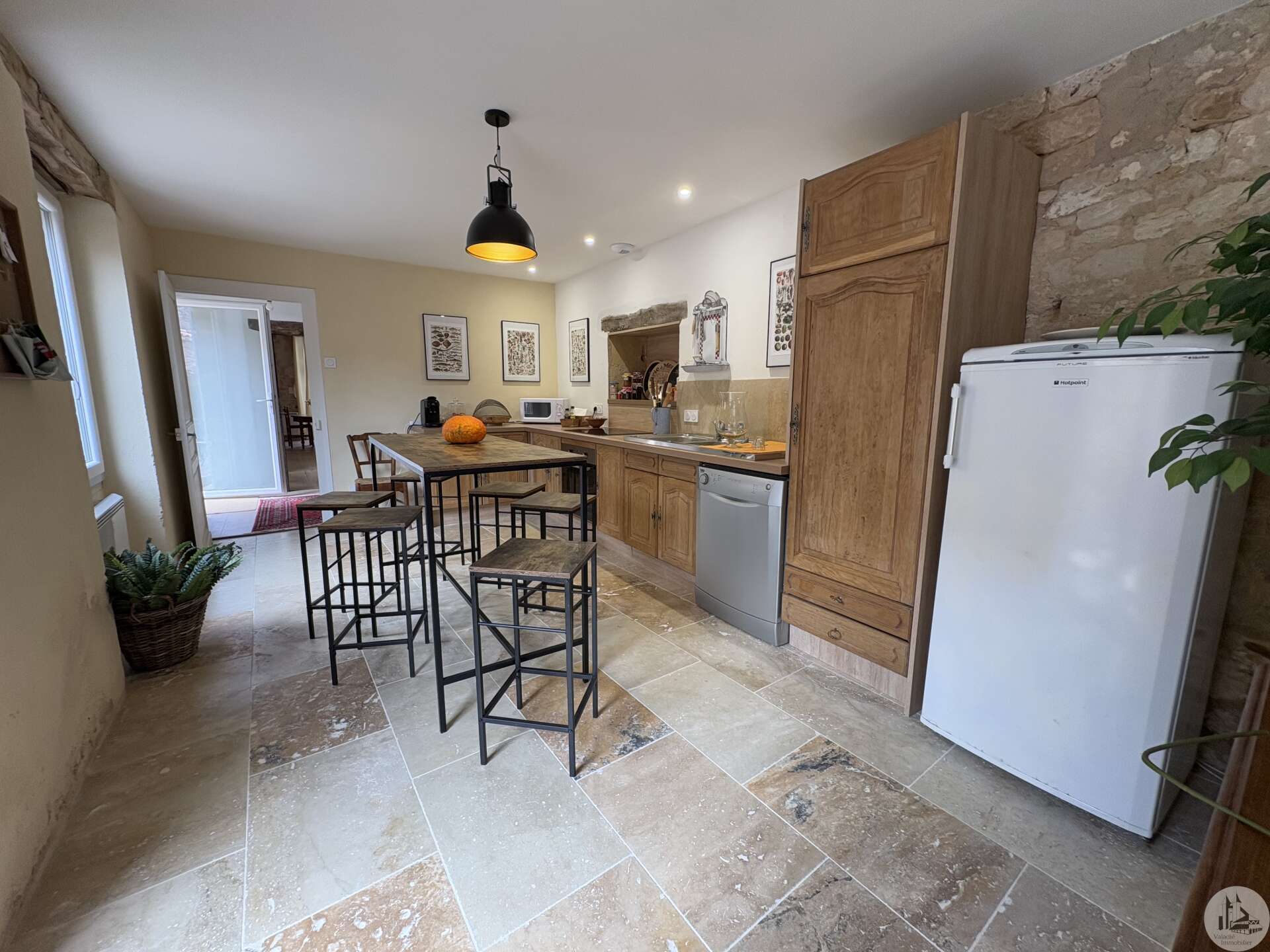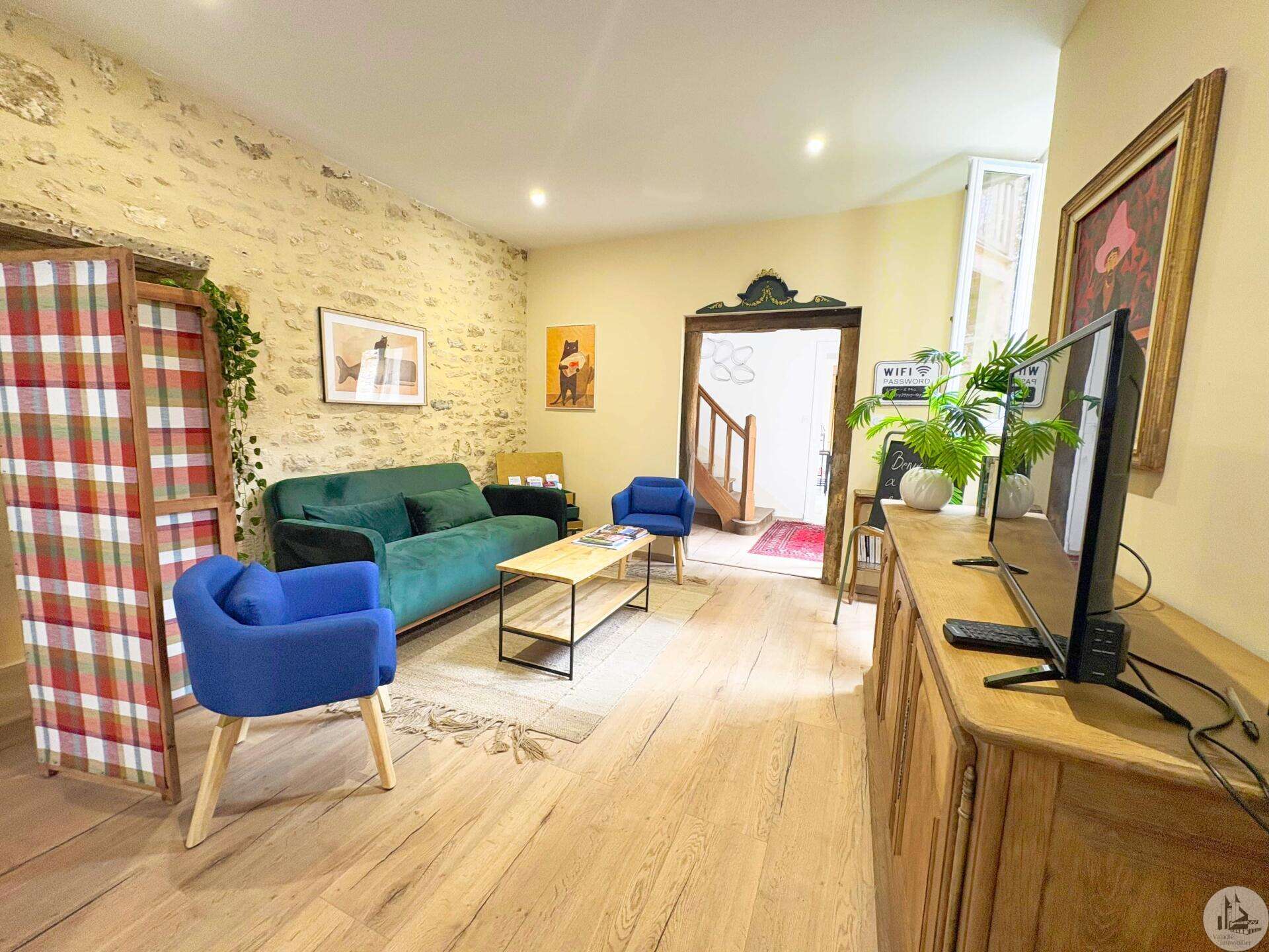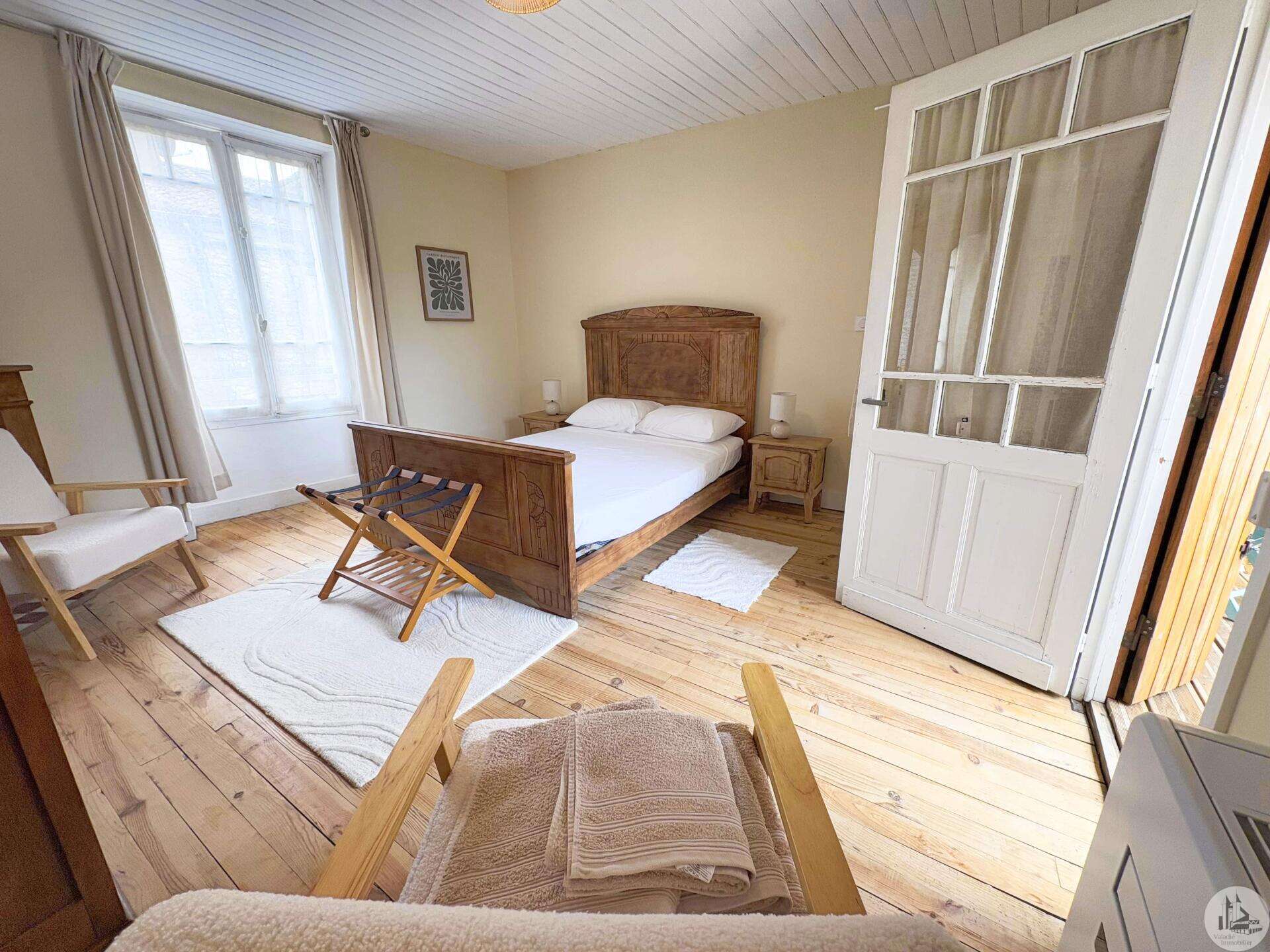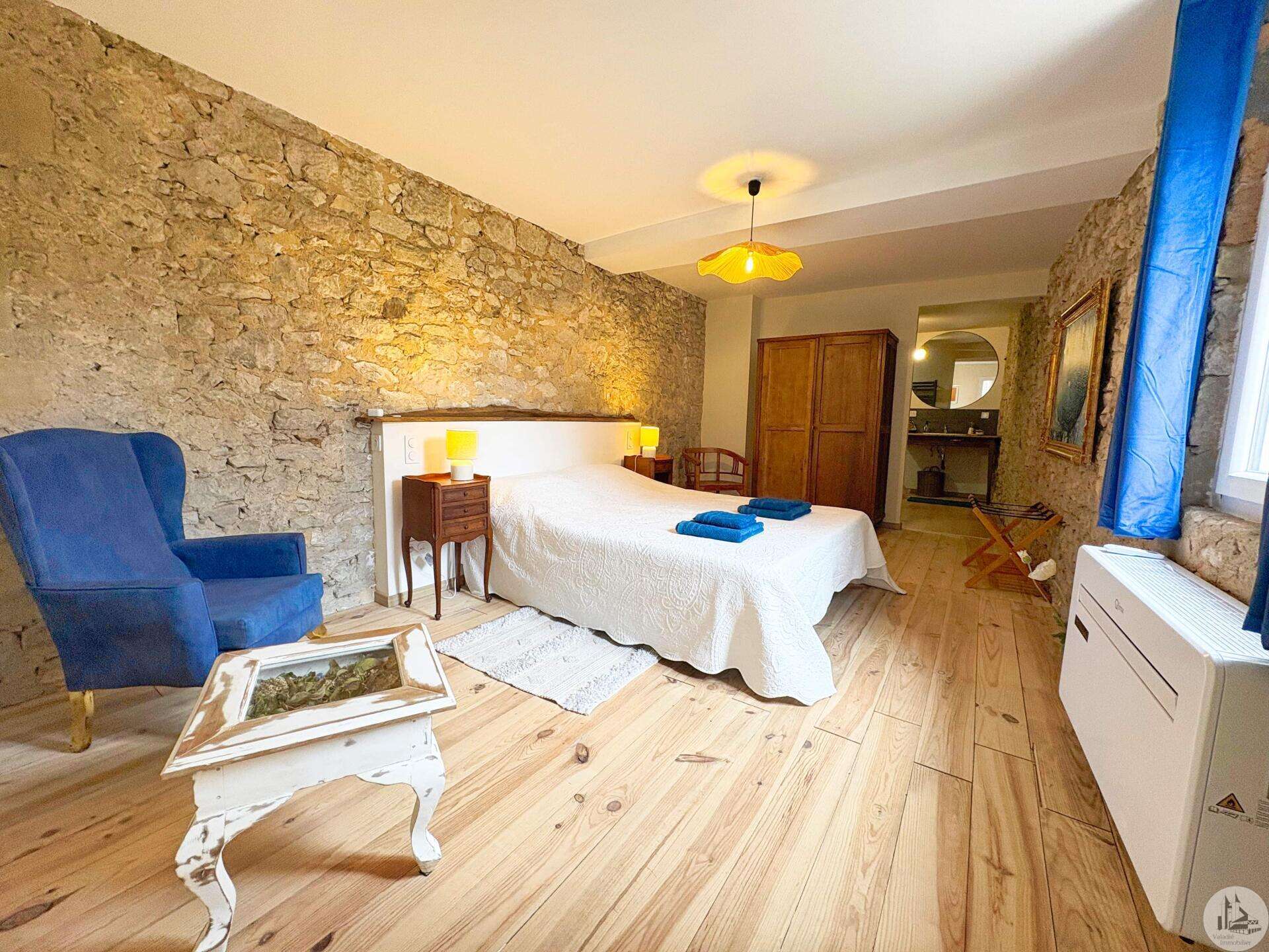 Maison de village mitoyenne, rénovée, d'environ 123 m2 avec extérieur. L'habitation se compose; Au rez de chaussée, d'une entrée, une cuisine équipée, une pièce principale salon/salle à manger, une buanderie, un toilette séparé avec lavabo. A l'étage, un palier, trois chambres dont une en suite et une avec balcon, une seconde salle d'eau, un toilette avec lavabo. A l'extérieur une cour avec jardinet. Les huisseries sont en double et simple vitrage. Le chauffage est électrique nouvelle generation.