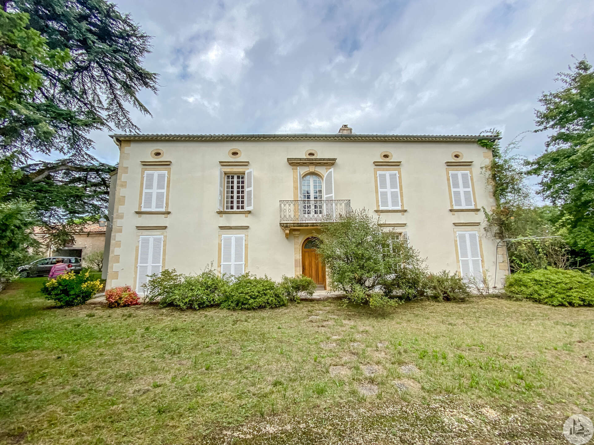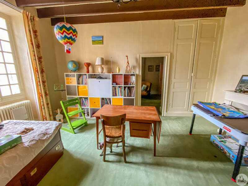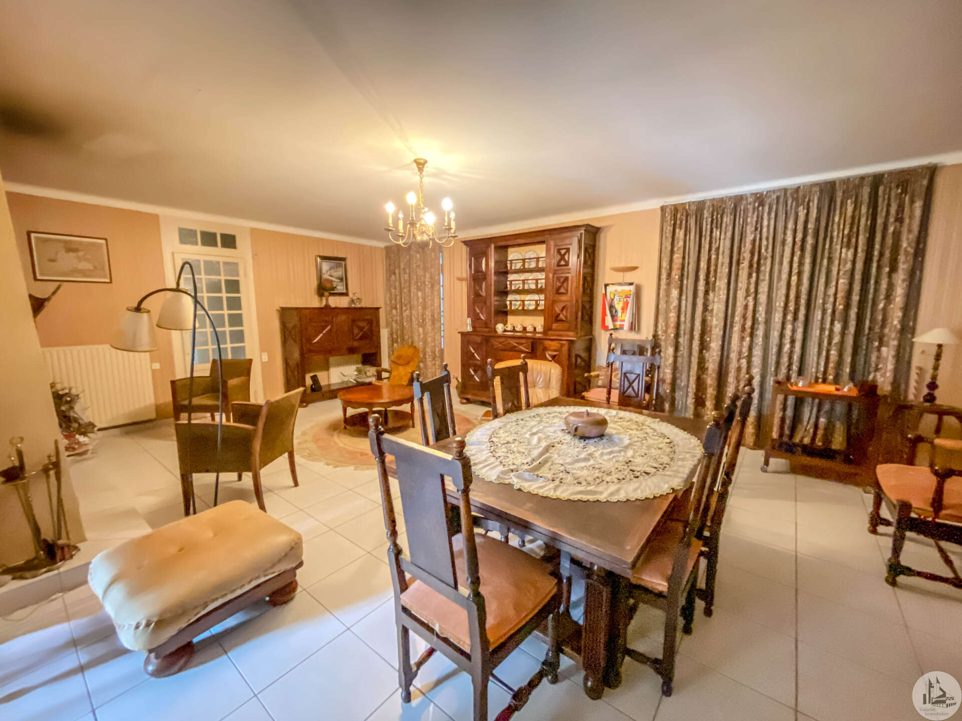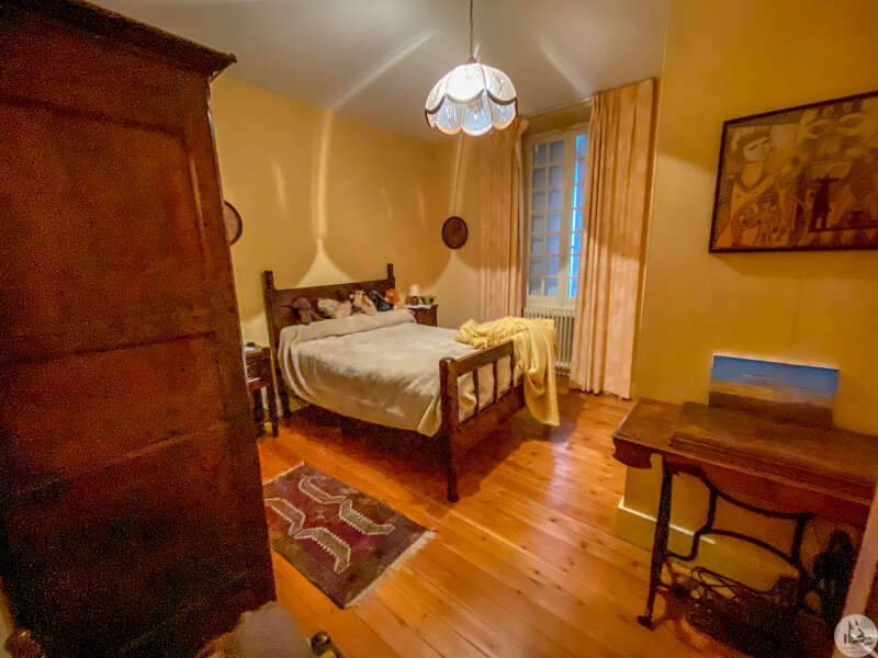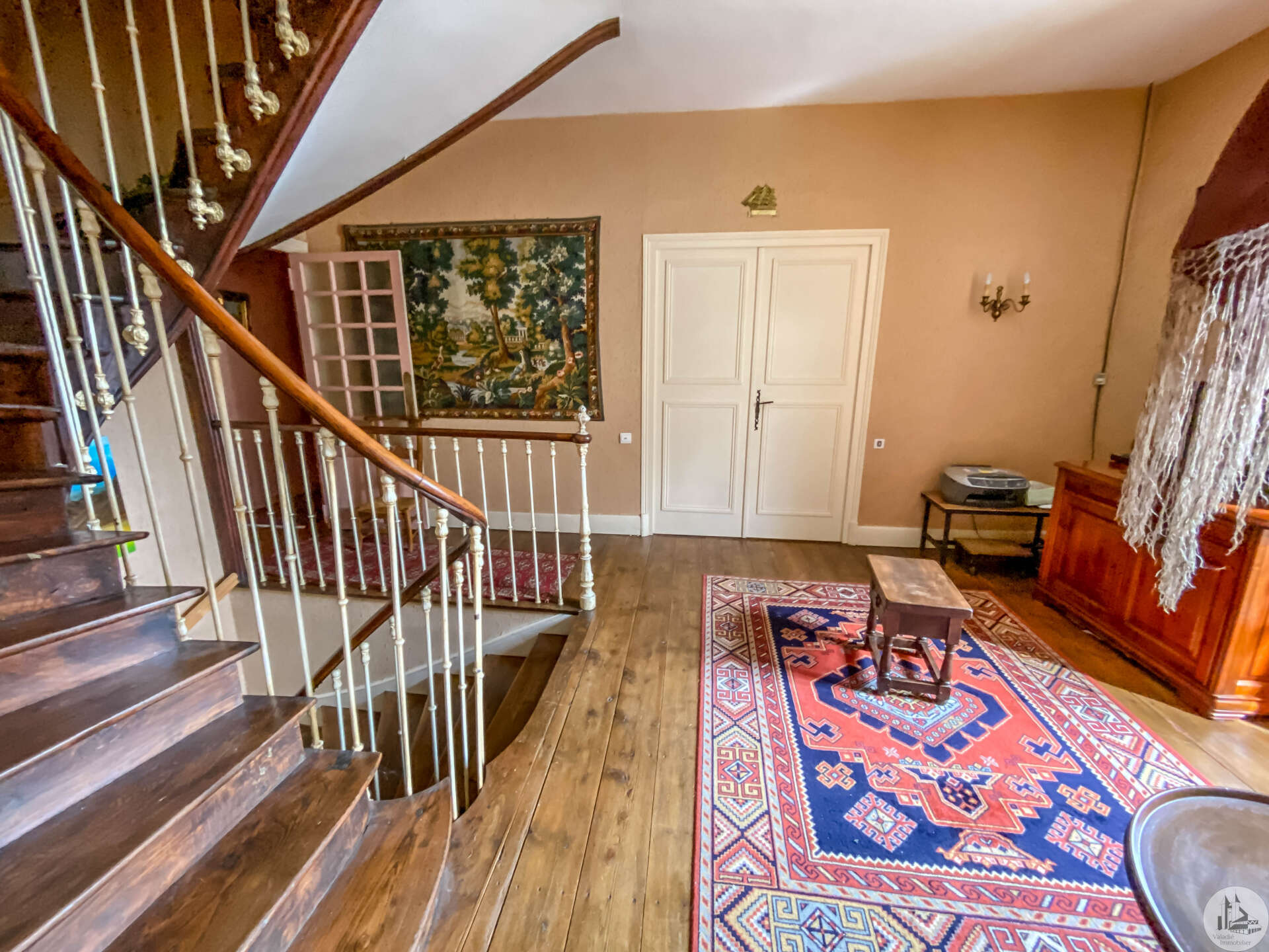 Une maison d'habitation de type maison de Maitre avec une extension moderne, comprenant - Un hall d'entrée de 21,2 m2 environ, carrelage au sol, bel escalier en bois desservant l'étage. Depuis ce hall d'entrée sur la droite : - Un séjour/salon/ salle à manger en forme de L de 77 m2 environ, avec 6 portes-fenêtres, carrelage au sol, une cheminée équipée d'un insert, tapisseries aux murs. - Un sas de rangement de 3 m2 environ, lino au sol. - Une cuisine/salle à manger de 42 m2 environ avec une porte desservant l'extérieur. Cuisine aménagée d'un évier et placard. - Un couloir de distribution de 10,7 m2 environ, carrelage au sol et placards. - Un dégagement de 3 m2 environ avec un évier, et un wc séparé. - Une salle d'eau en cours de restauration de 9,3 m2 environ, une porte-fenêtre, parquet flottant, faience carrelage. - Un bureau de 12,6 m2 environ, moquette au sol, une porte-fenêtre, tapisserie aux murs. A l'étage : - Un palier de 21 m2 environ, avec une cage d'escalier, parquet massif au sol, une porte-fenêtre donnant un accès sur un balcon. Nous continuons le sens de la visite sur la droite : - Une chambre de 19,5 m2 environ, moquette au sol sur plancher, une cheminée décorative, une fenêtre, un placard. - Une chambre ensuite mais aussi accessible par un couloir, surface de 15,5 m2 environ, moquette au sol sur plancher, 2 fenêtres. - Un dégagement de 2,6 m2 environ, carrelage au sol - Une salle de bains de 14,5 m2 environ, carrelage au sol, faïence aux murs et tapisserie légèrement décollé à certains endroit. Un lavabo, une baignoire, un wc, un bidet, 2 fenêtres en double vitrage. - Un wc séparé - Une chambre de 14,9 m2 environ, moquette au sol, un placard, 2 fenêtres, un lavabo, tapisserie aux murs. - Une lingerie de 5,4 m2 environ, parquet au sol - Un couloir traversant de 12,8 m2 environ, parquet - Une chambre de 15,5 m2 environ, parquet au sol, une fenêtre en simple vitrage, avec une salle d'eau ensuite. - Une chambre de 17,6 m2 environ, moquette au sol, avec la même salle d'eau ensuite. Lavabo, cabine de douche, lino au sol, faïence (3,7 m2 environ). - Une chambre de 21,6 m2 environ, placards, 2 fenêtre simple vitrage, moquette au sol. - Un salon de 31,4 m2 environ, parquet au sol, 3 fenêtres en simple vitrage, avec une cheminée en marbre avec des moulures, et plafonniers en moulures. Un second étage desservant : - Un grenier sur toute la surface de la maison (171 m2 environ), parquet au sol. - Un toit terrasse exposé Nord-Est Chauffage central au fuel avec des radiateurs en fonte. Un adoucisseur d'eau. Un ancien chai en pierre de 18m X 6m. Très joli parc arboré, avec une piscine couverte par un dome de 9m X 4,5m avec un escalier roman. Un chalet en bois pour abriter la pompe de la piscine a été placé à côté. Un terrain de tennis se situe sur le parc aussi. Le grillage est en bon état mais le revêtement en quick est à refaire. Un garage en pierre et parpaings qui se trouve en face de la propriété. Un ancien chai en pierre de 18m X 6m.