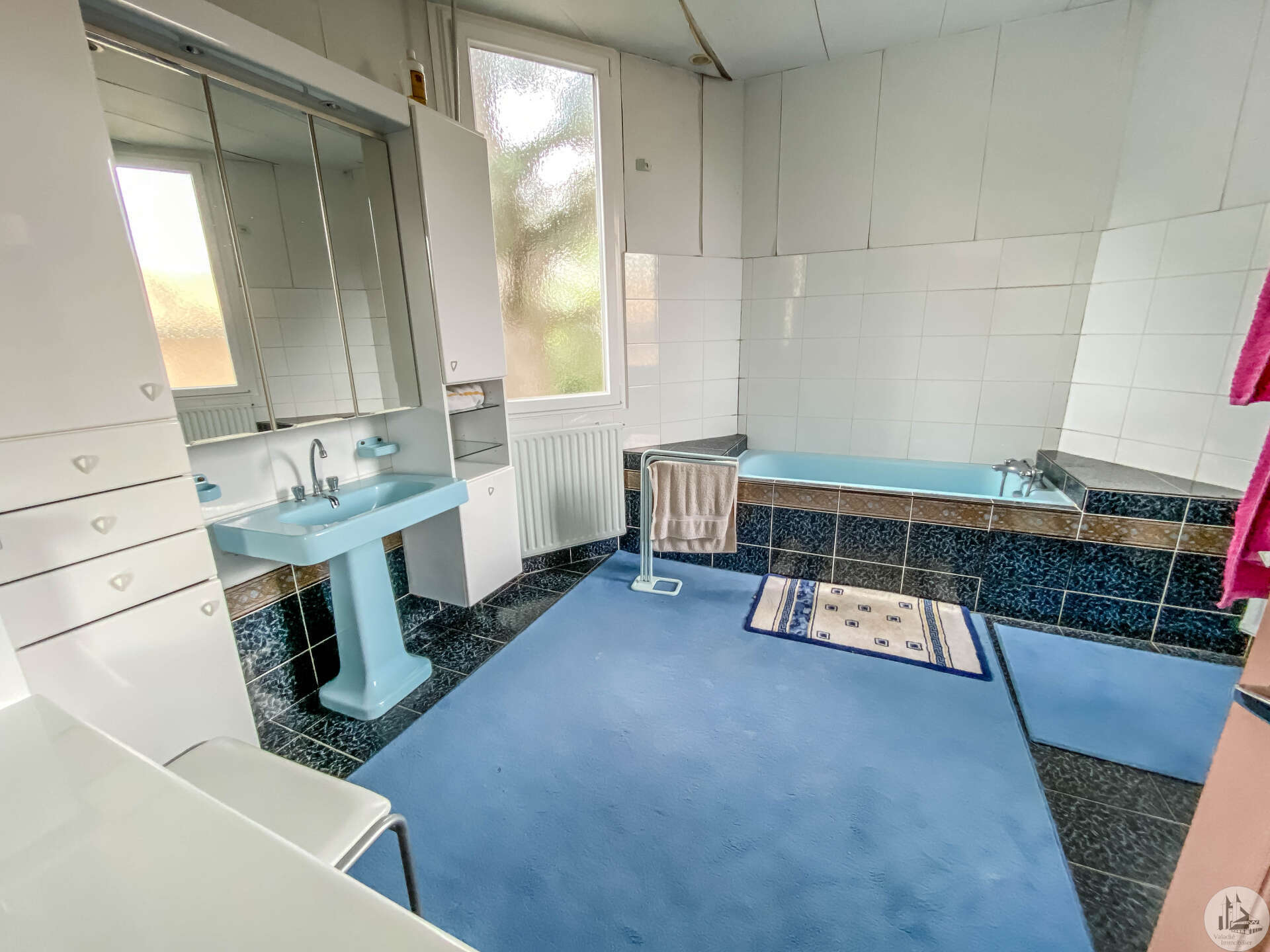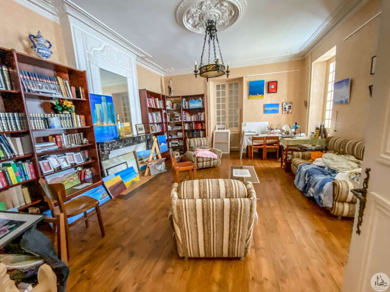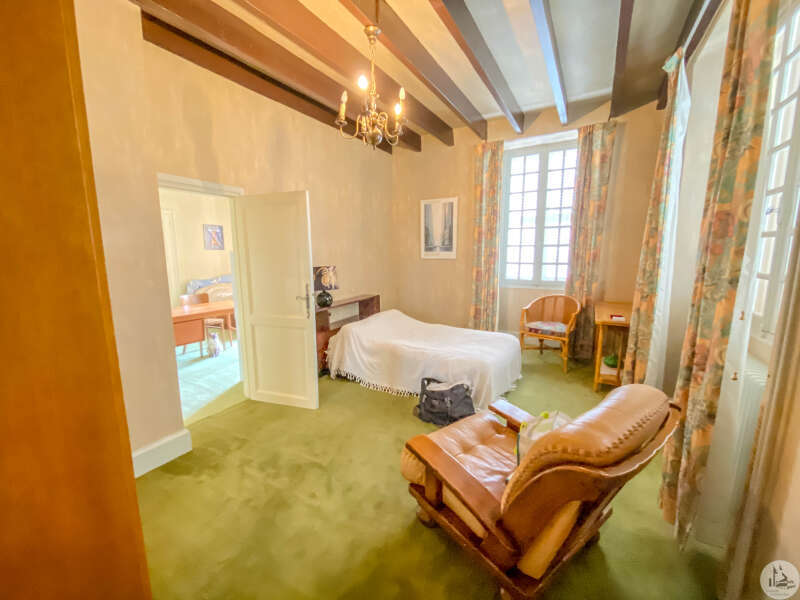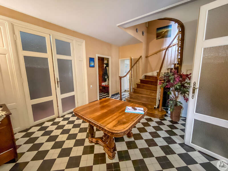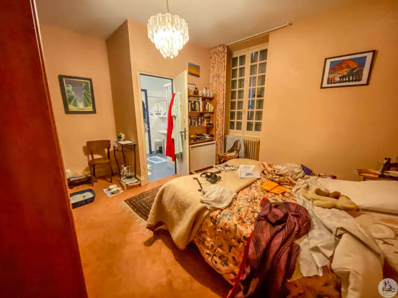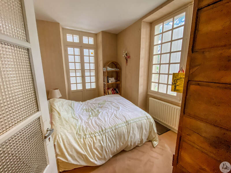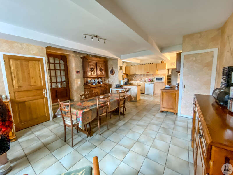 Une maison d'habitation de type maison de Maitre avec une extension moderne, comprenant - Un hall d'entrée de 21,2 m2 environ, carrelage au sol, bel escalier en bois desservant l'étage. Depuis ce hall d'entrée sur la droite : - Un séjour/salon/ salle à manger en forme de L de 77 m2 environ, avec 6 portes-fenêtres, carrelage au sol, une cheminée équipée d'un insert, tapisseries aux murs. - Un sas de rangement de 3 m2 environ, lino au sol. - Une cuisine/salle à manger de 42 m2 environ avec une porte desservant l'extérieur. Cuisine aménagée d'un évier et placard. - Un couloir de distribution de 10,7 m2 environ, carrelage au sol et placards. - Un dégagement de 3 m2 environ avec un évier, et un wc séparé. - Une salle d'eau en cours de restauration de 9,3 m2 environ, une porte-fenêtre, parquet flottant, faience carrelage. - Un bureau de 12,6 m2 environ, moquette au sol, une porte-fenêtre, tapisserie aux murs. A l'étage : - Un palier de 21 m2 environ, avec une cage d'escalier, parquet massif au sol, une porte-fenêtre donnant un accès sur un balcon. Nous continuons le sens de la visite sur la droite : - Une chambre de 19,5 m2 environ, moquette au sol sur plancher, une cheminée décorative, une fenêtre, un placard. - Une chambre ensuite mais aussi accessible par un couloir, surface de 15,5 m2 environ, moquette au sol sur plancher, 2 fenêtres. - Un dégagement de 2,6 m2 environ, carrelage au sol - Une salle de bains de 14,5 m2 environ, carrelage au sol, faïence aux murs et tapisserie légèrement décollé à certains endroit. Un lavabo, une baignoire, un wc, un bidet, 2 fenêtres en double vitrage. - Un wc séparé - Une chambre de 14,9 m2 environ, moquette au sol, un placard, 2 fenêtres, un lavabo, tapisserie aux murs. - Une lingerie de 5,4 m2 environ, parquet au sol - Un couloir traversant de 12,8 m2 environ, parquet - Une chambre de 15,5 m2 environ, parquet au sol, une fenêtre en simple vitrage, avec une salle d'eau ensuite. - Une chambre de 17,6 m2 environ, moquette au sol, avec la même salle d'eau ensuite. Lavabo, cabine de douche, lino au sol, faïence (3,7 m2 environ). - Une chambre de 21,6 m2 environ, placards, 2 fenêtre simple vitrage, moquette au sol. - Un salon de 31,4 m2 environ, parquet au sol, 3 fenêtres en simple vitrage, avec une cheminée en marbre avec des moulures, et plafonniers en moulures. Un second étage desservant : - Un grenier sur toute la surface de la maison (171 m2 environ), parquet au sol. - Un toit terrasse exposé Nord-Est Chauffage central au fuel avec des radiateurs en fonte. Un adoucisseur d'eau. Un ancien chai en pierre de 18m X 6m. Très joli parc arboré, avec une piscine couverte par un dome de 9m X 4,5m avec un escalier roman. Un chalet en bois pour abriter la pompe de la piscine a été placé à côté. Un terrain de tennis se situe sur le parc aussi. Le grillage est en bon état mais le revêtement en quick est à refaire. Un garage en pierre et parpaings qui se trouve en face de la propriété. Un ancien chai en pierre de 18m X 6m.
