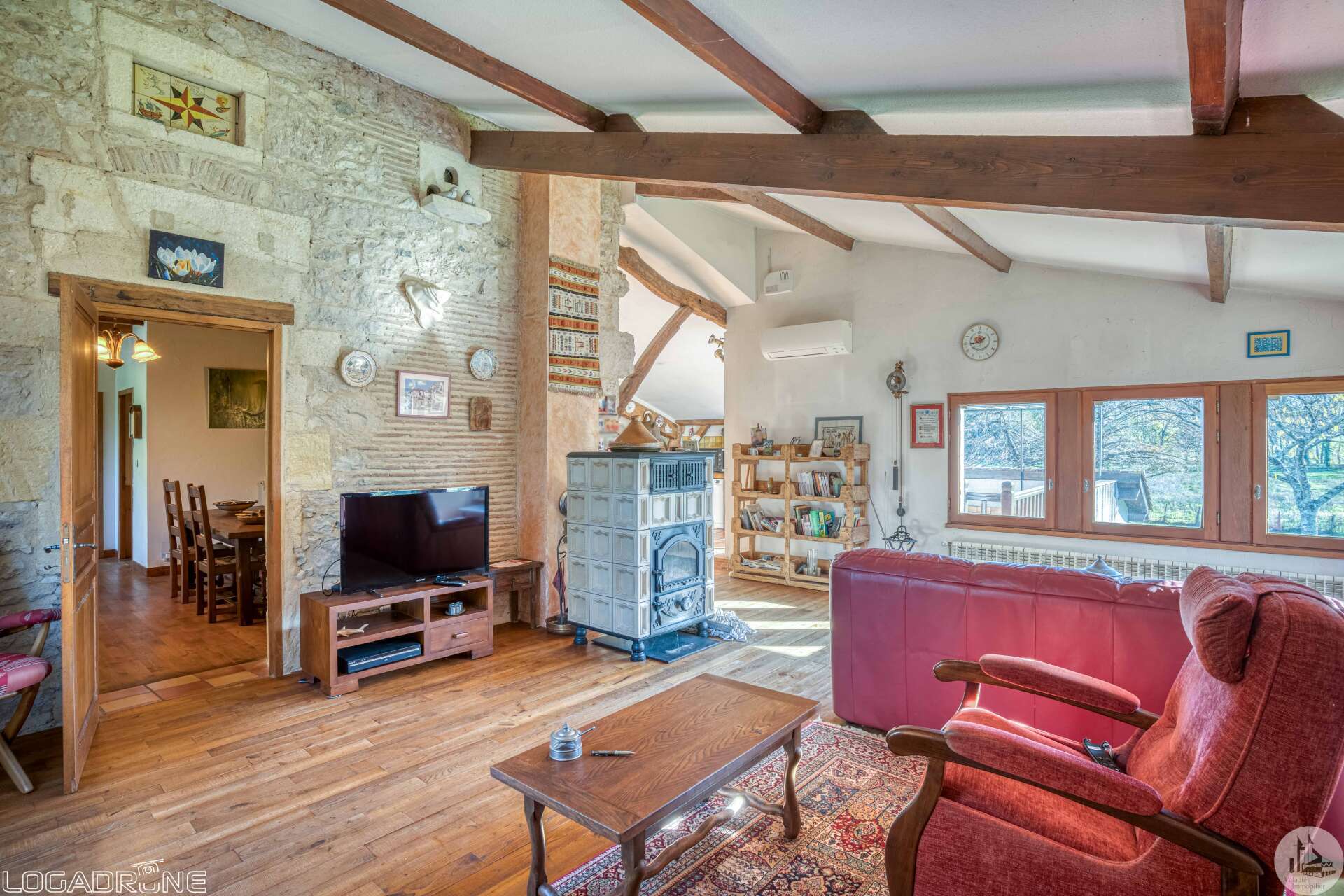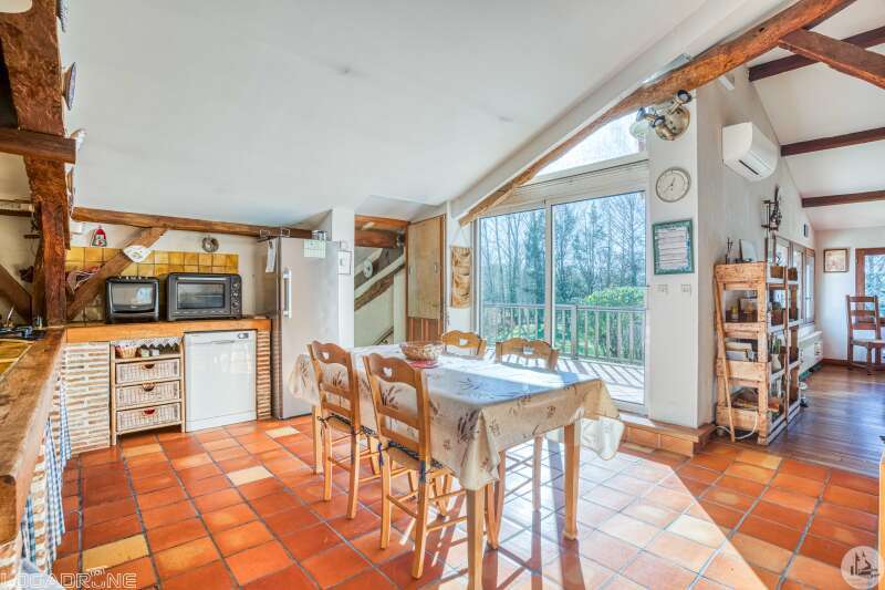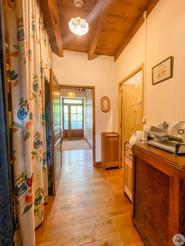 Maison de bourg, restaurée dans les années 90, comprenant : un hall d'entrée de 5,7 m2, une salle à manger de 20,6 m2, un salon de 34,2 m2, avec un poêle à bois alsacien et une climatisation (pièce orientée au Sud, lumineuse grâce à ses nombreuses fenêtres donnant sur le jardin), une cuisine de 19,2 m2 avec une baie vitrée coulissante donnant accès à une terrasse carrelée, surplombant le jardin et équipée d'un store et d'une pergola. Depuis le hall d'entrée, on accède à une chambre de 11,1 m2, puis à un dégagement de 3,5 m2 avec un grand placard, une salle de bains de 8,5 m2 (avec un sanibroyeur, un bidet, une cabine de douche, un lavabo et un sèche-serviette) Un couloir de distribution de 5,7 m2 dessert 2 autres chambres : une de 13,3 m2 avec placard, l'autre de 10,4 m2 (avec une fenêtre de toit) et un w.c de 2,5 m2 (avec un sanibroyeur et un lave-mains) Depuis la cuisine, accès au sous-sol par un escalier intérieur conduisant à une pièce de vie style véranda de 33,6 m2, avec un poêle à bois et un accès direct au jardin via des baies vitrées. De nombreux éléments anciens ont été conservés et mis en valeur lors de la restauration : murs en pierre, poutres apparentes, parquet en chêne, cheminée décorative. Fenêtres en bois mixtes double et simple vitrage. Baies en aluminium double vitrage. Chauffage central au fioul. Climatisation et poêle Alsacien dans le salon. En rez-de-jardin : Buanderie de 25 m2 au sol (avec une hauteur sous plafond de 1,76 m) Atelier de 24,5 m2. Pièce aménagée en tant que chambre d'appoint de 8,6 m2 environ avec un w.c (sanibroyeur) Un couloir de distribution de 6,9 m2 mène à une pièce de stockage de 16 m2. Cave de 54,3 m2 environ, terre battue au sol. A l'extérieur : Auvent servant d'emplacement pour stationner deux voitures. Local abritant les cuves à fuel (2000 L au total) et second local avec la chaudière à fuel de la marque Viessman. Abri de jardin en tôle et stockage pour le bois de chauffage. Grand jardin arboré, bordé de haies, un puits (avec pompe pour le jardin)